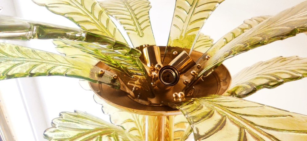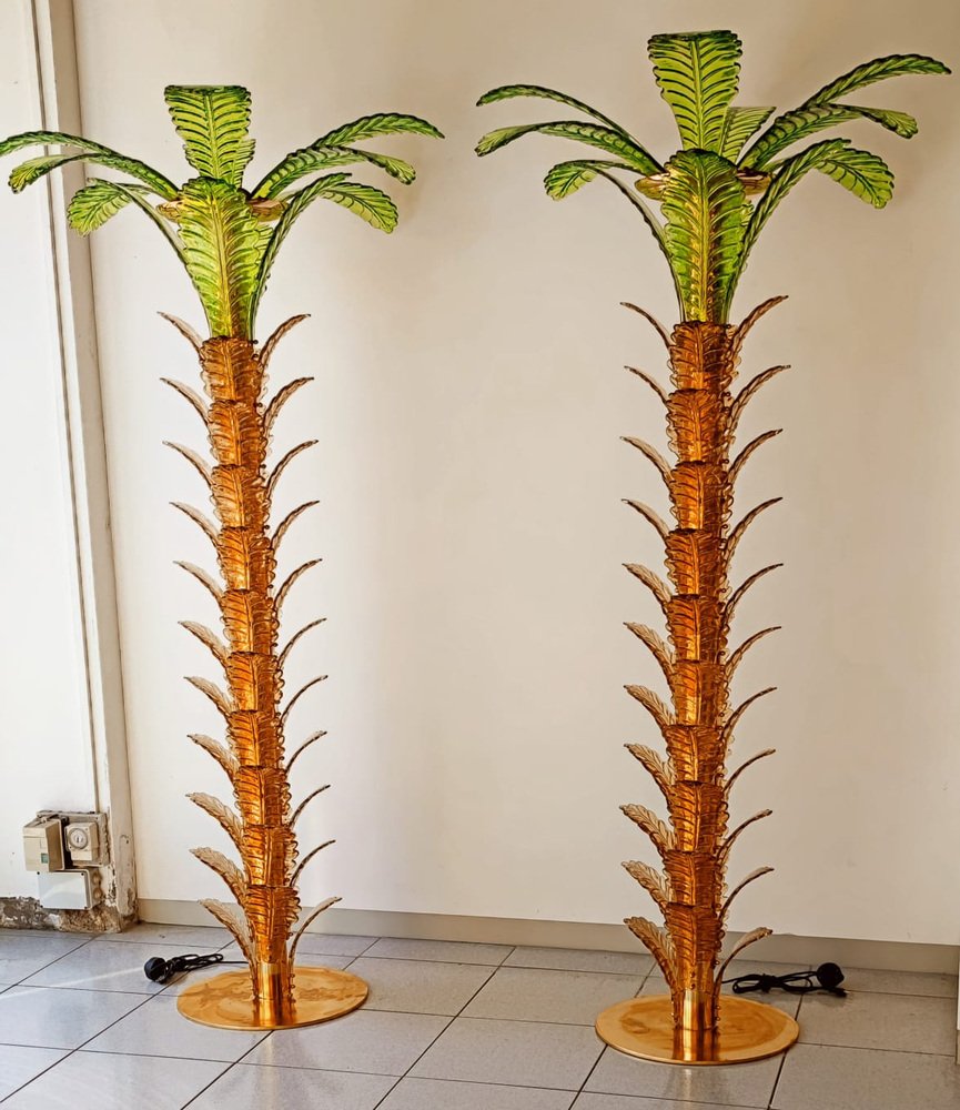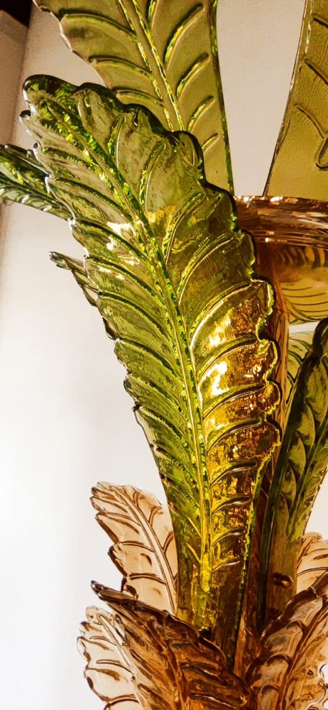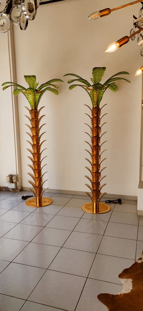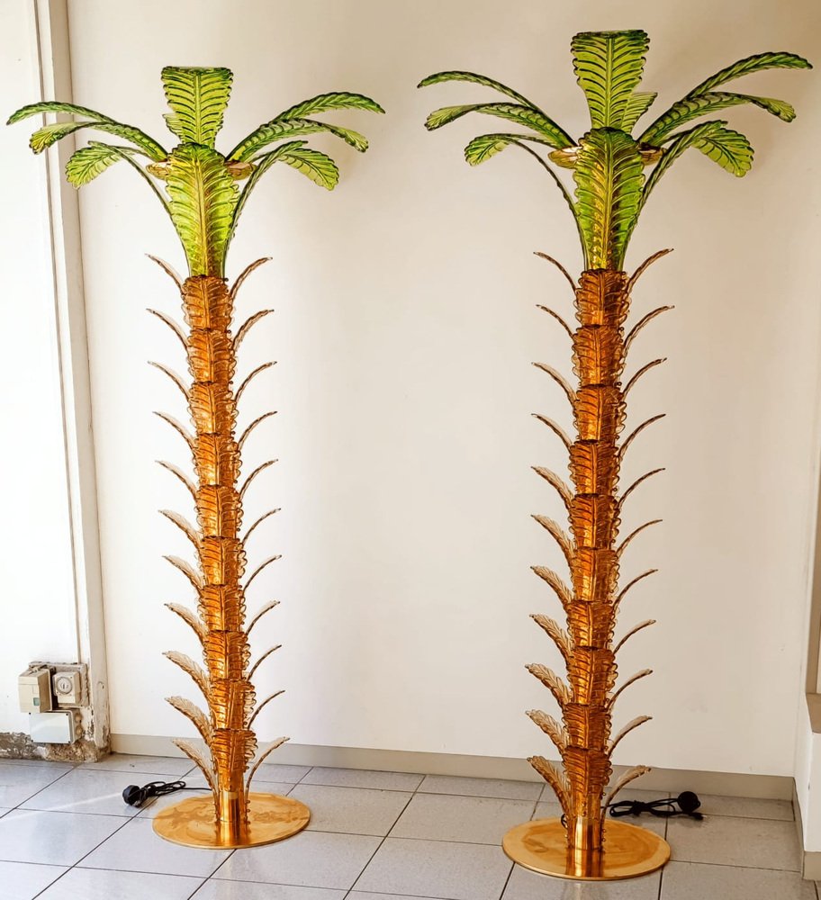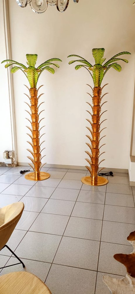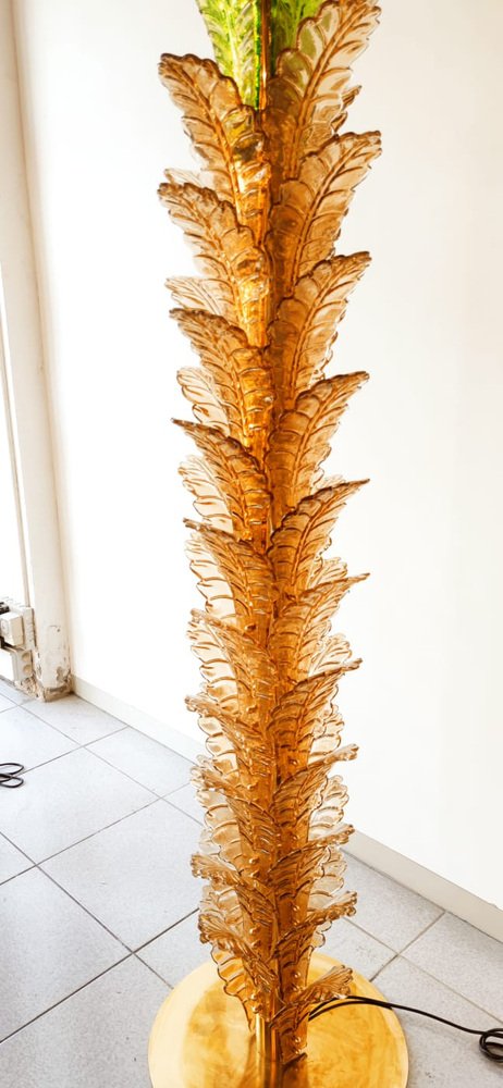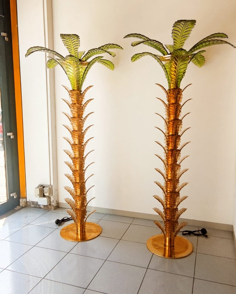 Lámparas de pie en forma de palmera de latón y cristal de Murano. Juego de 2