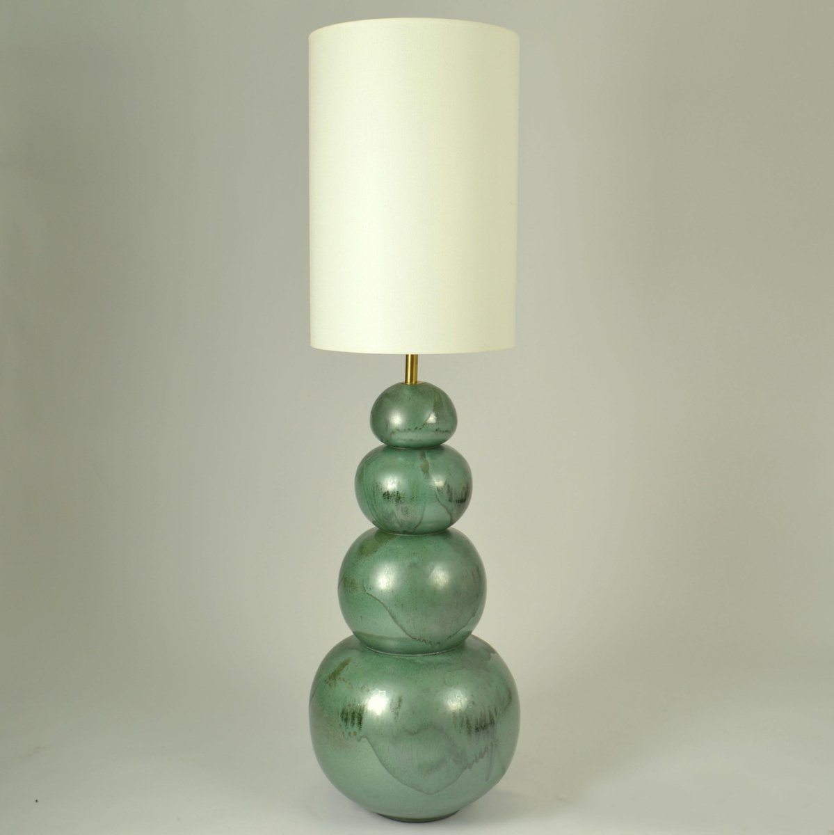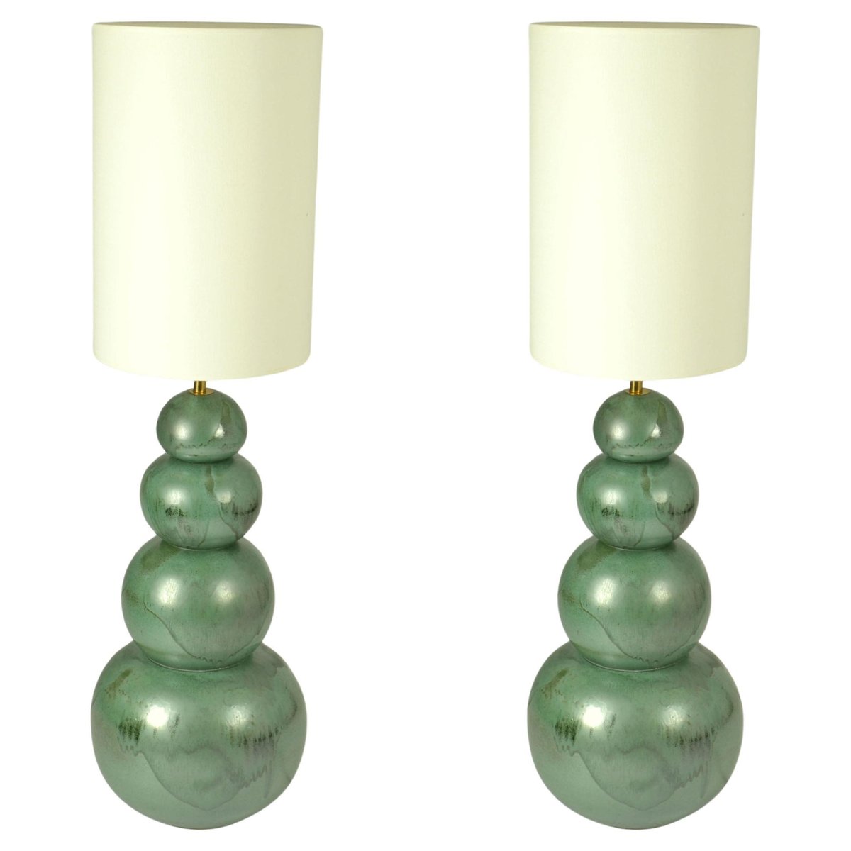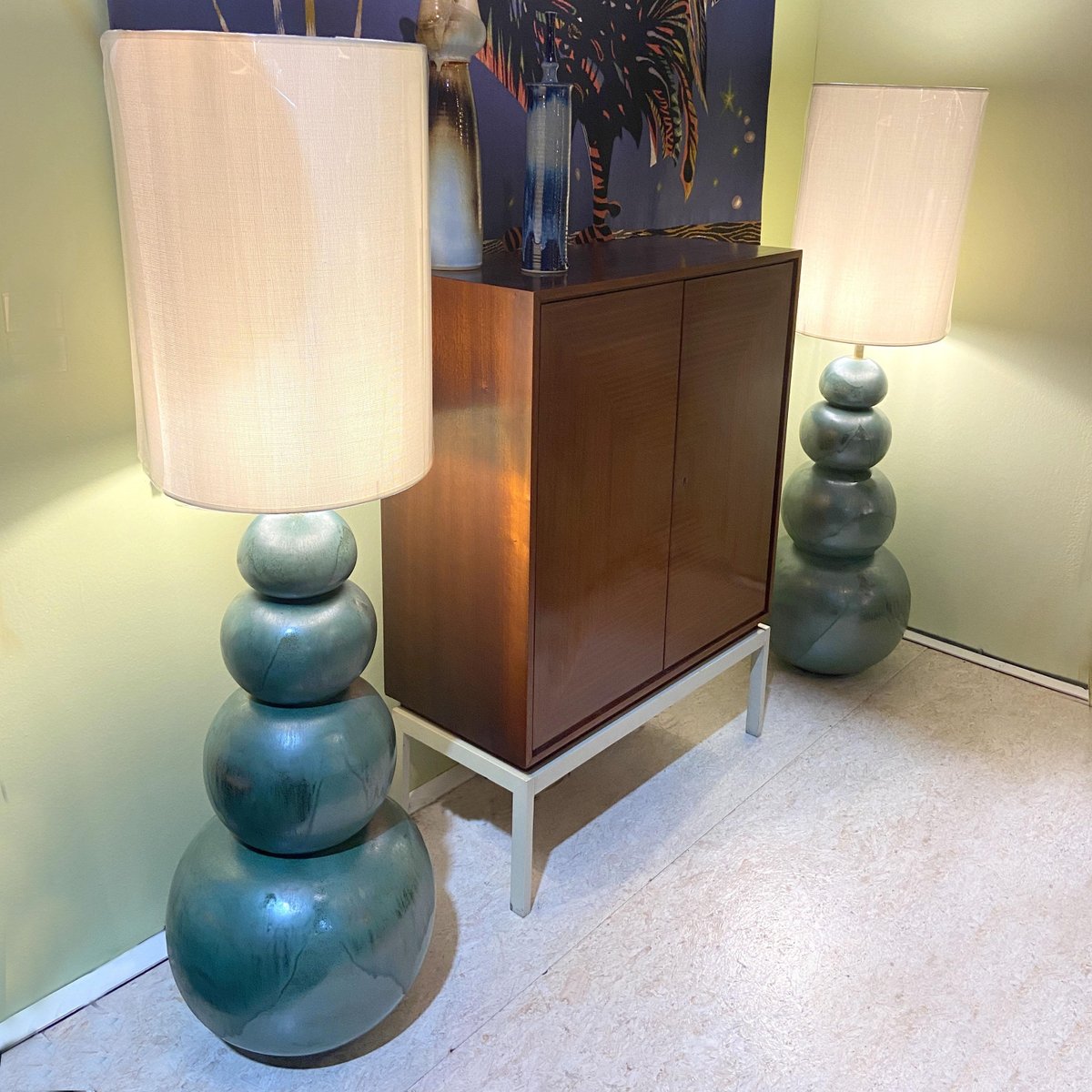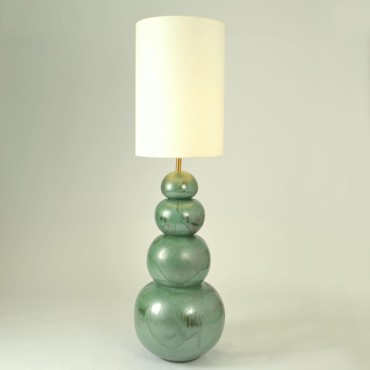Lámparas de pie grandes de cerámica en verde mar atribuidas a Kaiser, años 80. Juego de 2