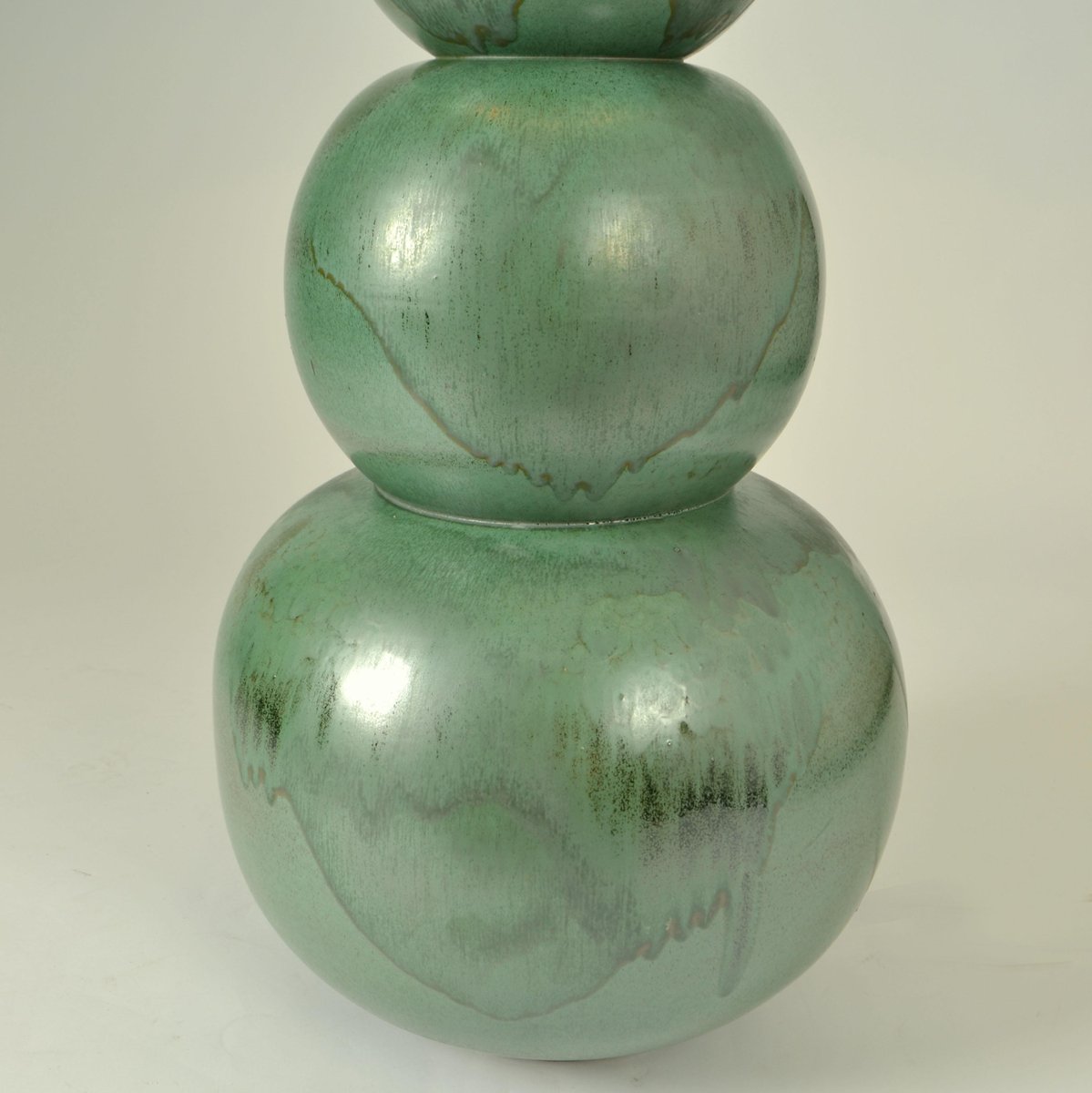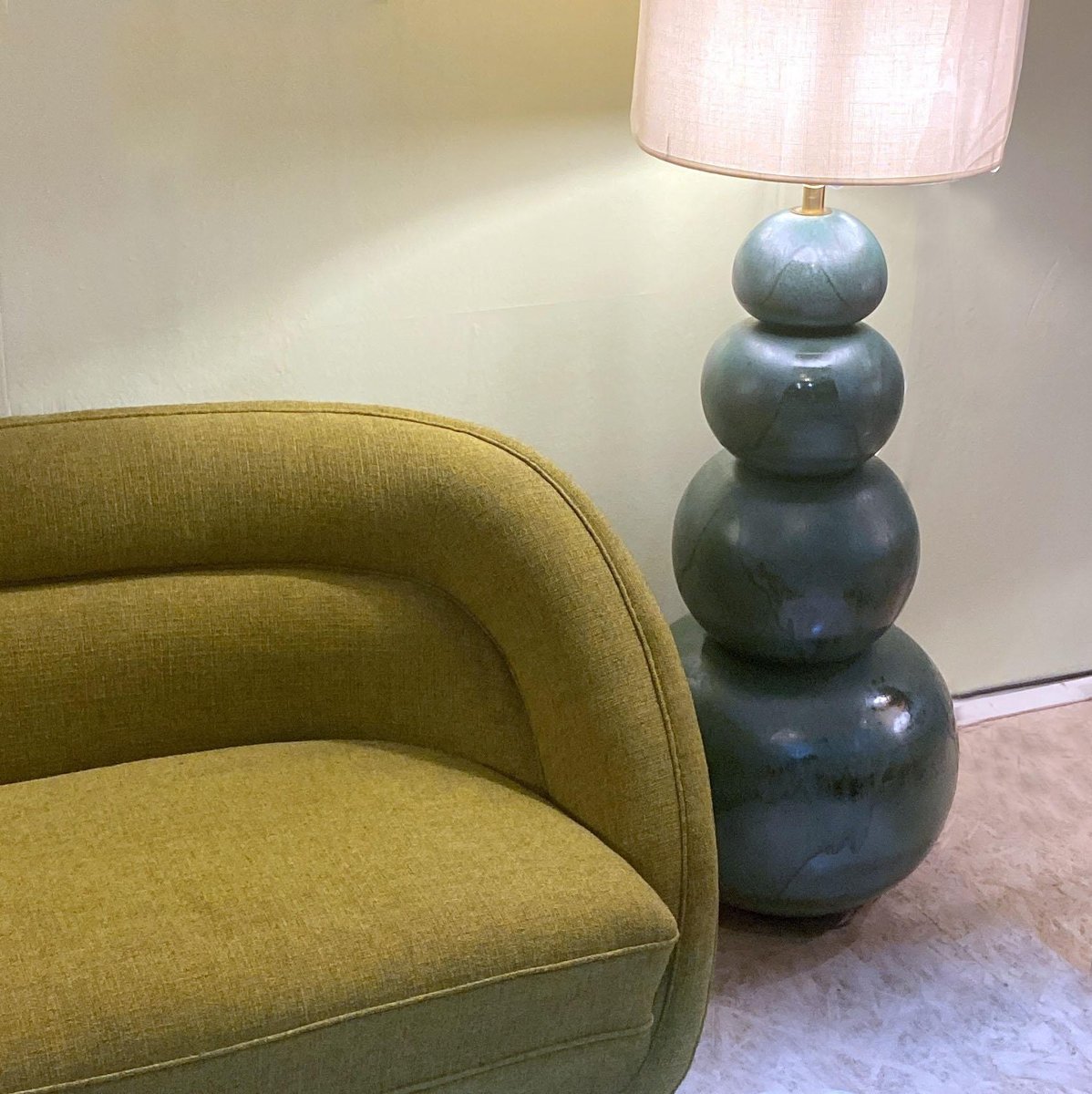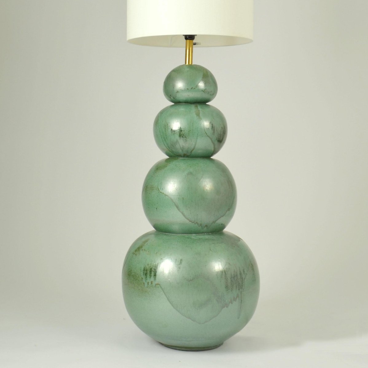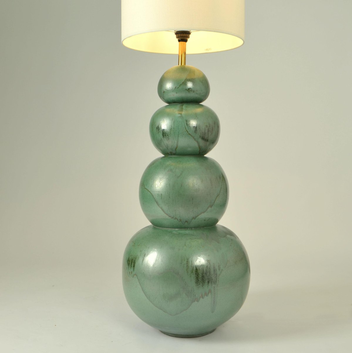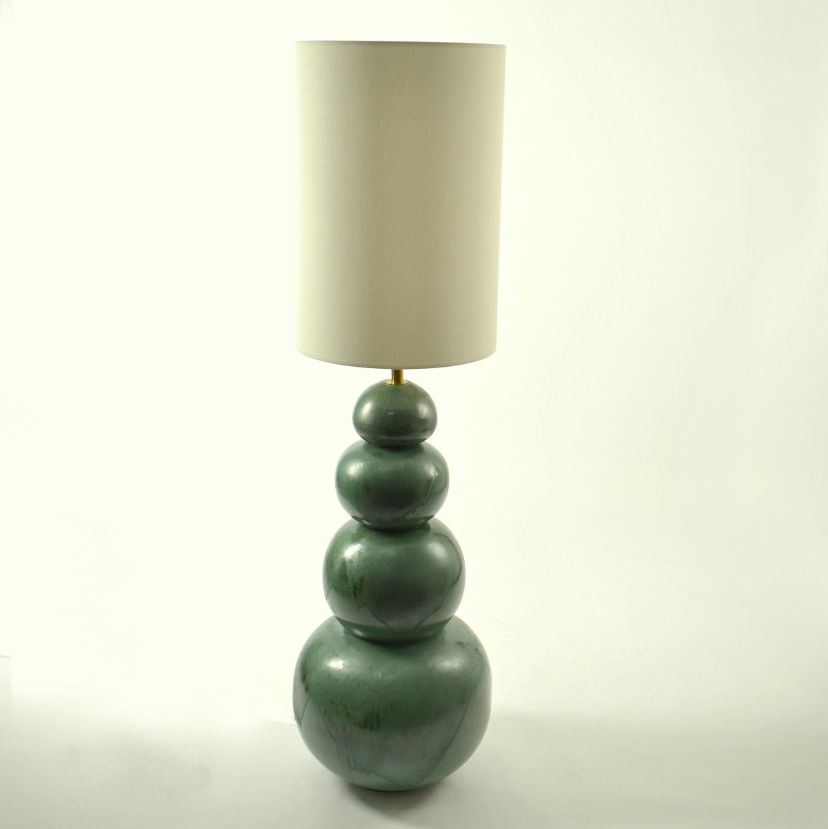 Lámparas de pie grandes de cerámica en verde mar atribuidas a Kaiser, años 80. Juego de 2