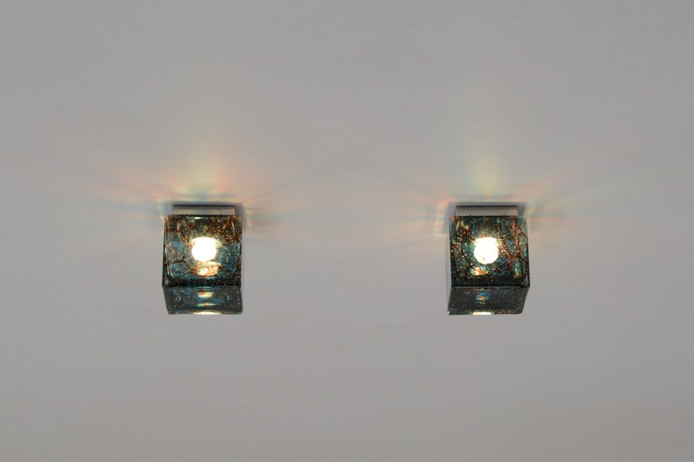 Lámparas de techo Cube de Glashütte Limburg, Alemania, años 70. Juego de 2
