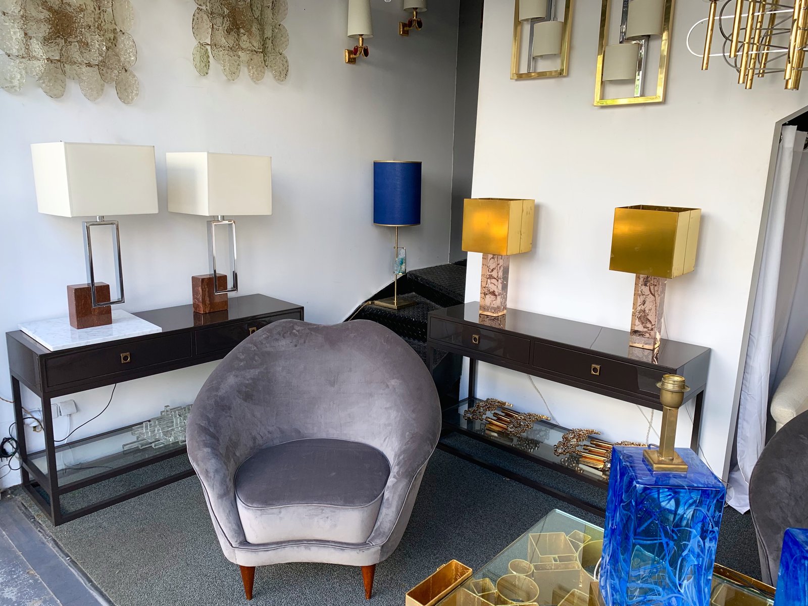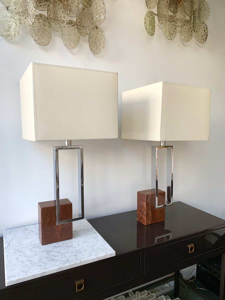 Lámparas italianas de metal, cromo y mármol de Banci, años 70. Juego de 2