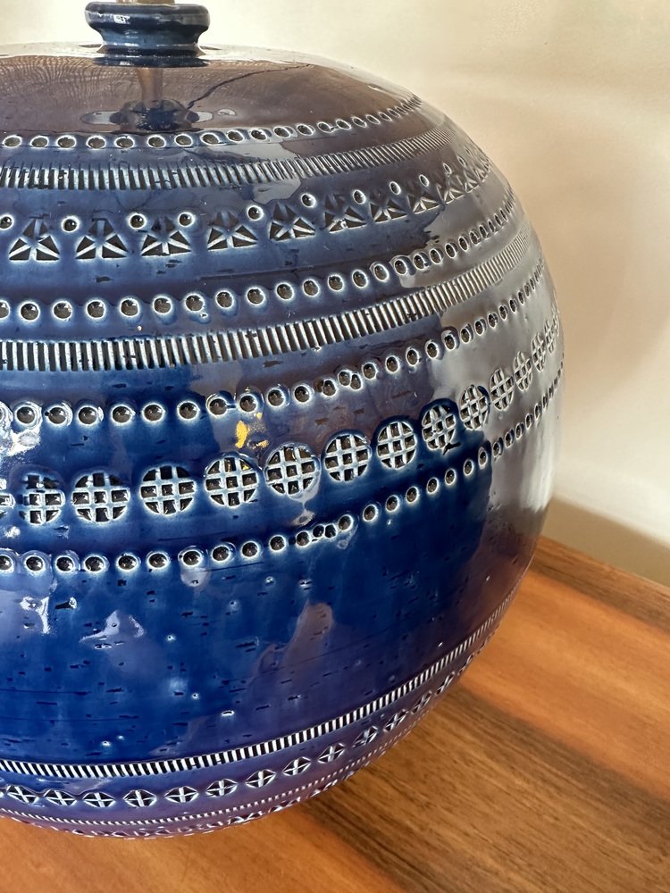 After World War II, master ceramist Aldo Londi (1911-2003) became the creative director of Bitossi Ceramiche, a position he held for more than fifty years. Londi—who was also from Montelupo—began apprenticing in ceramics at the age of eleven and brought to Bitossi a deep expertise in traditional ceramics production. He’s best known for his 1950s-era collection Rimini Blu (1955-1965). This iconic midcentury modern series contains over 150 designs, including bowls, vases, jugs and animal figurines, all glazed in a vibrant blue hue and embossed with abstract motifs and shapes. Londi created the first piece glazed in Persiano Blue, Ball Vase, in 1955. Shortly after in 1959, he began to create more pieces in the proprietary chromatic glaze. The collection holds historical importance because it helped to bring handcrafted and expressive works into the modernist design conversation in Italy. Though the blue was not the only color Bitossi favored, it has become closely associated with the brand’s identity. The collection is still in production today and widely collected by ceramics enthusiasts.