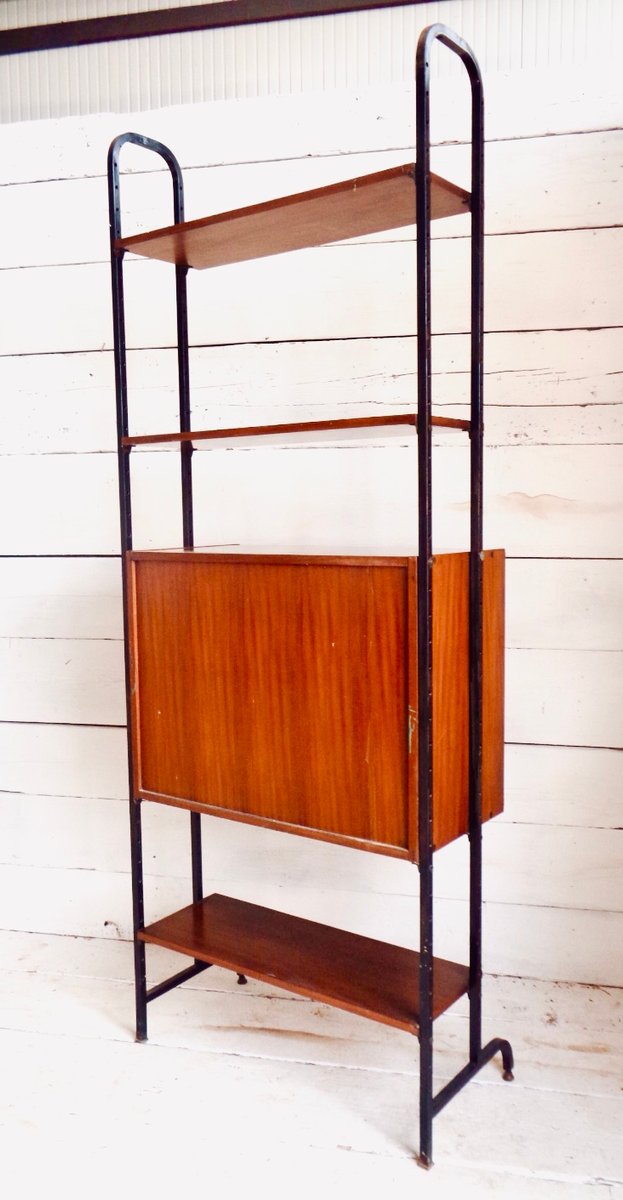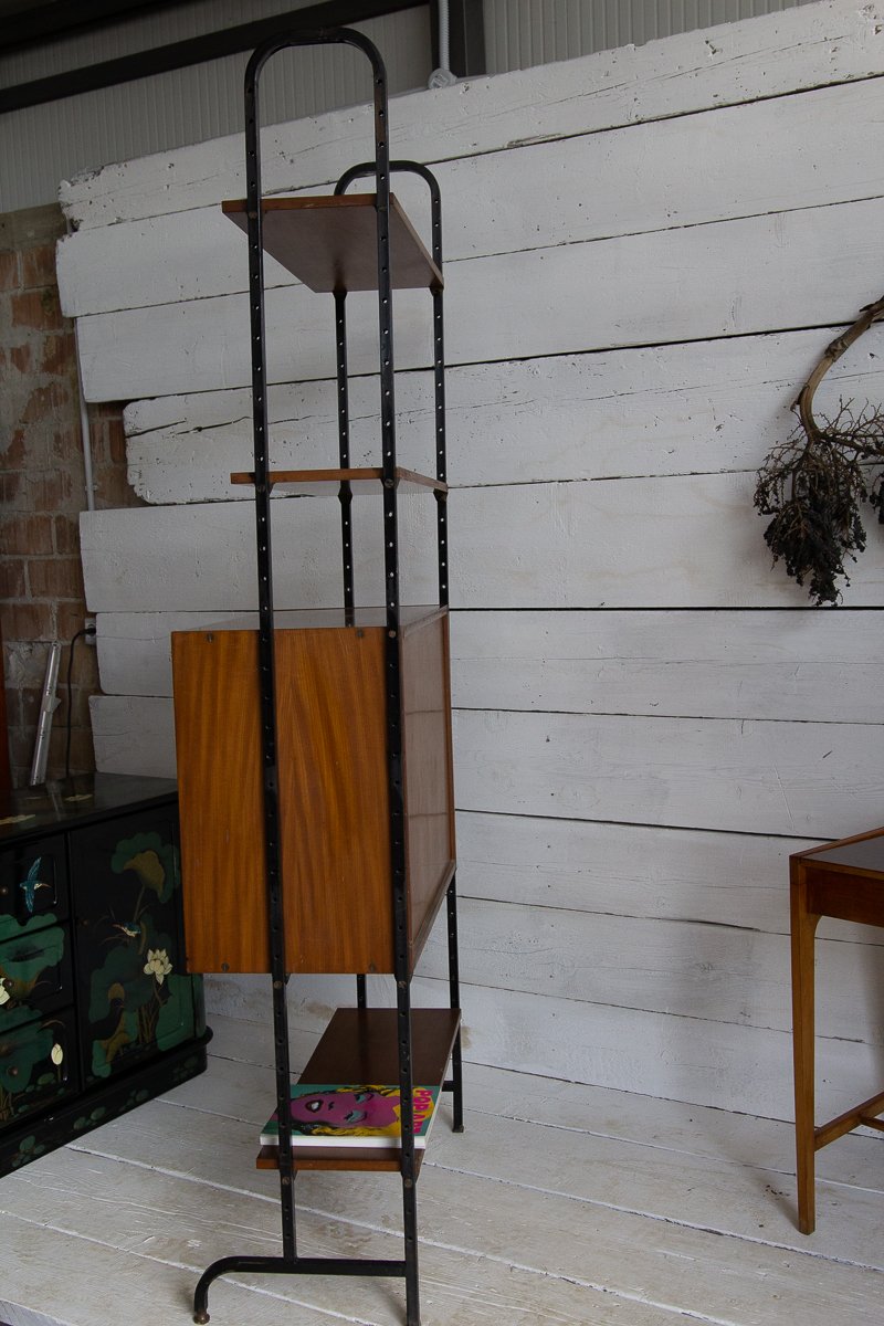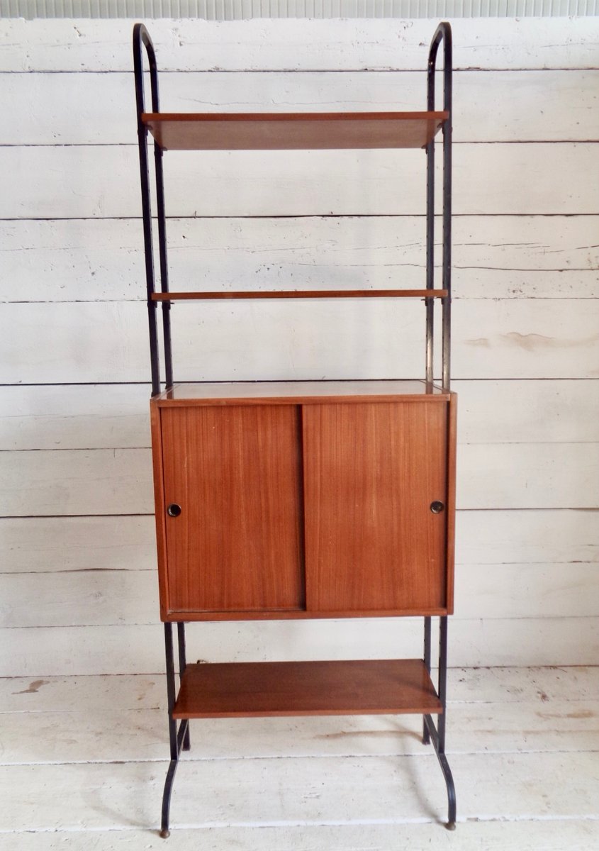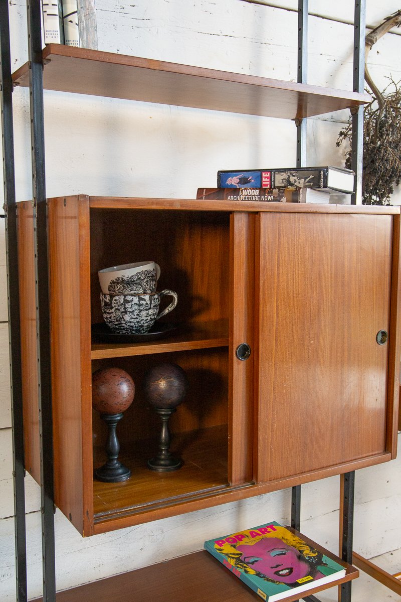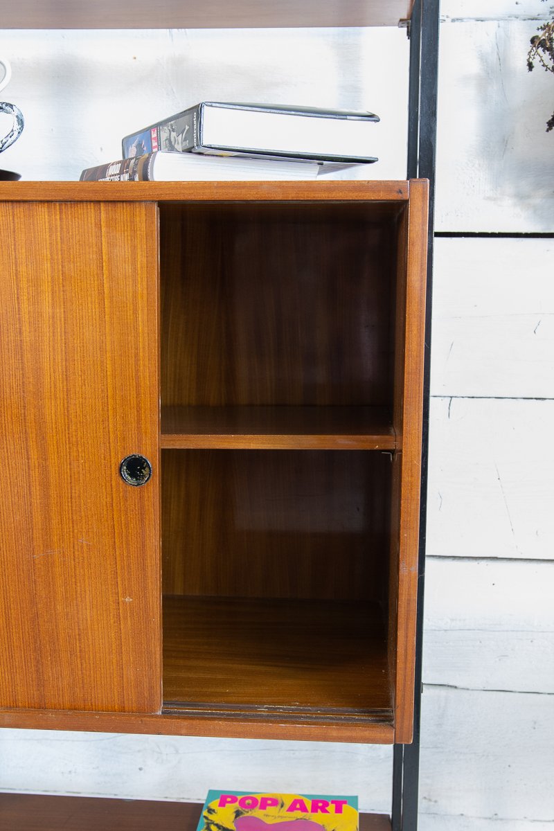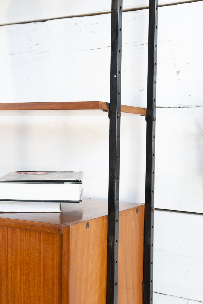 Librería escandinava de teca y metal con un compartimento, años 60