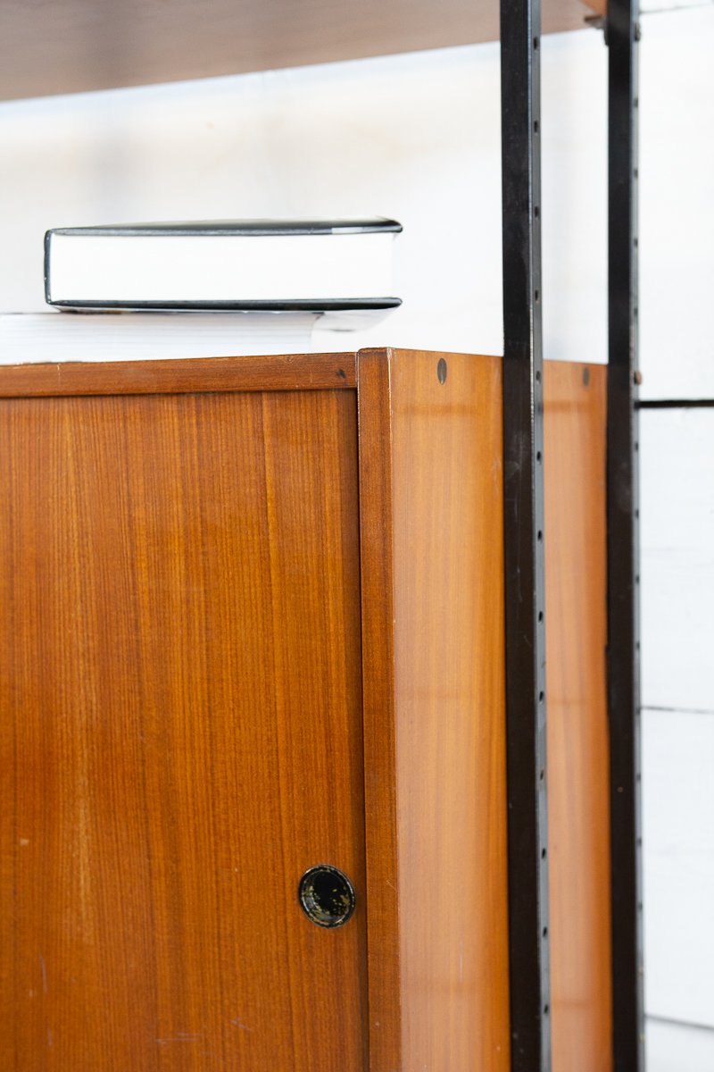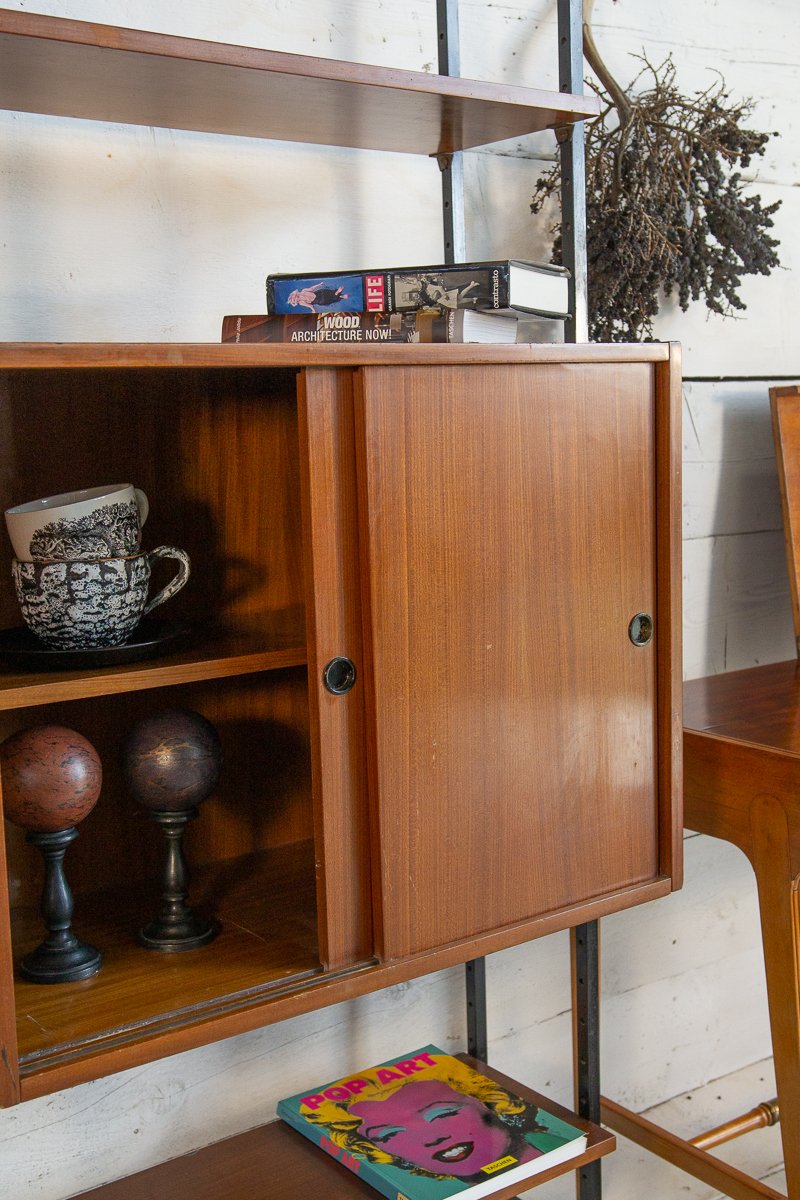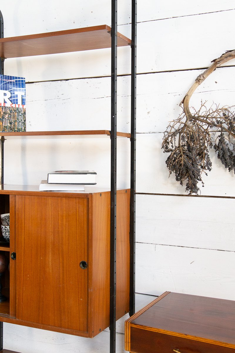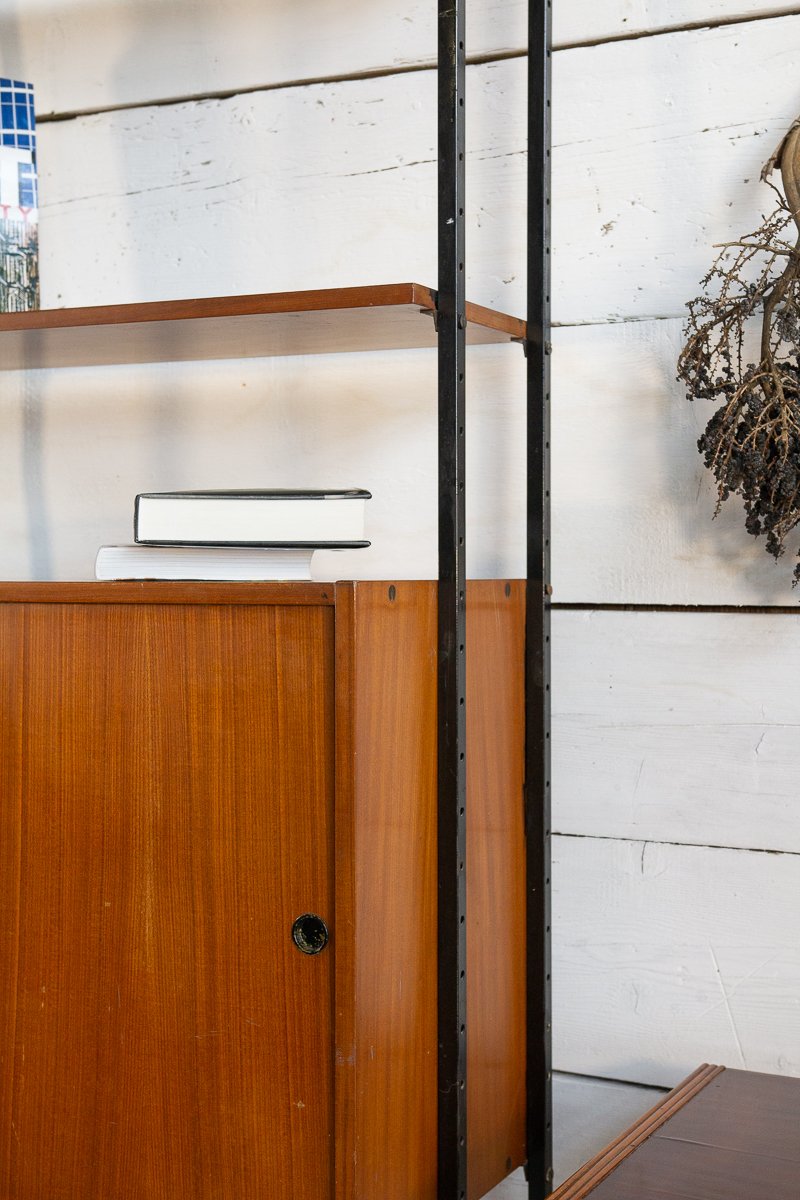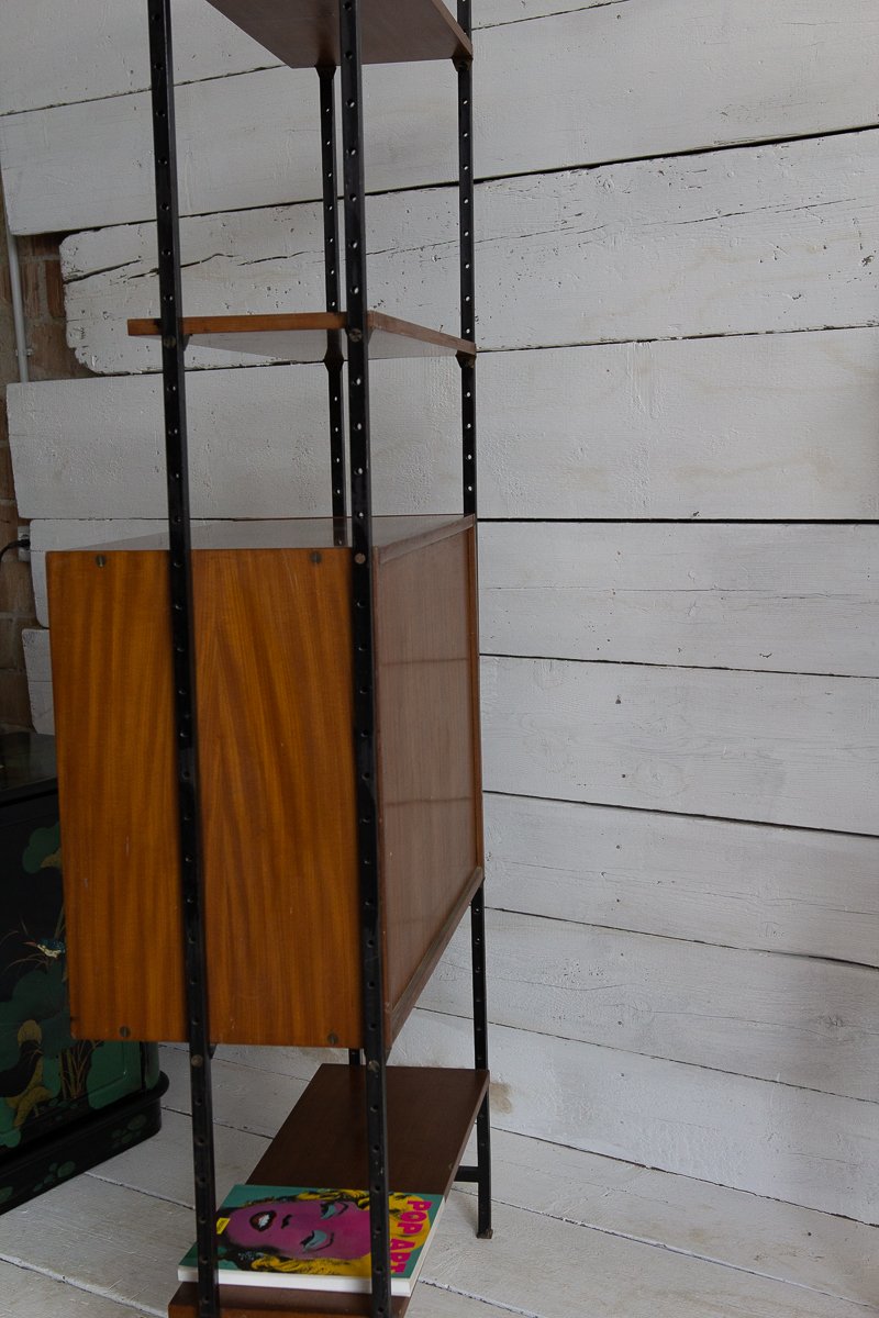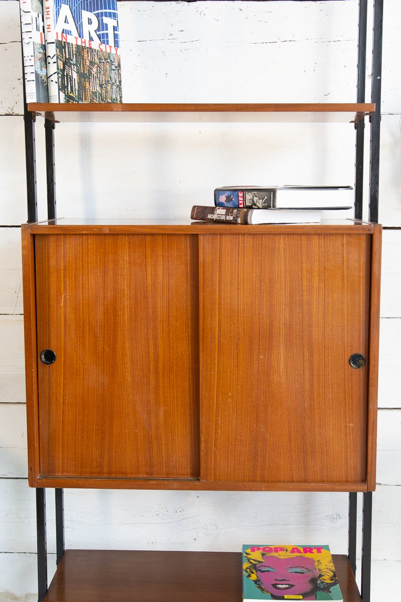 Librería escandinava de teca y metal con un compartimento, años 60