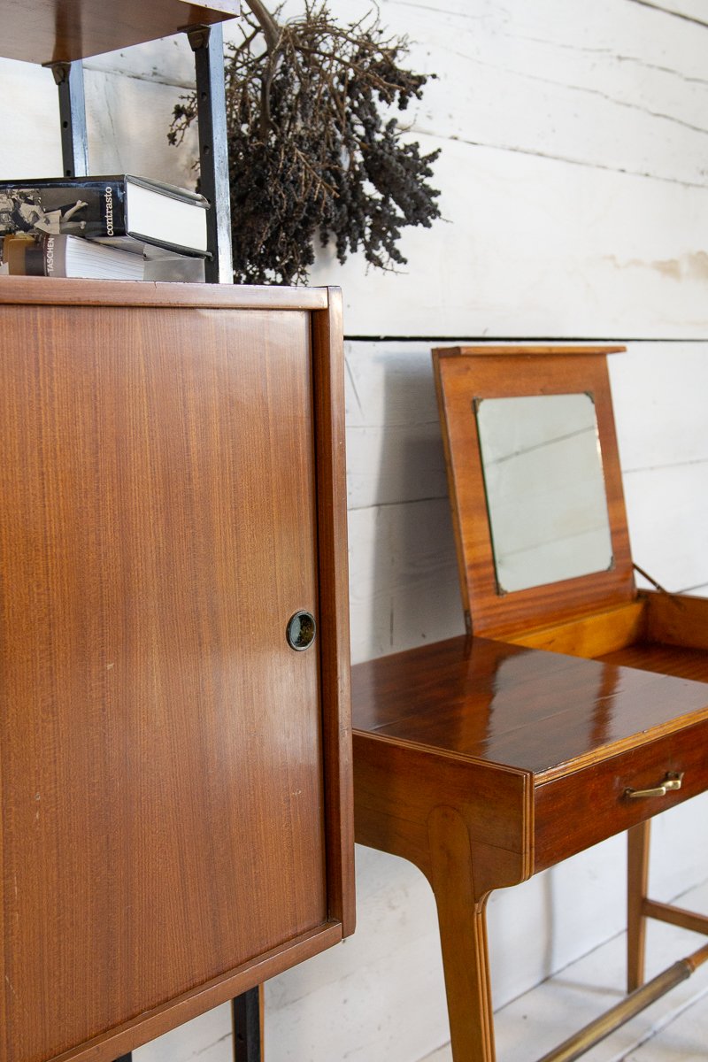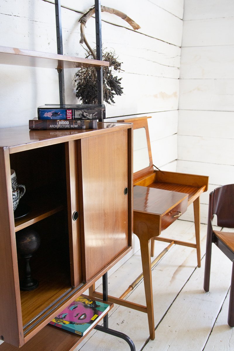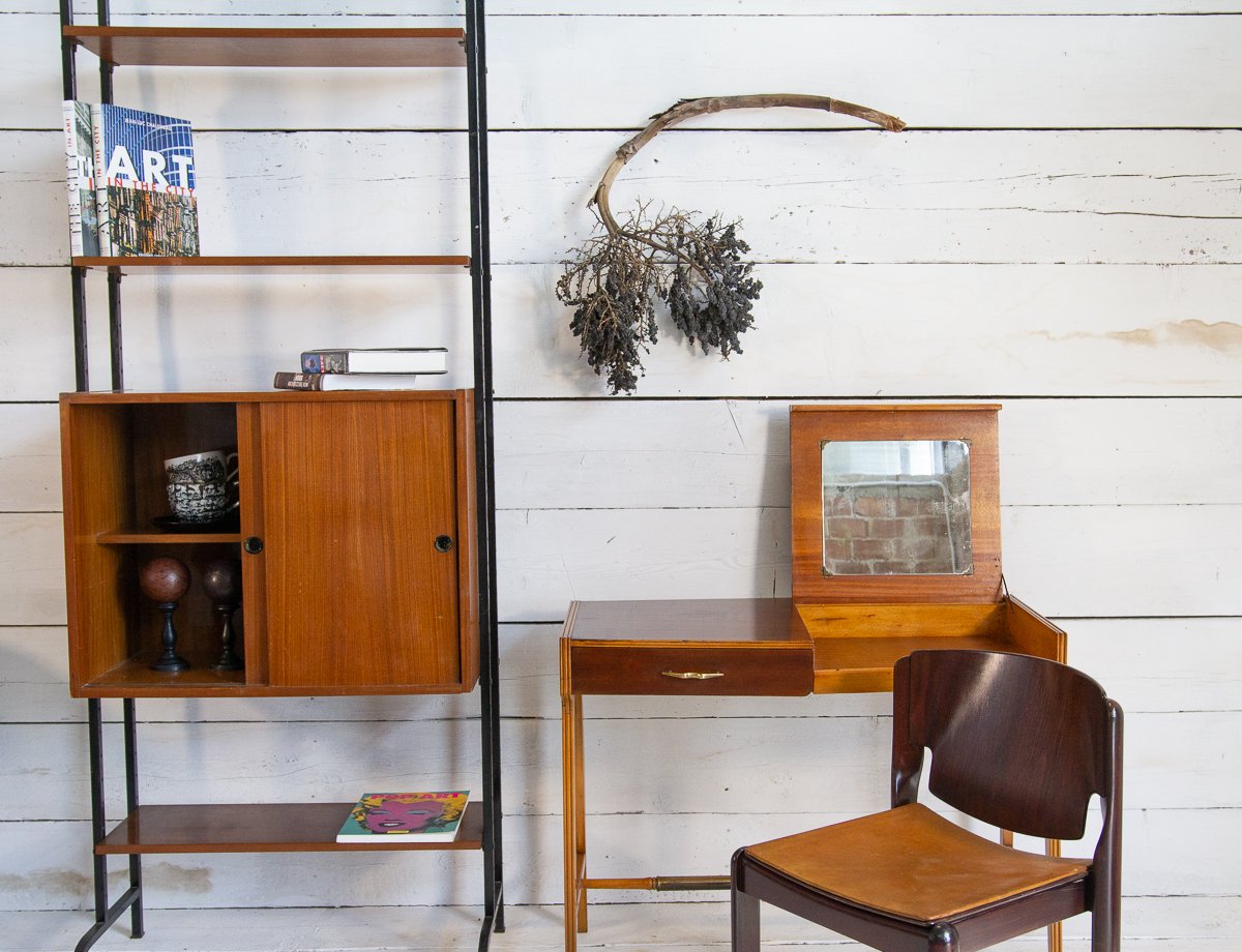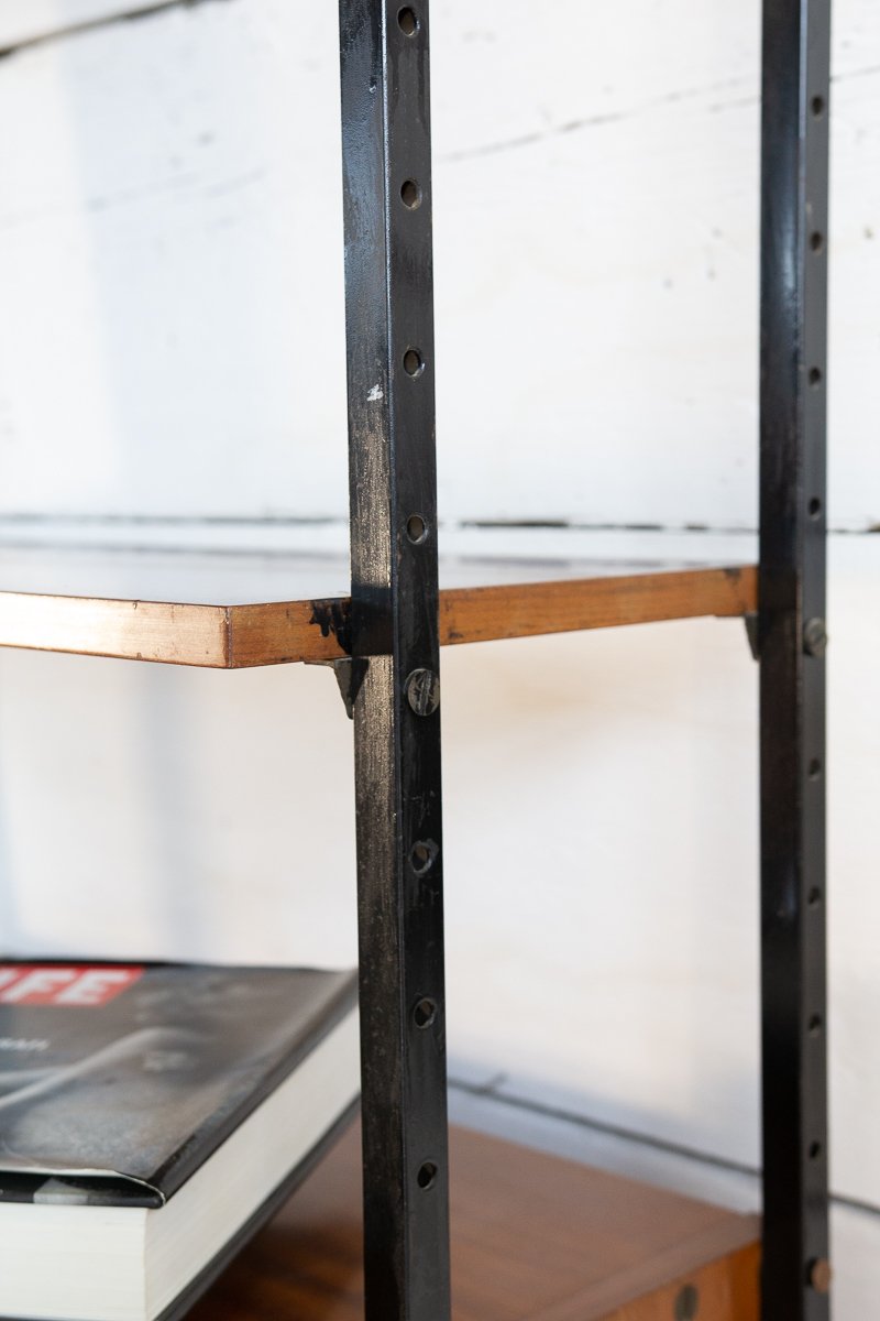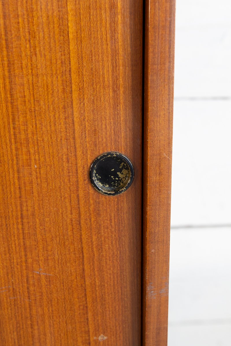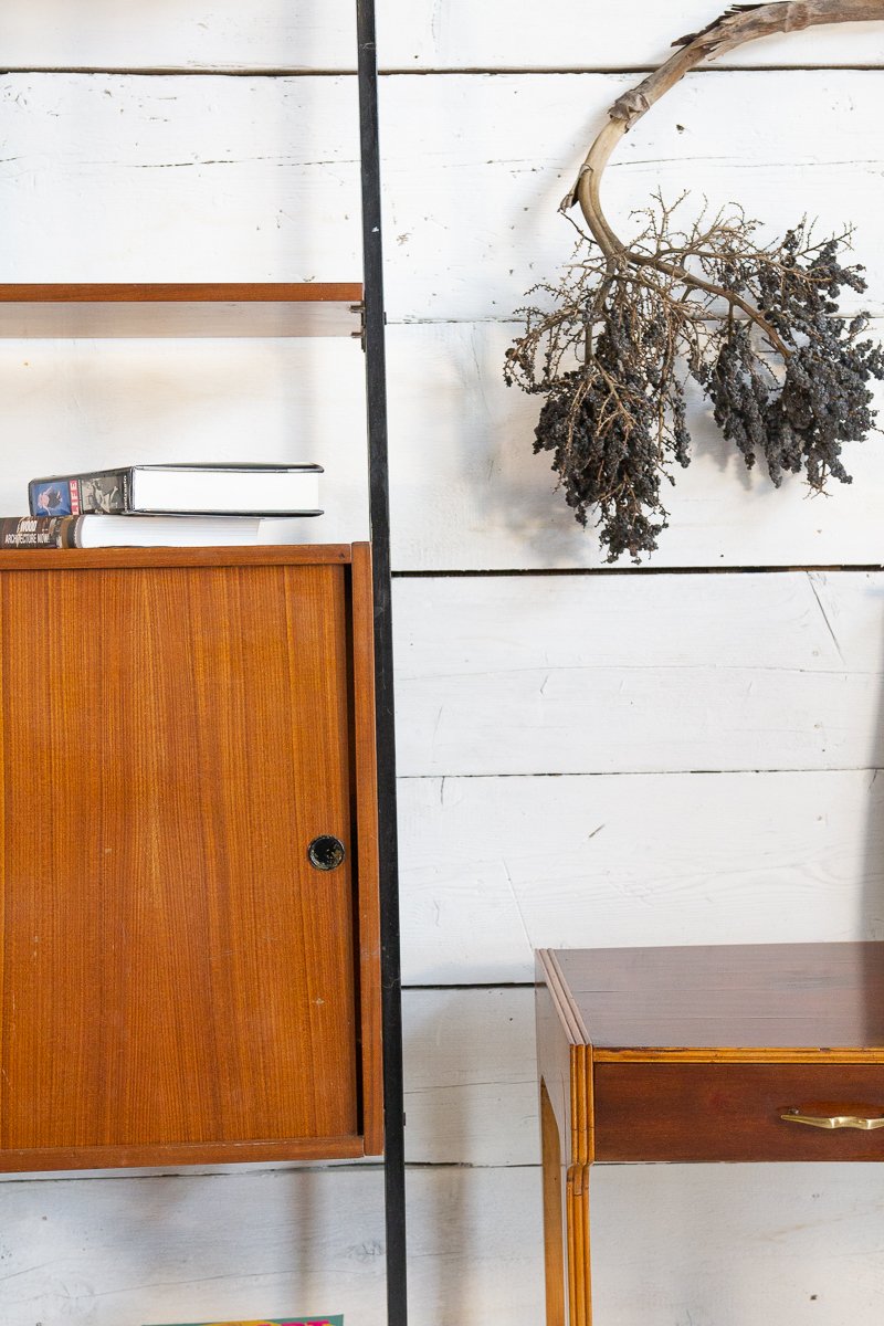 Librería escandinava de teca y metal con un compartimento, años 60