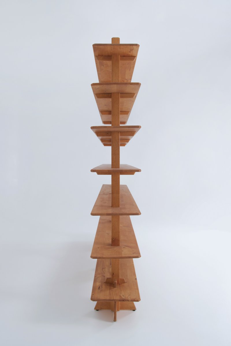 A free-standing bookshelf, manufactured in 1995 in Uppsala, Sweden by the carpentry atelier Peter Kallas. Only 10 bookshelves have been made in total, making it a very rare item.