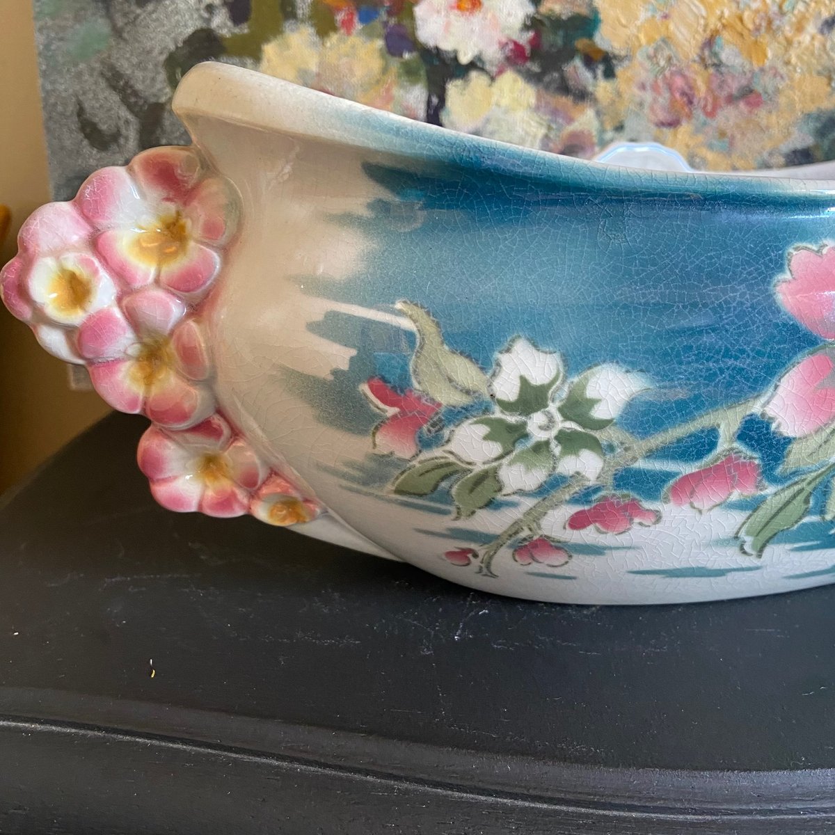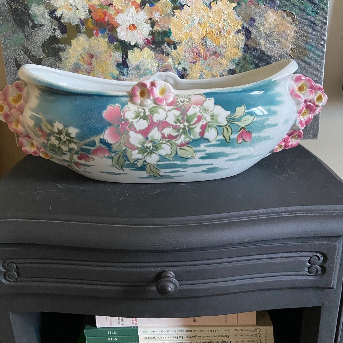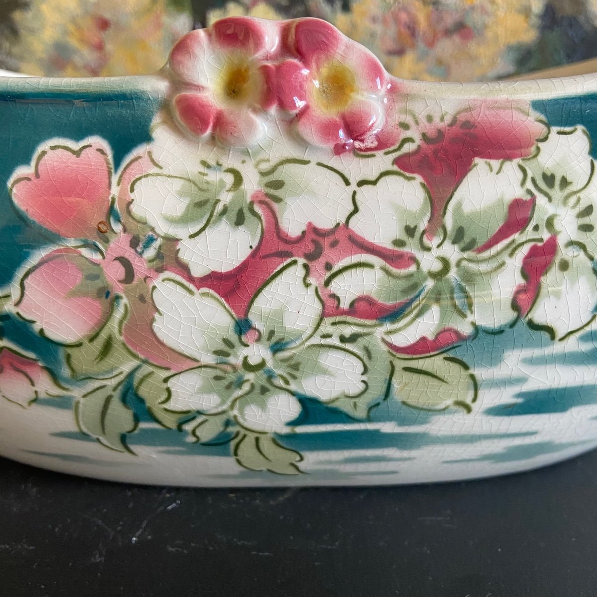 Maceta francesa de pensamientos de mayólica de Keller Guerin Luneville, década de 1890