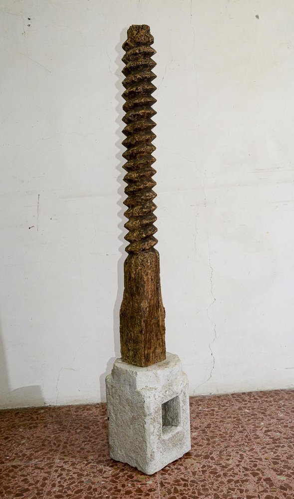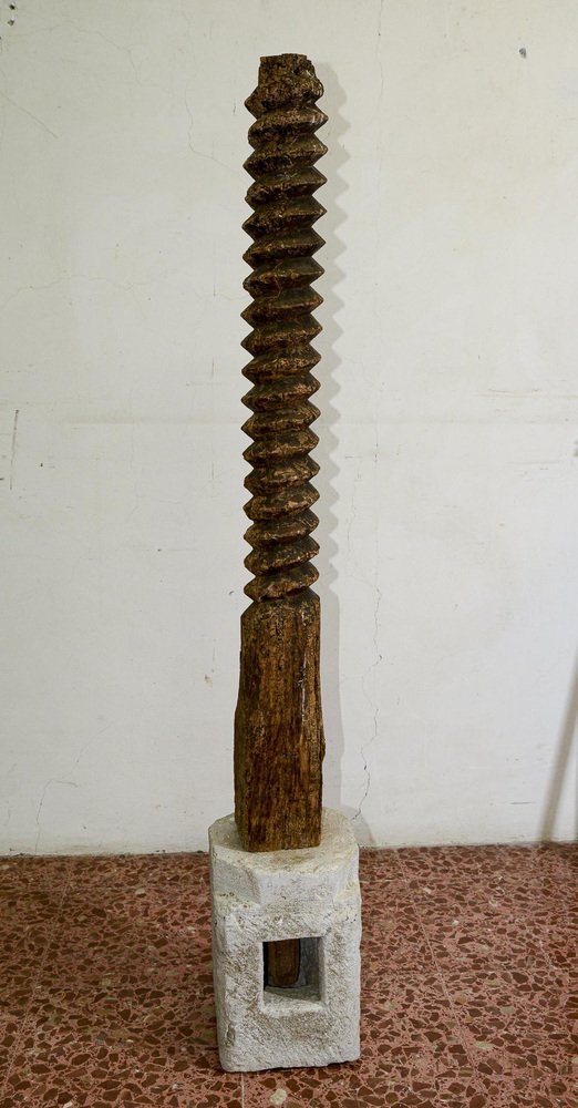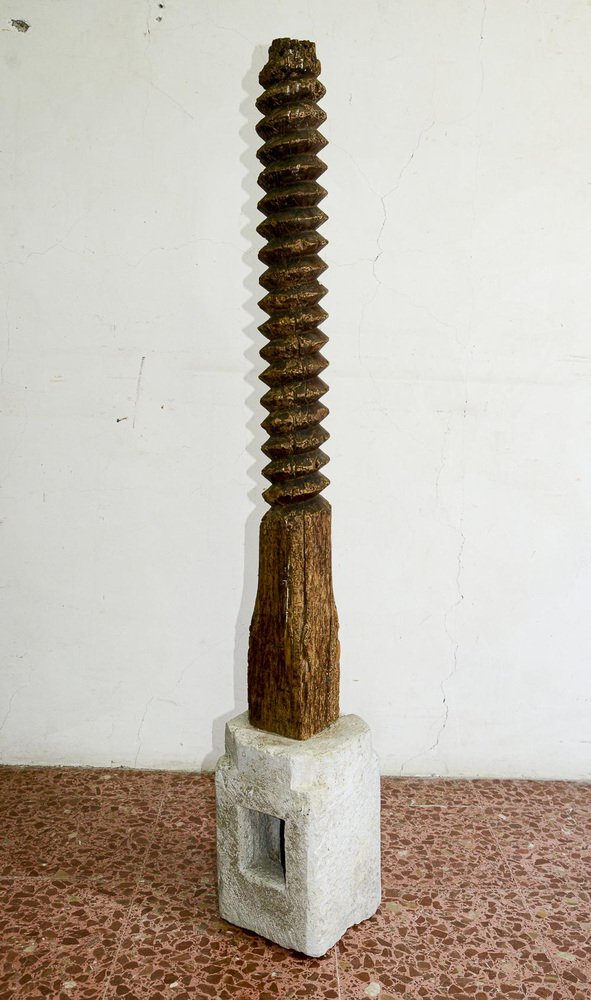 Marco de tornillo torneado de madera prensada con base de piedra moldeada