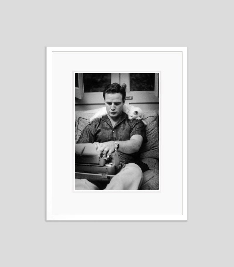 Impresión Marlon Brando 1954 de plata con resina de gelatina enmarcada en blanco de Murray Garrett