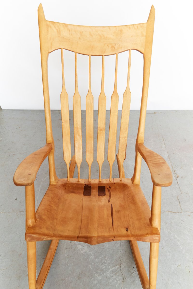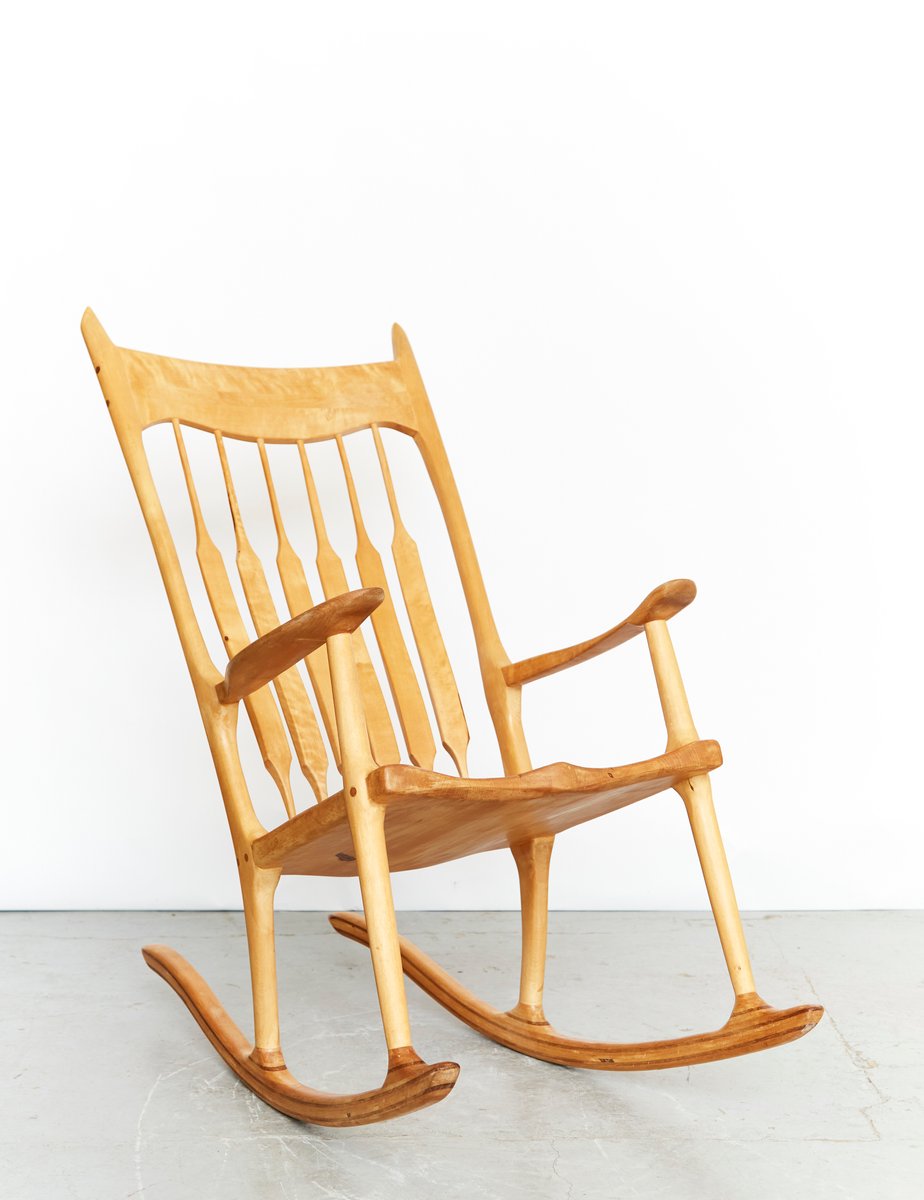 The self-taught Sam Maloof was an American carpenter and furniture designer, best known for his artfully crafted, sculptural rocking chairs and organically shaped furniture pieces. His work combines traditional craftsmanship with a modernist aesthetic, and he is considered one of the most important American artisans of the 20th century.