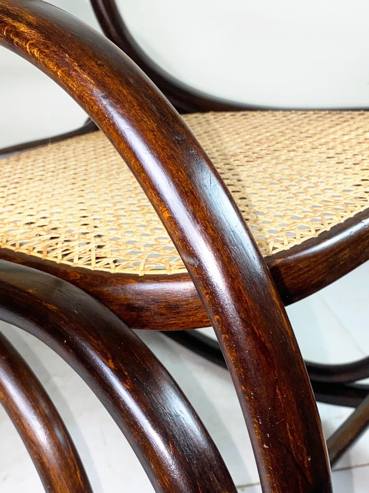 Iconic pieces from the traditional Gebrüder Thonet collection include Rocking Chair No. 1 (1860), No. 14 Café Chair (ca. 1859), Adolf Loos’s Café Museum Chair (1899), No. 209 Armchair (ca. 1900), Otto Wagner’s No. 247 Postal Savings Bank Chair (1904), and Josef Hoffmann’s No. 811 (1925). In the early years of the 20th century, Gebrüder Thonet also began producing designs in bent tubular steel by Bauhaus masters like Marcel Breuer, Ludwig Mies van der Rohe, and Mart Stam.