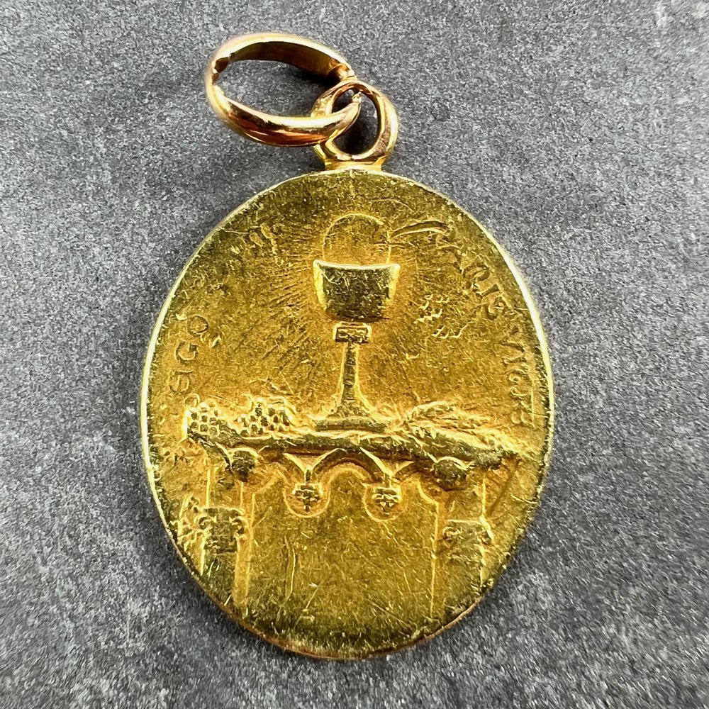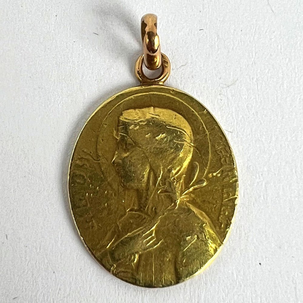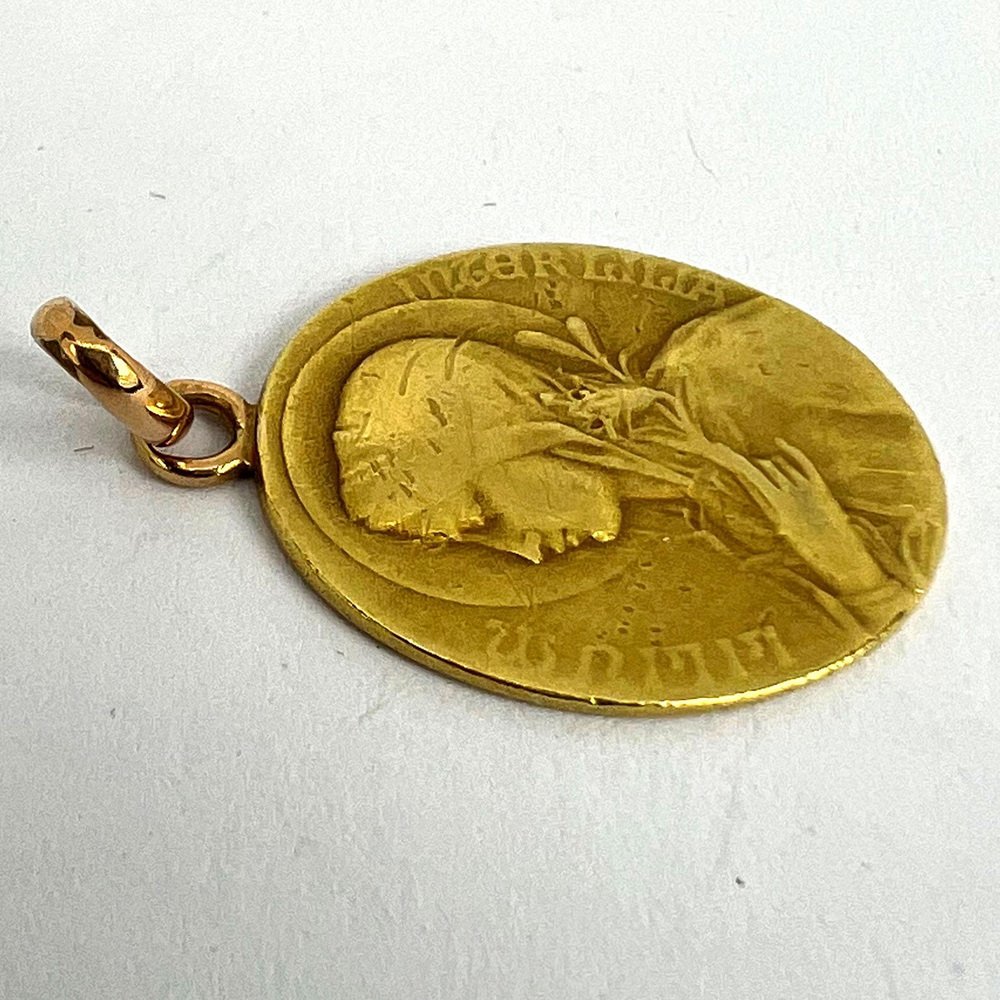 Medalla con colgante ovalada de la Virgen María francesa en oro amarillo de 18 k, década de 1890