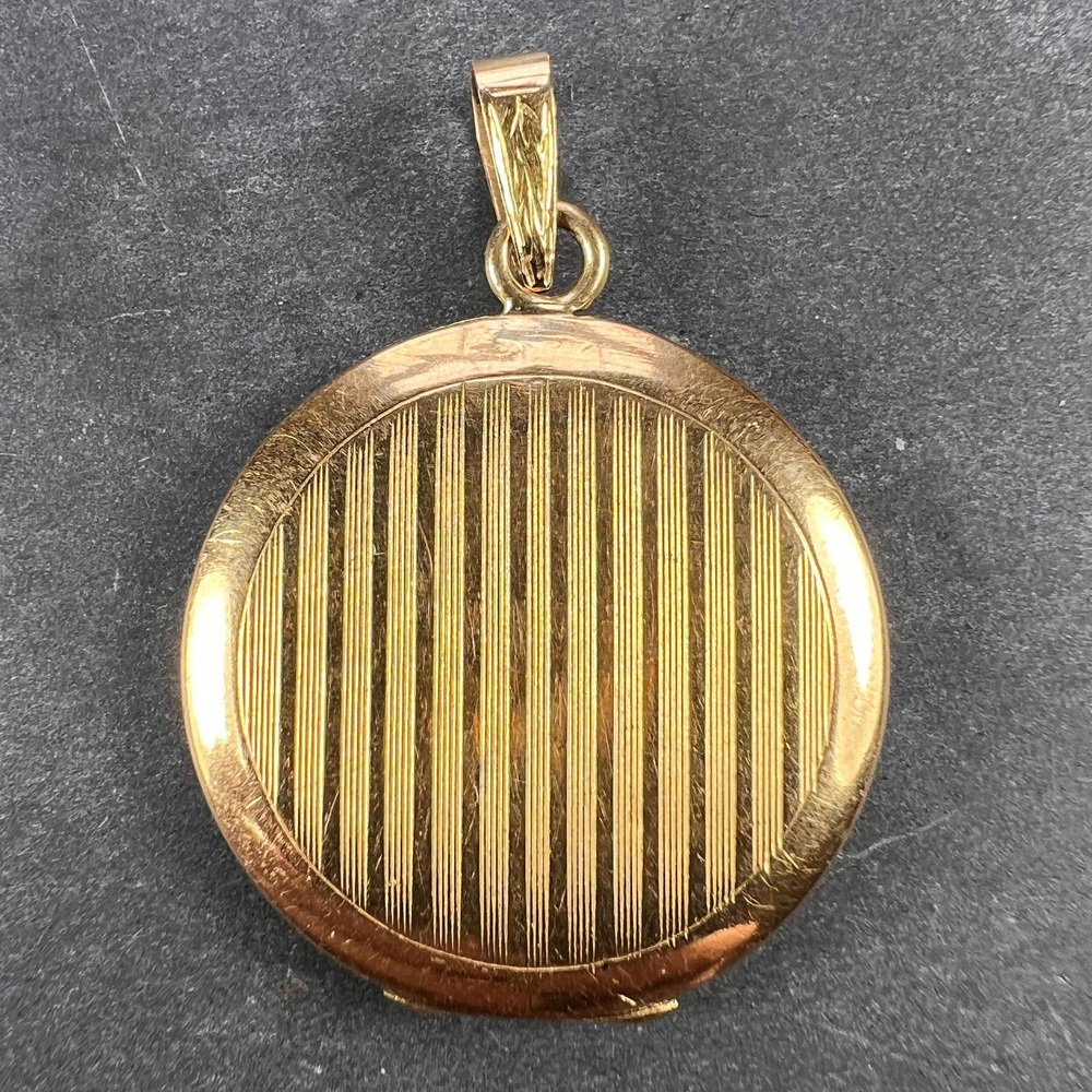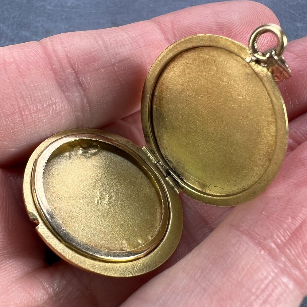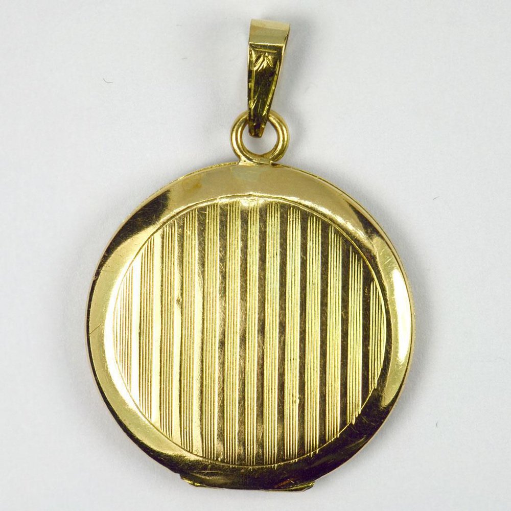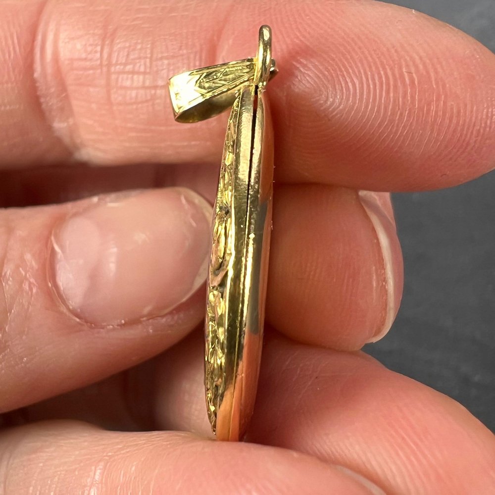 Medallón colgante de oro amarillo de 18 k esmaltado morado, década de 1890