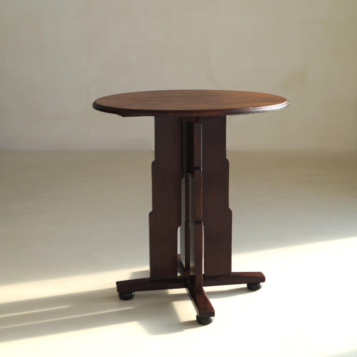 The Amsterdam School movement emerged in the Netherlands in the 1910s–1940s, known for its expressive forms, solid craftsmanship, and sculptural approach to design. Furniture from this period often combines architectural strength with refined detailing, emphasizing honest materials and artisanal construction. This table is a fine example of that philosophy, where form and function are inseparable.
