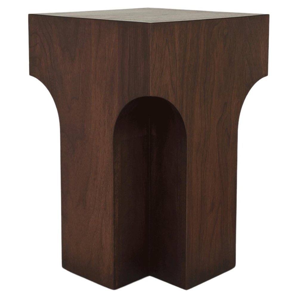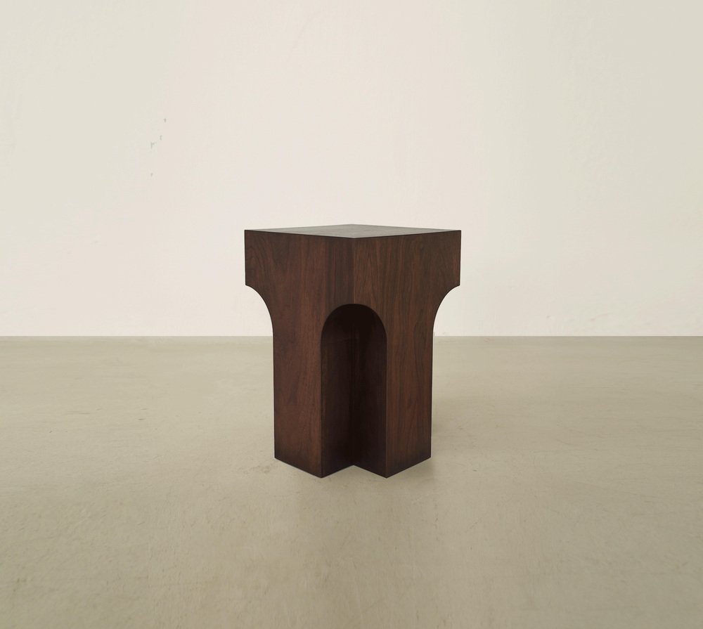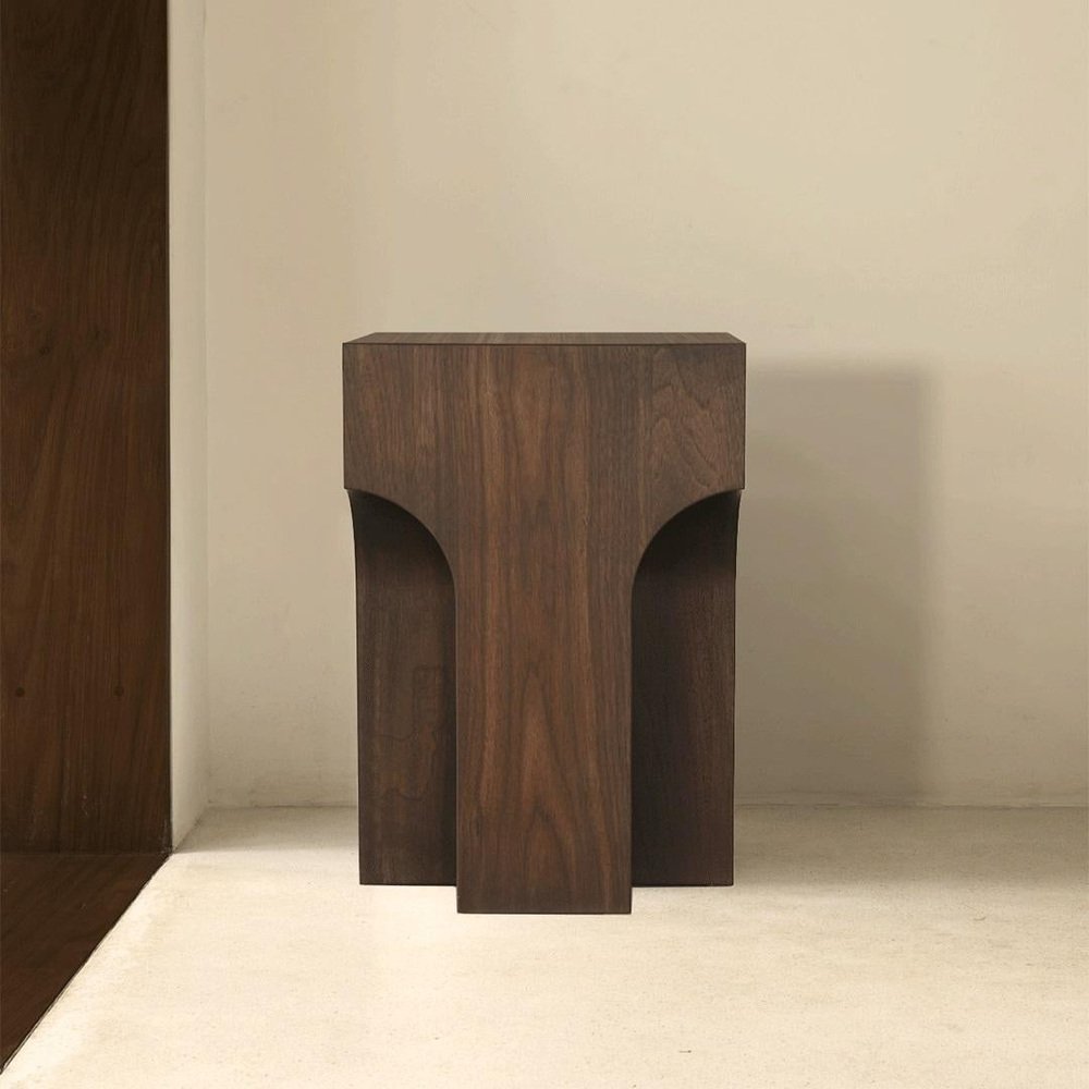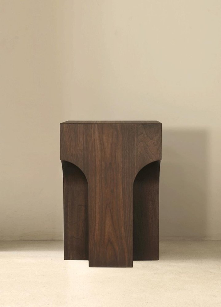Amud Side Table by Selma Lazrak Dimensions: D 32 x W 32 x H 46 cm Materials: Solid American walnut. The piece is inspired by the architecture of the columns founded in the city of Fez in Morocco. The chamfered edges of the pillars are inspired by the nature of the region and the layered heritage of all the civilizations that populated these lands, from the Romans to the Arab-Andalusians. The piece is a tribute to nature and crafts of Morocco. Selma Lazrak is an architect and product designer born in Morocco and based in Munich, Germany. Her studio's work revolves around the intersection of design, identity, and territory, spanning from object design to architecture. After completing her master's degree in architecture and sustainable design in France, she embarked on a professional journey, holding project lead roles in architecture and interior design firms across Morocco, Germany, Turkey, and France. During her tenure, while working on public buildings in Istanbul and leading the interior design project for the renowned Khedive's Palace restoration (1907), she also delved into furniture design. In 2020, Selma established her own studio in Munich, where she collaborated with renowned architects as an international project manager and architect, simultaneously developing her own design pieces. Her meticulously handcrafted pieces, crafted from noble materials, pay homage to her heritage, personal history, and the natural essence of her homeland. She combines state-of-the-art material processing technology with the precision of hand-finishing carried out by highly skilled craftsmen from the mediterranean region, pushing the boundaries of material experimentation. In 2023, Selma Lazrak became an official member of the World Design Organization (WDO), providing her with invaluable opportunities to contribute to the design community. As a member, she has had the privilege of delivering conferences alongside the board members on design, particularly in Morocco and Africa, where she shares her insights and expertise with fellow design enthusiasts and professionals. Awards : Africa Design Award 2023 Morocco Design Award 2023 Exhibitions : April 2023 : Milan design week - Isola gallery May 2023 : Berlin design week - Stilwerk Kantgaragen May 2023 : Rabat design week (first edition) - Conference speaker with the World Design Organisation board September 2023 : Paris design week – Galerie Joseph All the design are registered and protected by the World Intellectual Property Organization (WIPO). Any reproduction is not permitted.