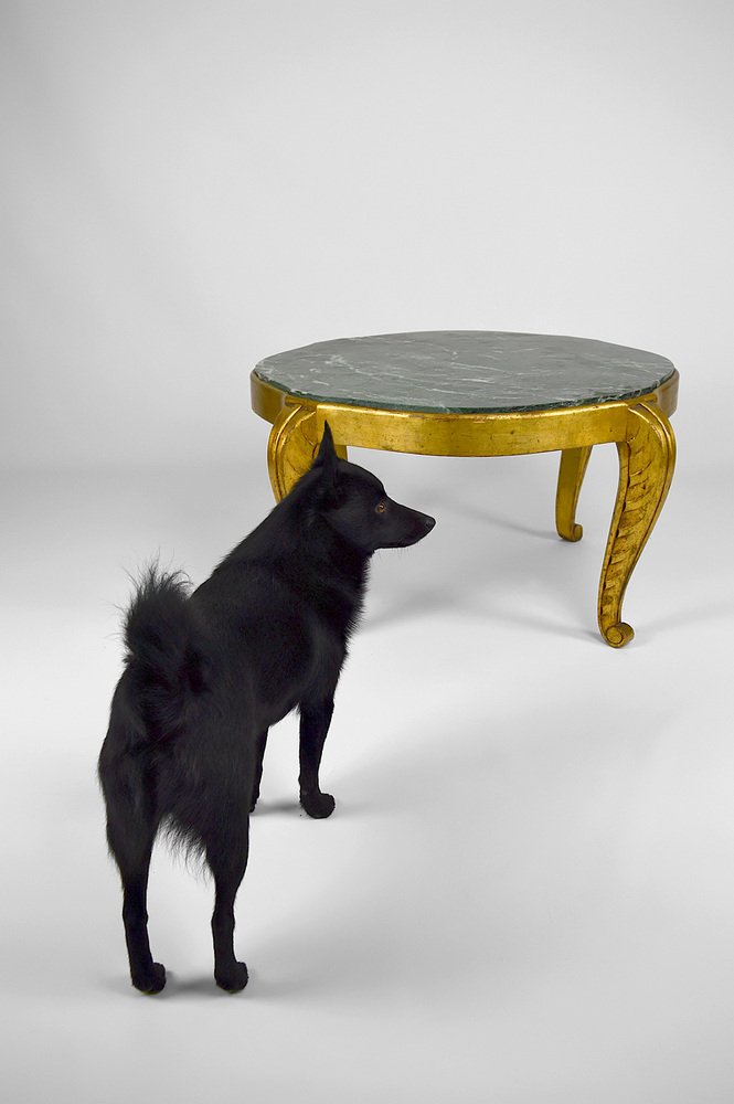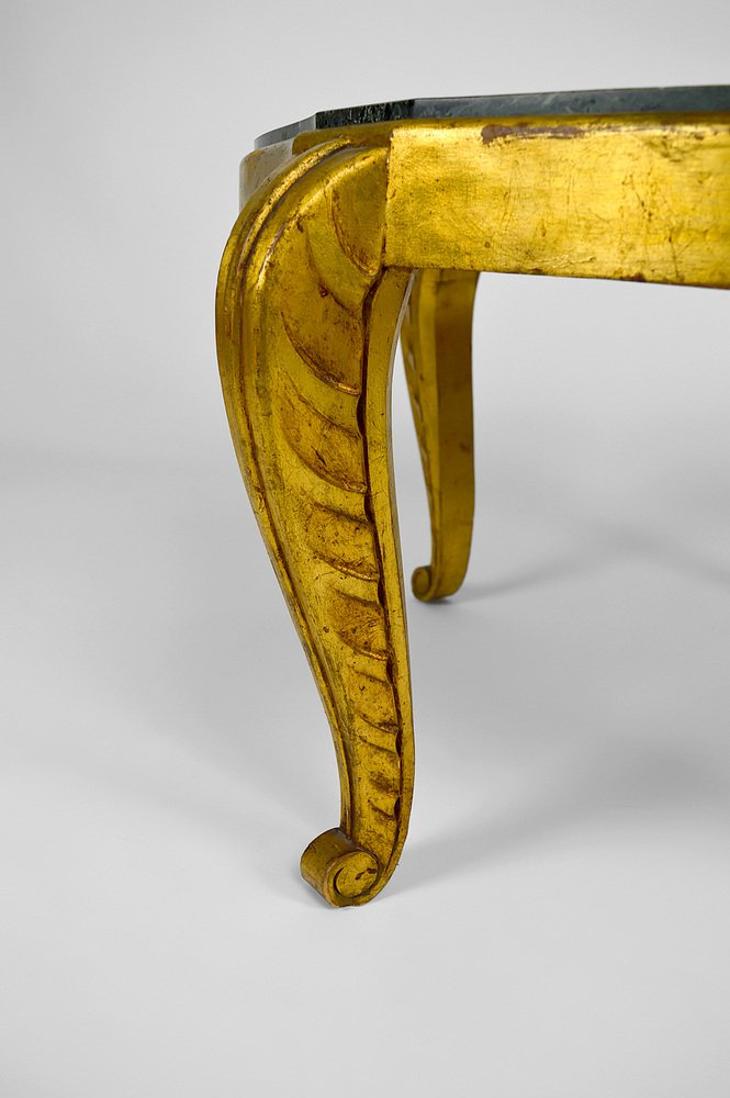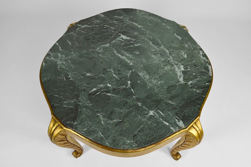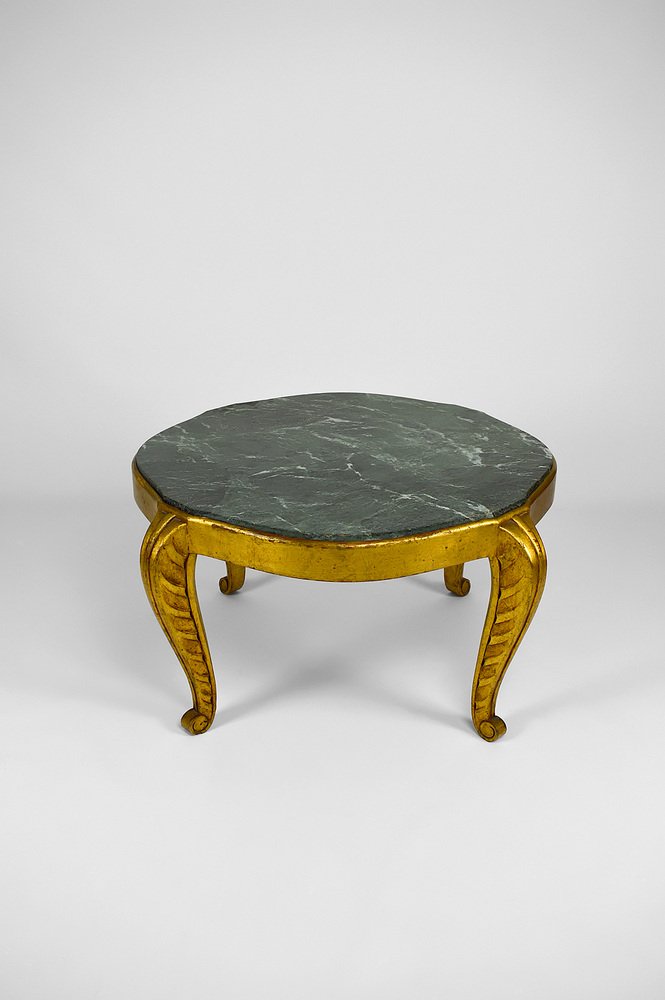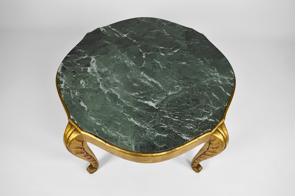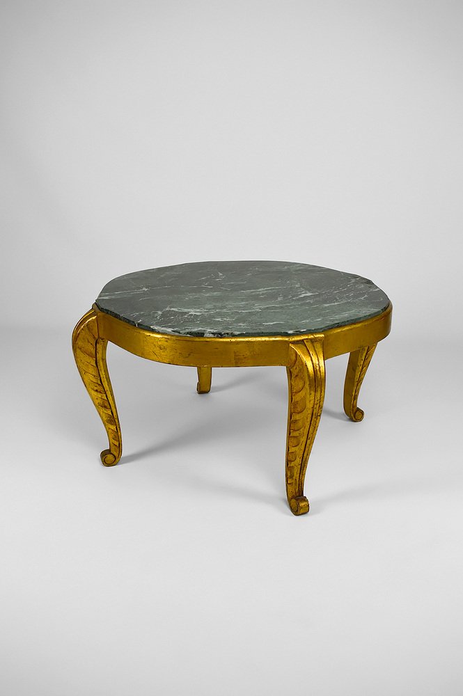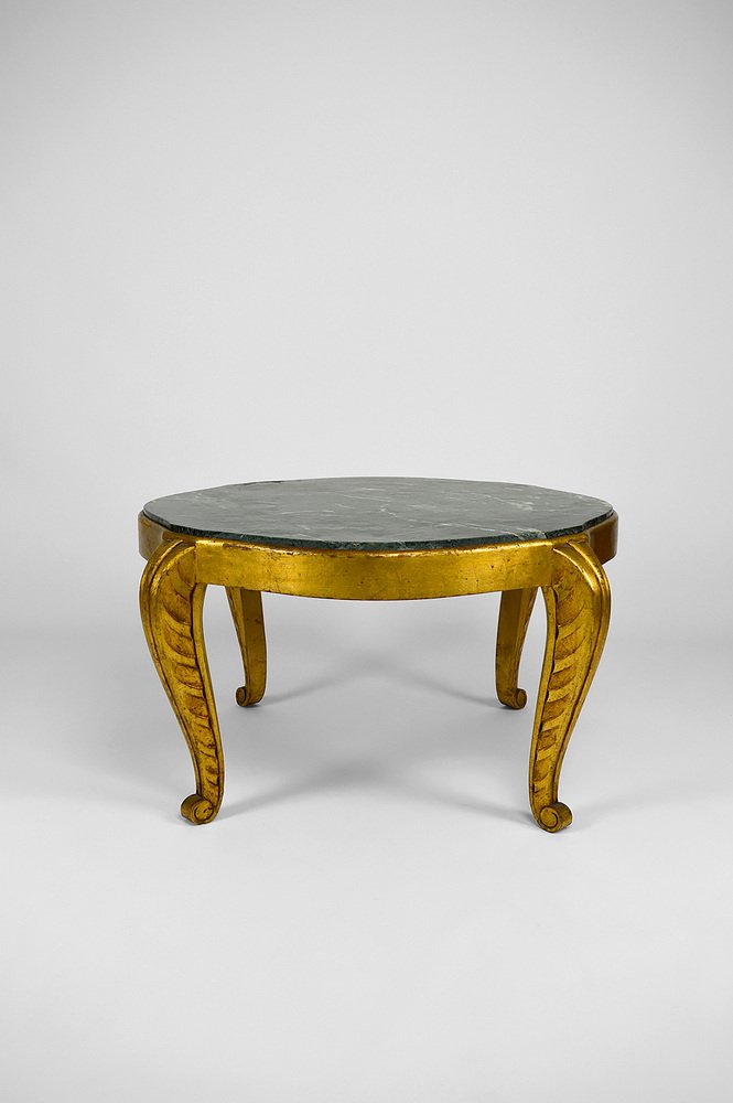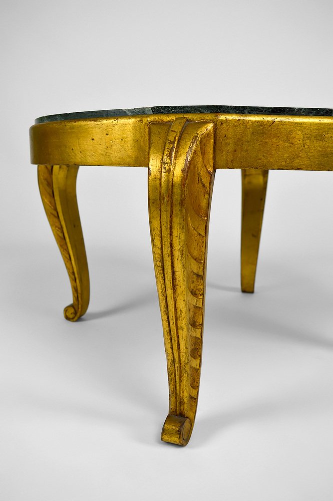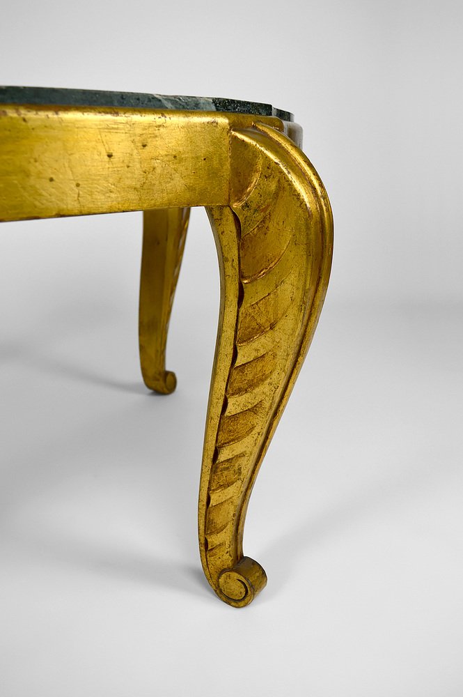 Mesa auxiliar Art Déco dorada con tablero de mármol de Maison Jansen, años 40
