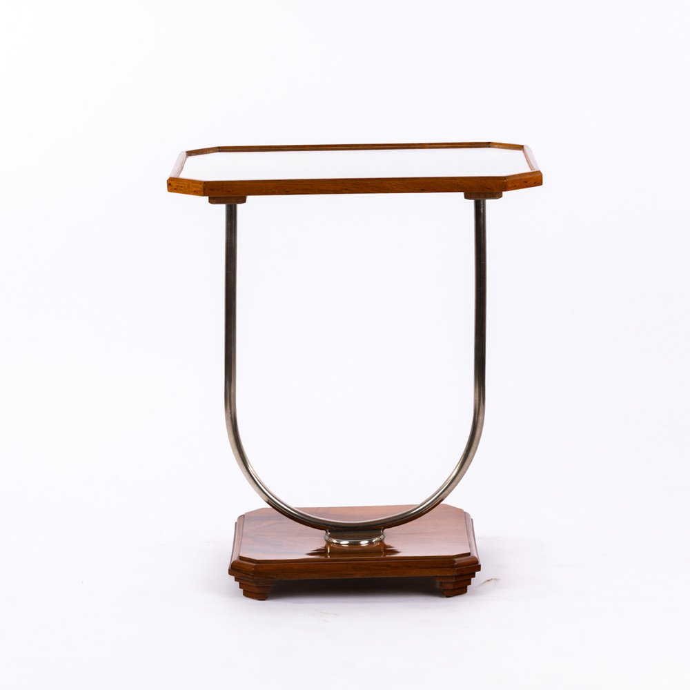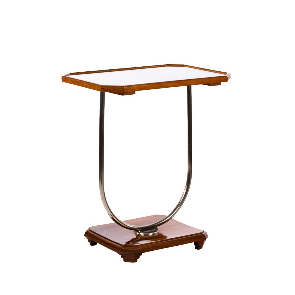Mesa auxiliar Bauhaus de acero tubular con espejo, años 30