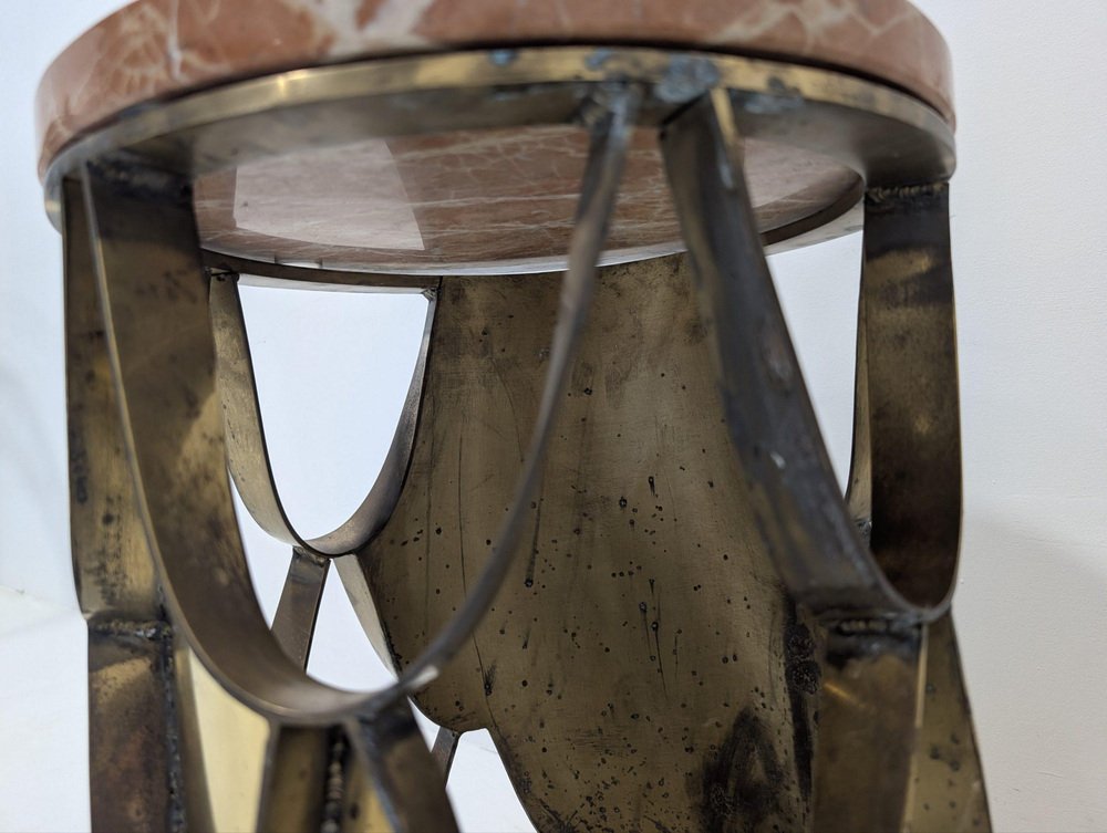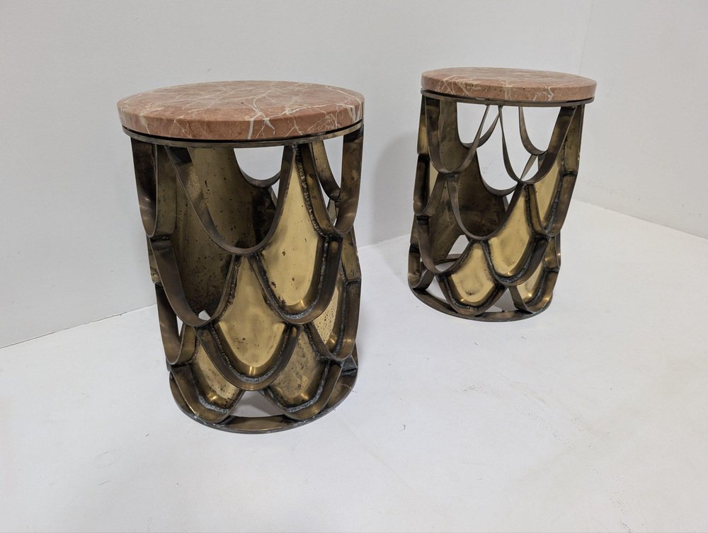 BRABBU is a design brand that reflects an intense way of living, bringing fierceness, strength and power into an urban lifestyle. We design and produce a diverse range of furniture, casegoods, upholstery, lighting, rugs, art and accessories that tells stories from nature and the world. All these stories are written by the materials, textures, scents, flavours and colours that live inside nature and inside urban life. with BRABBU you will get more than a design piece, you will get a diversity of spaces fulfilled with memories and unique sensations in perfect harmony with your spaces and your personality. BRABBU design pieces are a gift for the senses. Everyday our tribe of designers and craftsmen search for the most innovative materials and techniques to bring the comfort and function that your spaces deserve. The KOI carp is a recurring symbol of Japanese culture, highly appreciated for its decorative purposes, not only in water gardens but also in Irezumi practice or, most commonly, in tattoos. Its natural colour mutations reveal their capacity to adapt, just like the set of KOI tables with table tops in glass or marble that you can choose to better fit in your ambiences. Product specification: Condition- Very Good Brand – Brabbu Designer – Brabbu Model – Koi Colour – Multi Material – Brass/Marble Measurements – 34cm Diameter X 47.5cm H