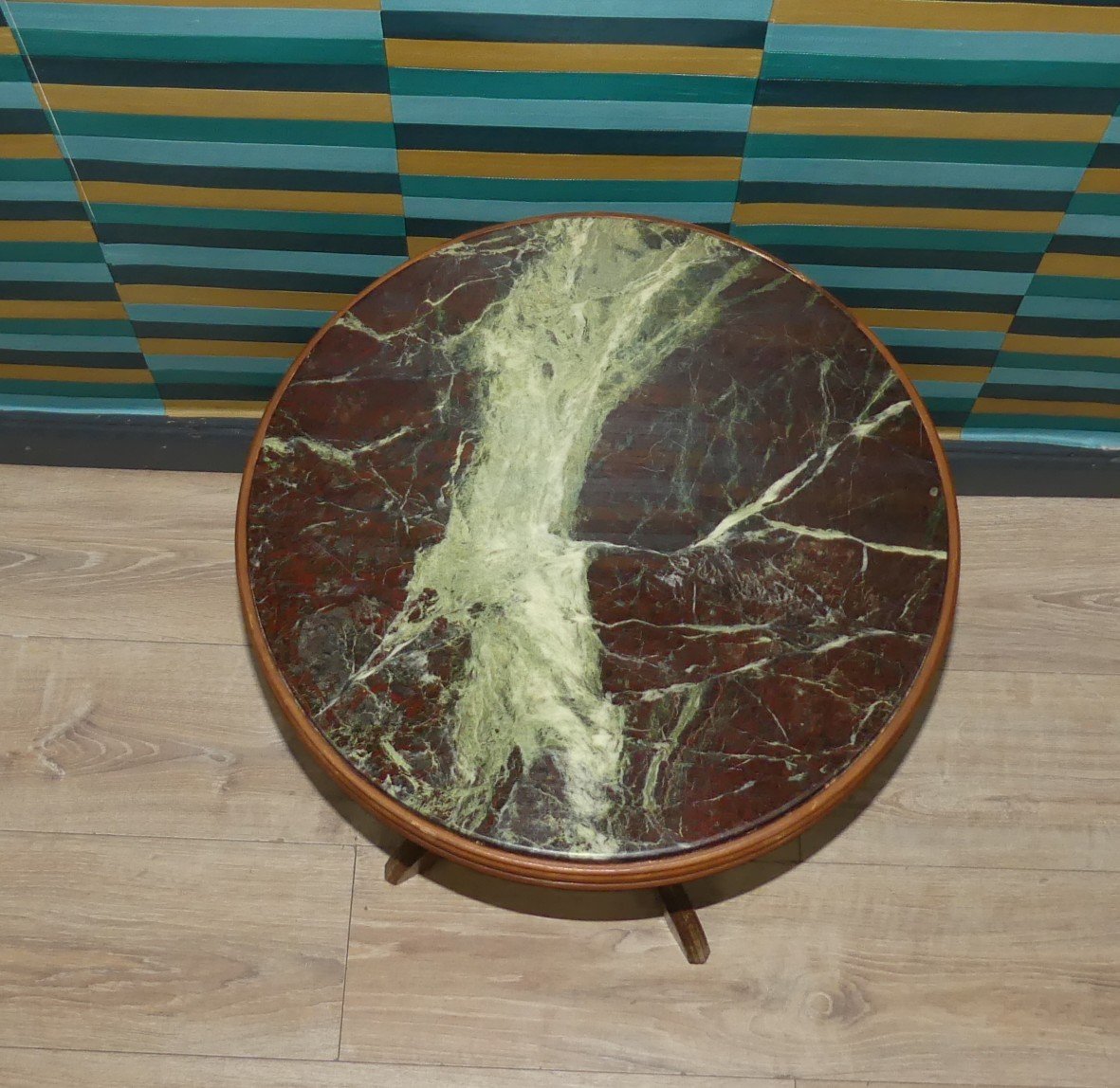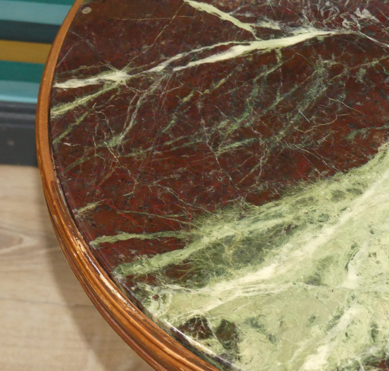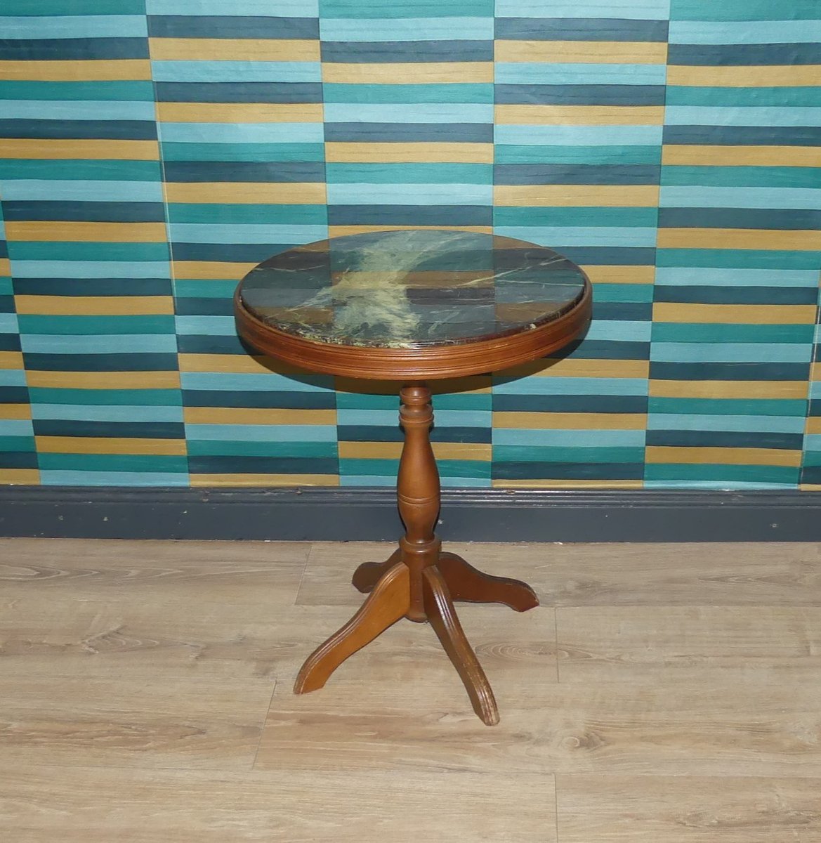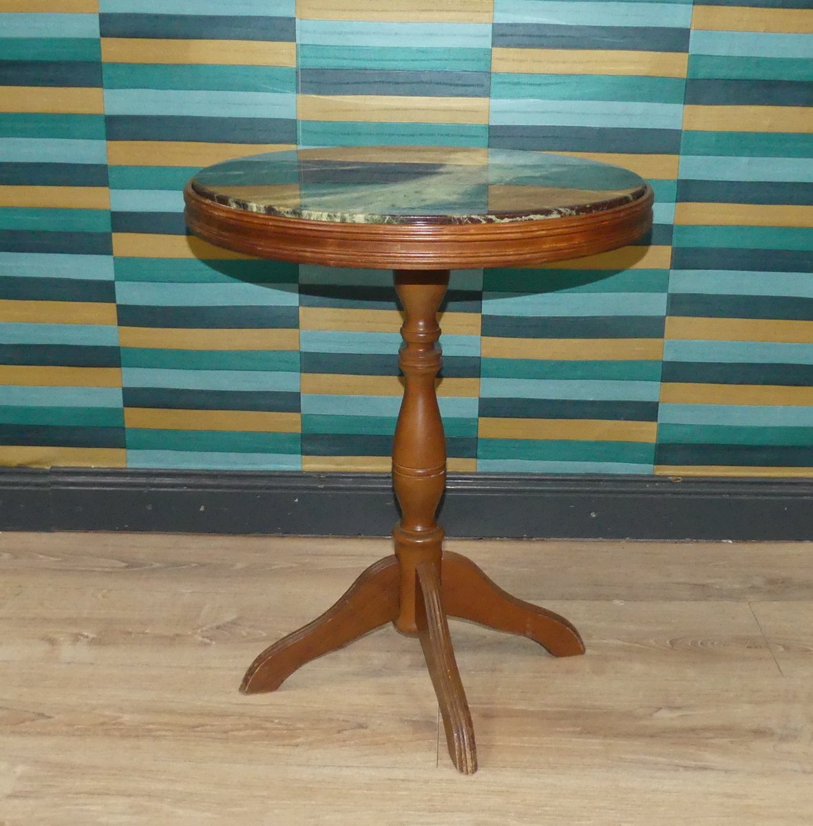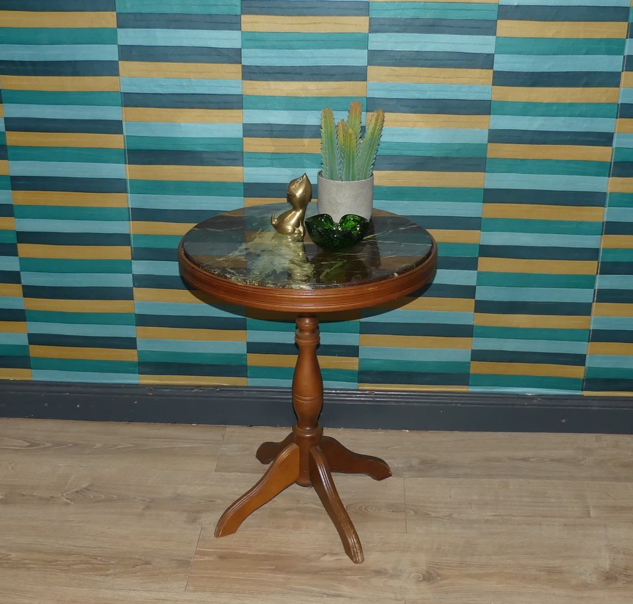 Mesa auxiliar Chippendale vintage redonda con tablero de mármol, años 70
