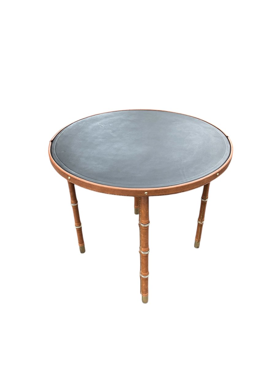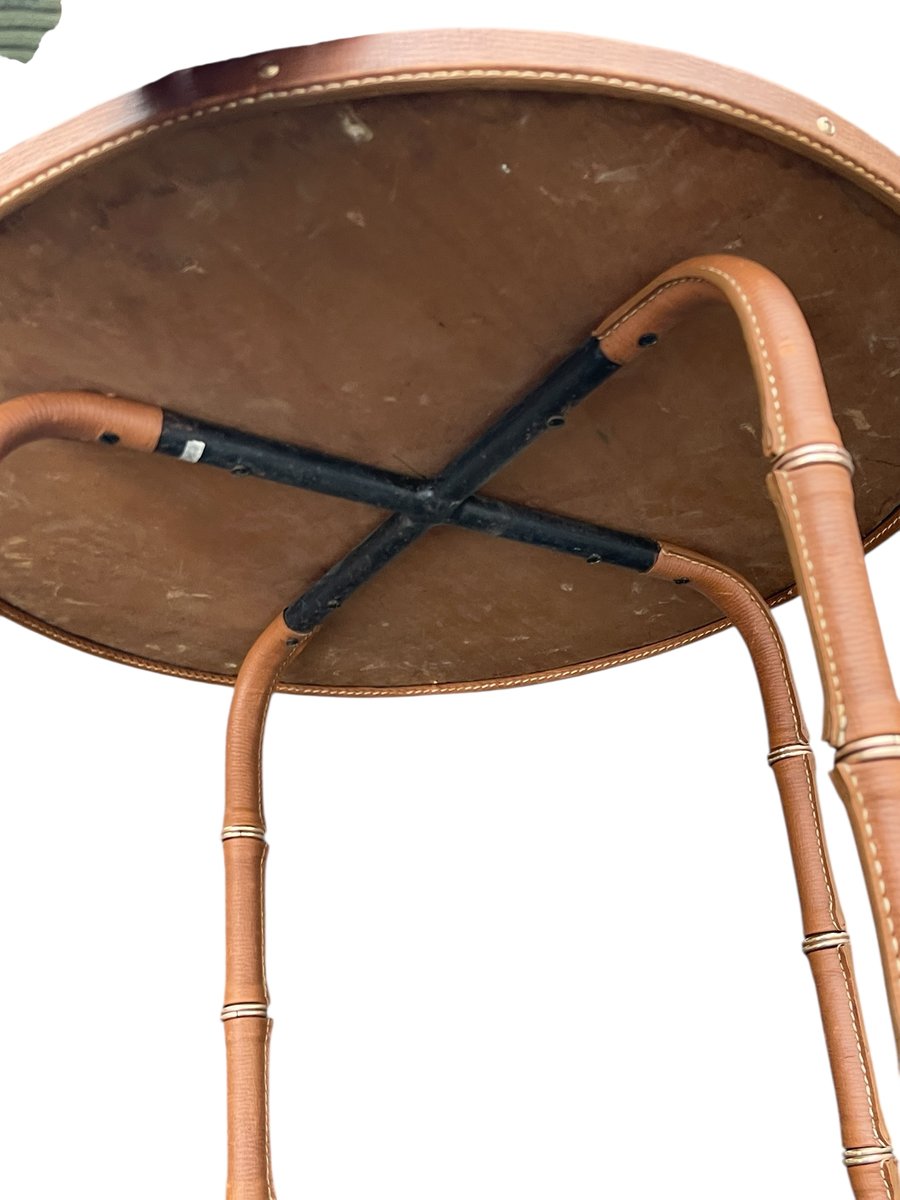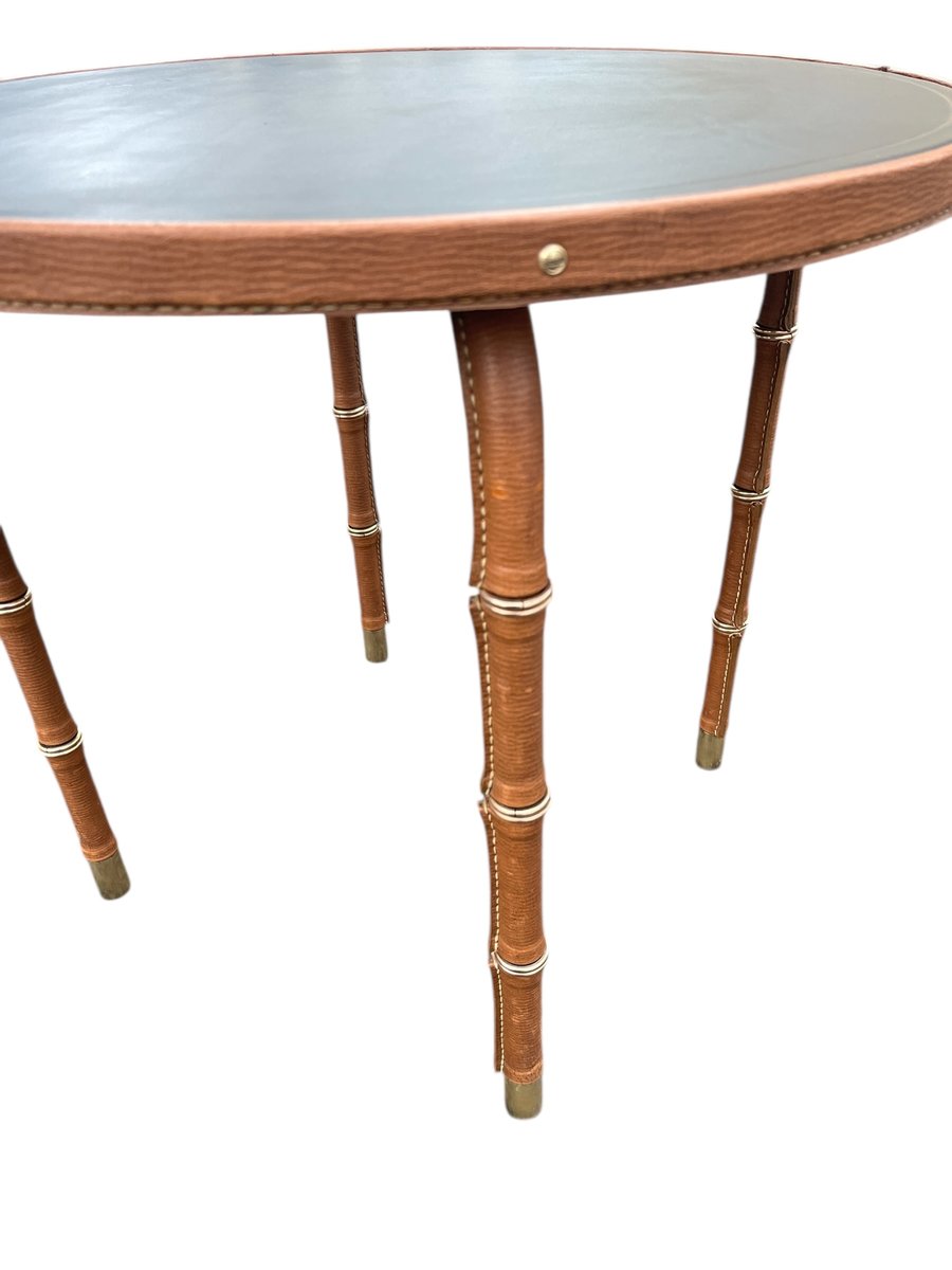 Mesa auxiliar de cuero cosido de Jacques Adnet, años 50