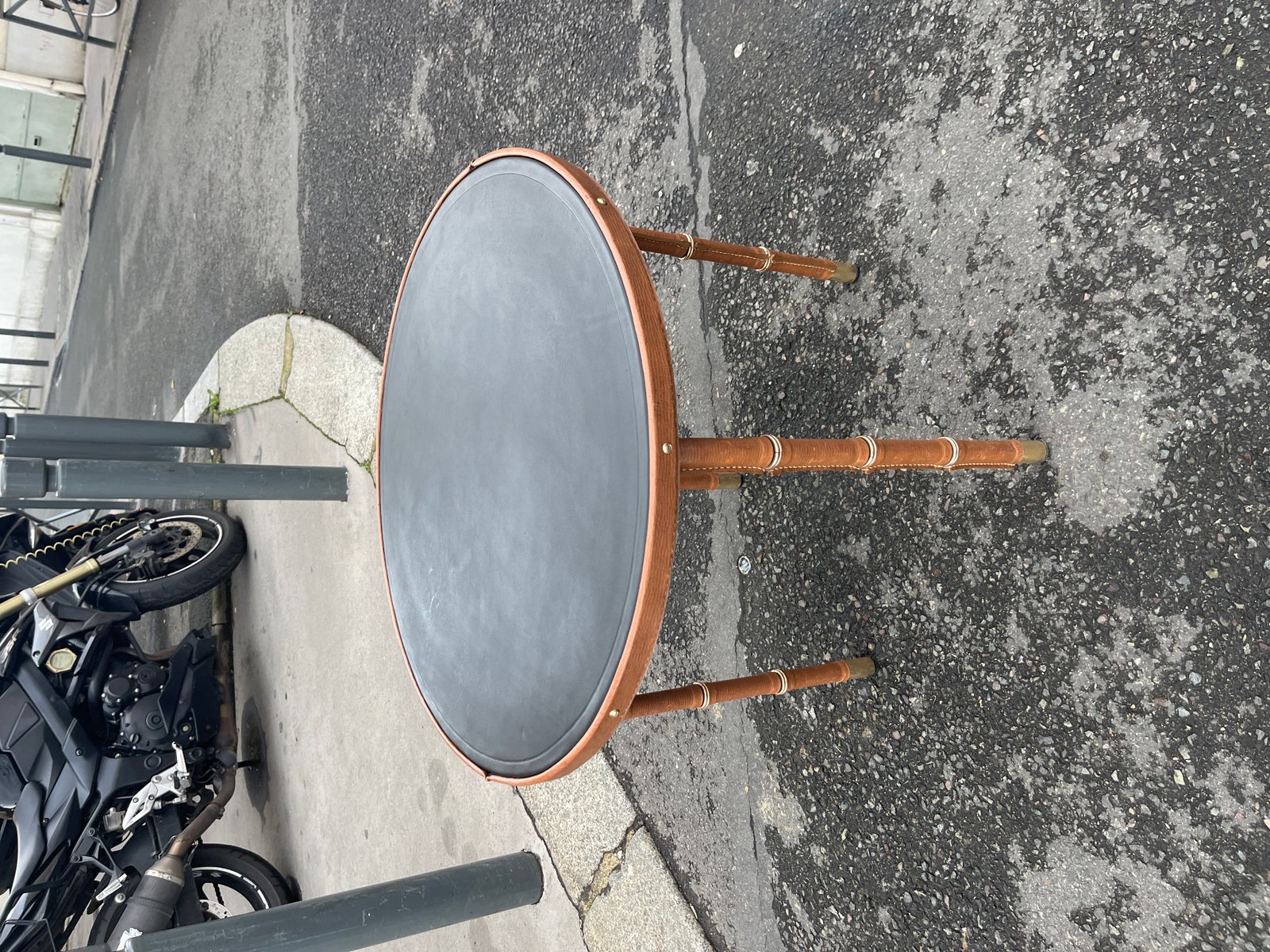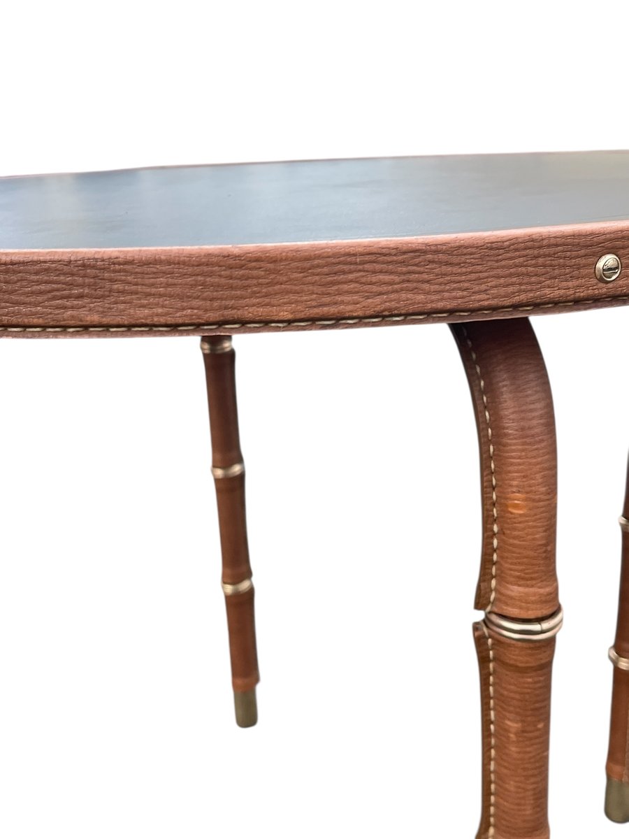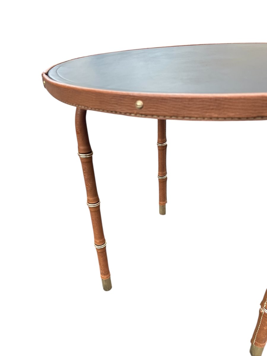 Mesa auxiliar de cuero cosido de Jacques Adnet, años 50