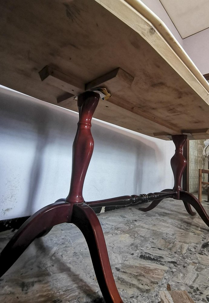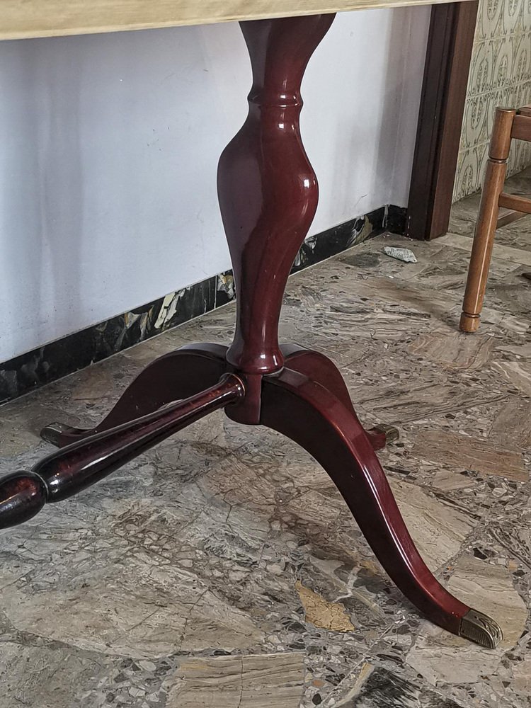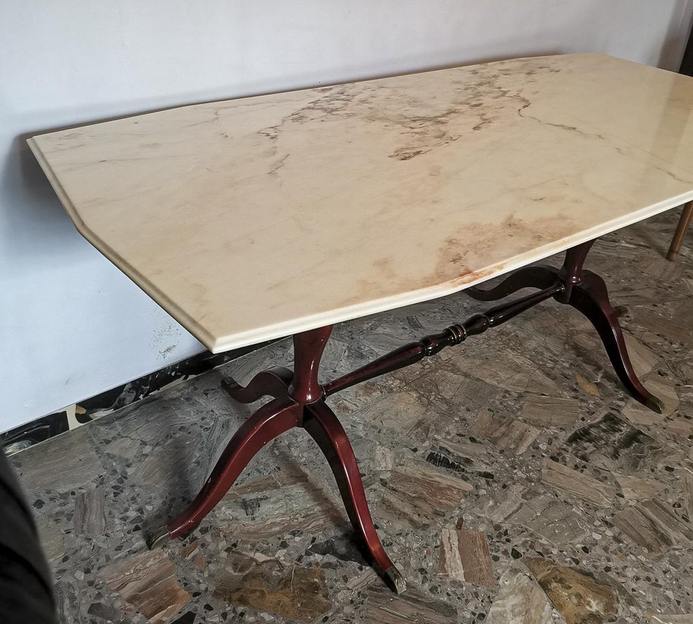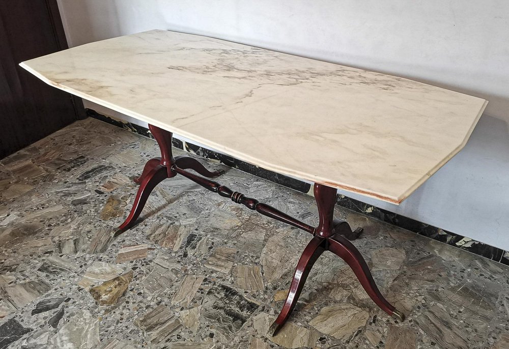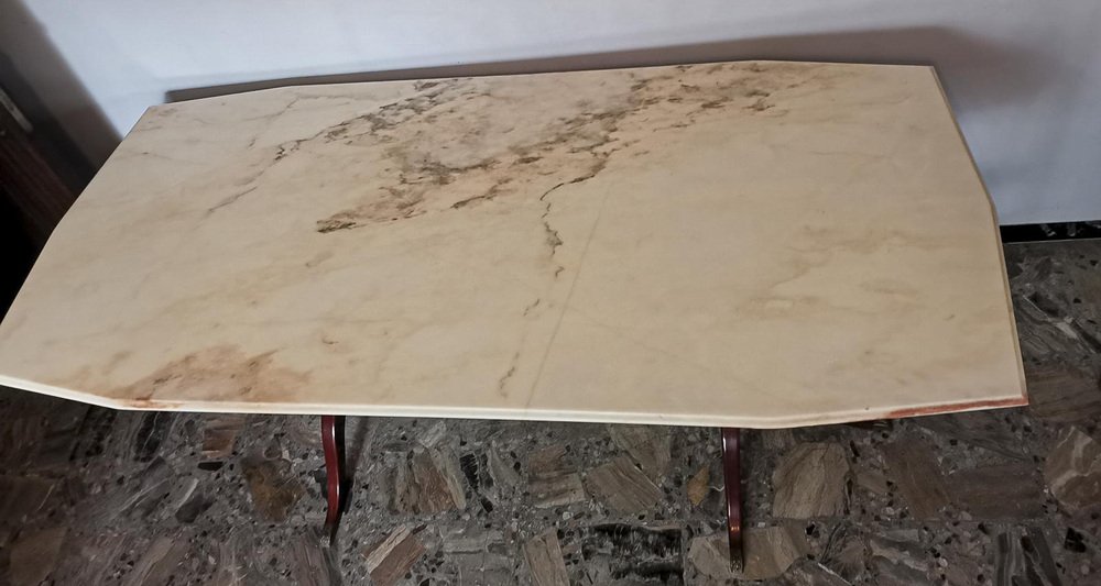 Mesa auxiliar de latón, mármol y madera, años 60