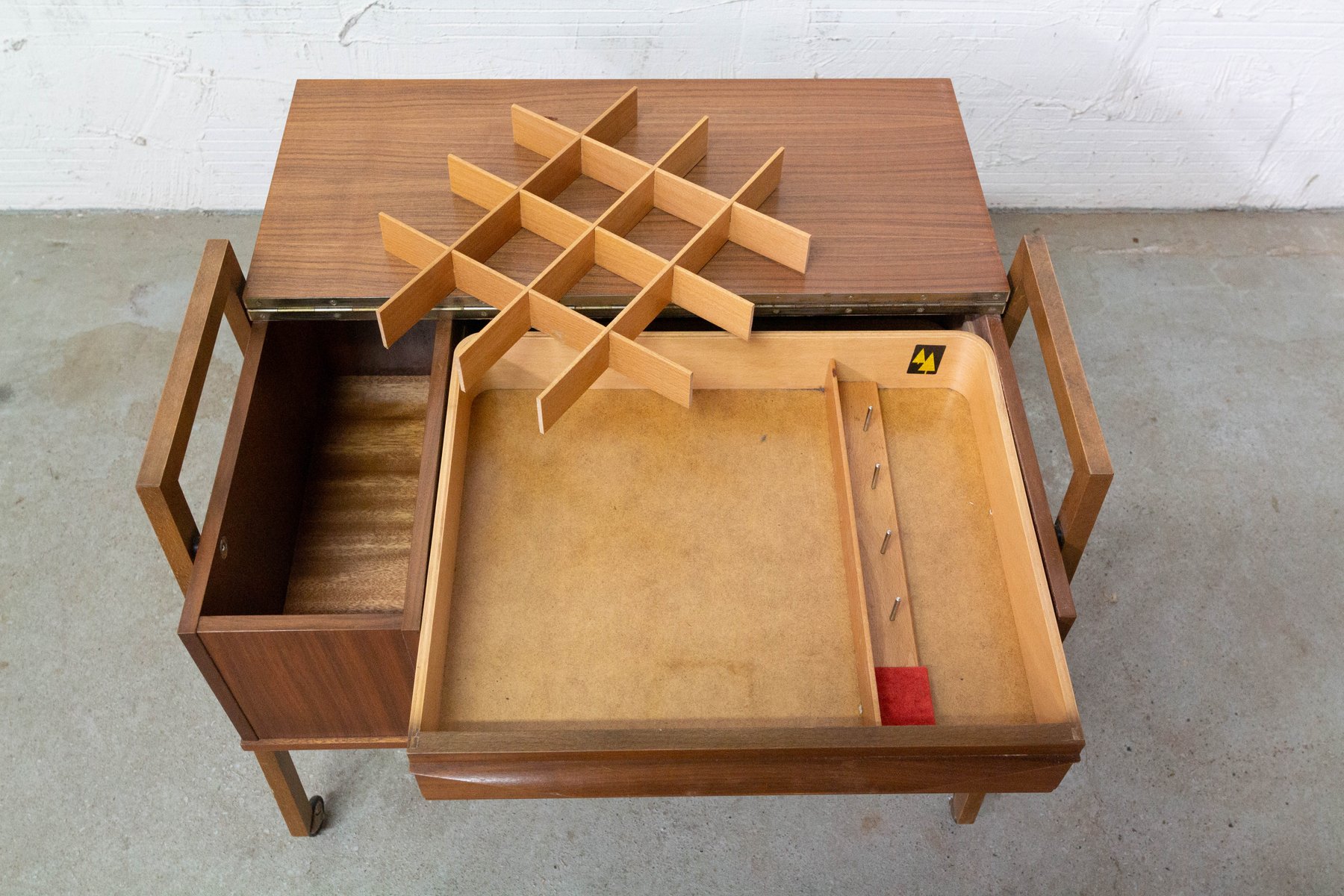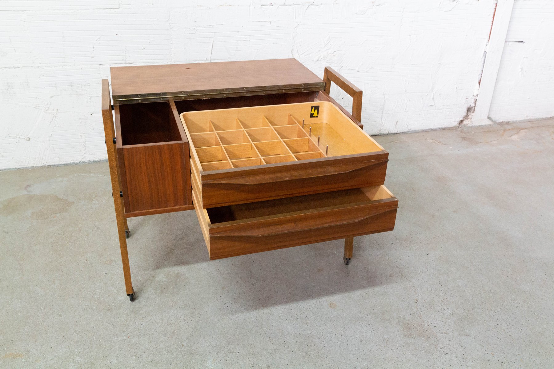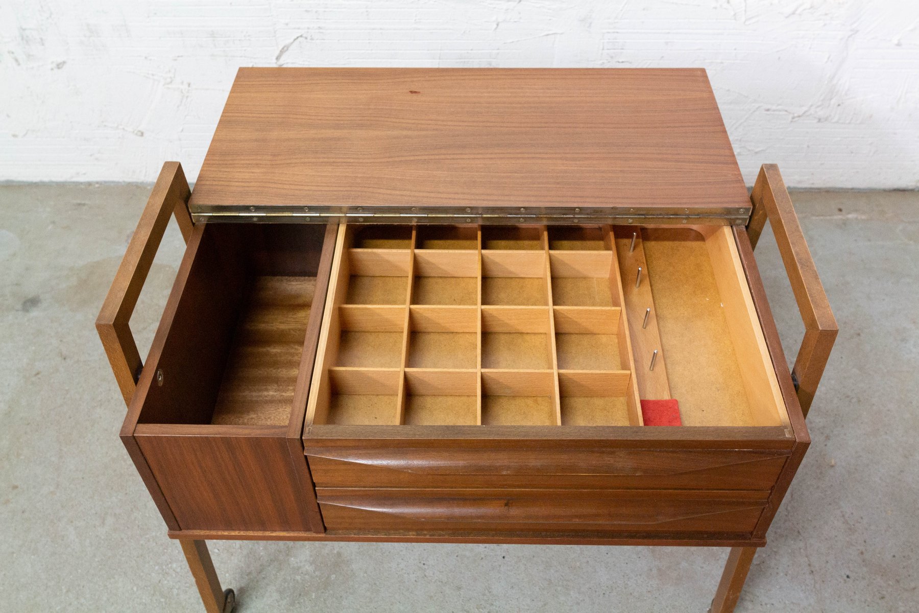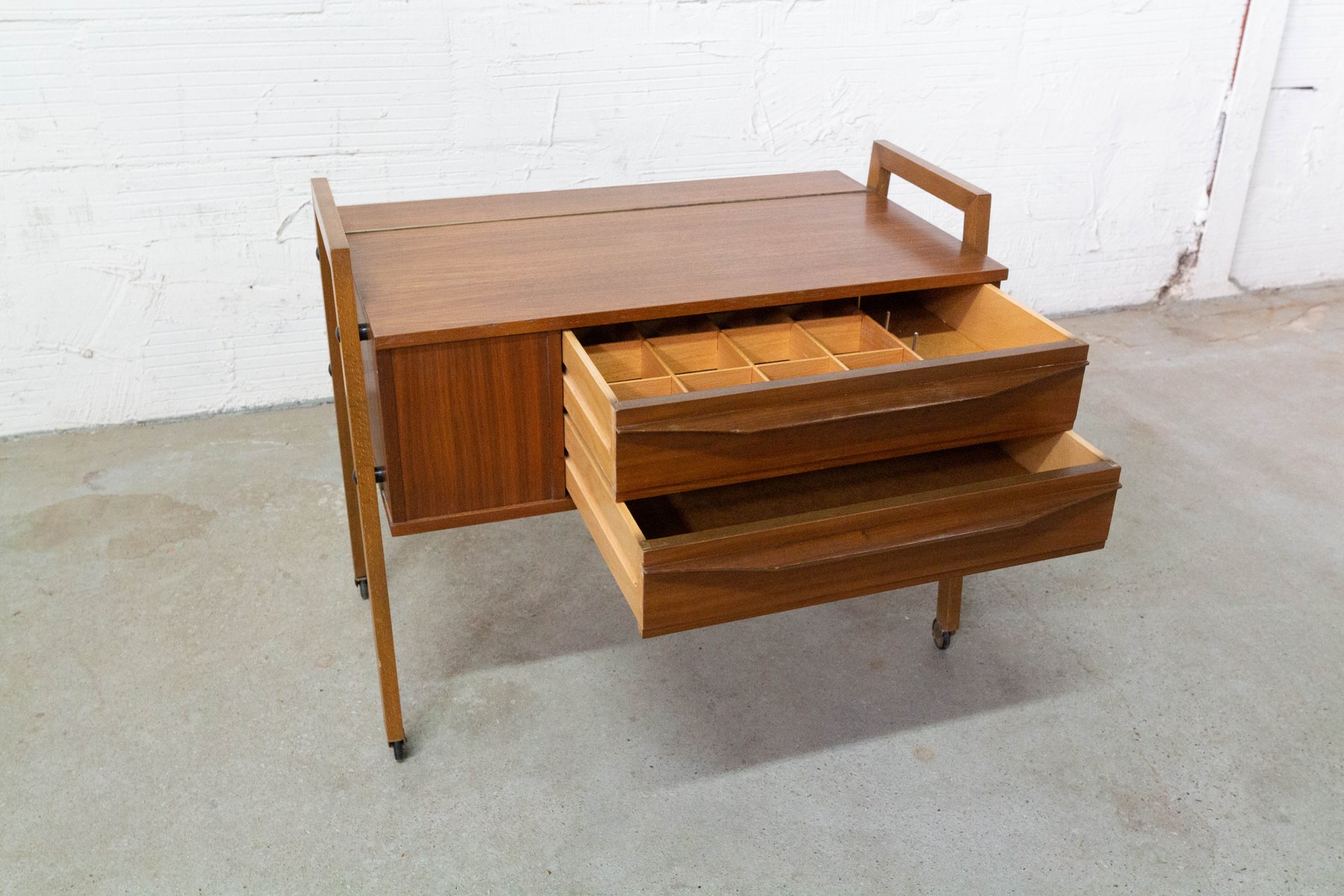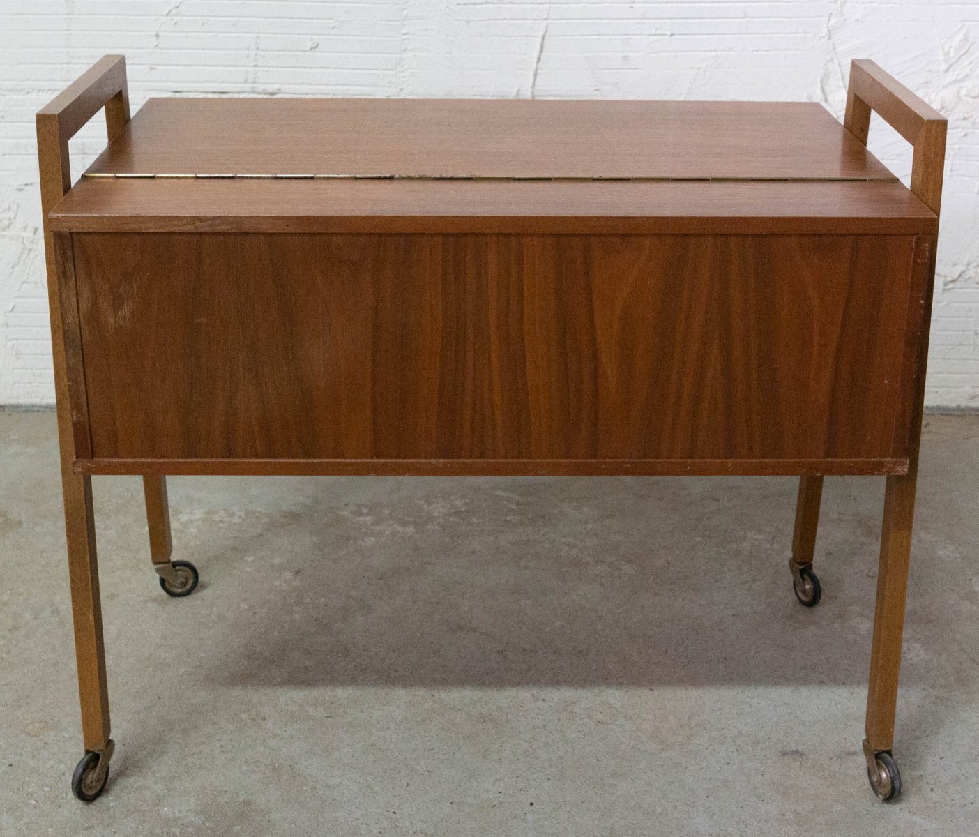 Mesa auxiliar escandinava Mid-Century de teca con ruedas