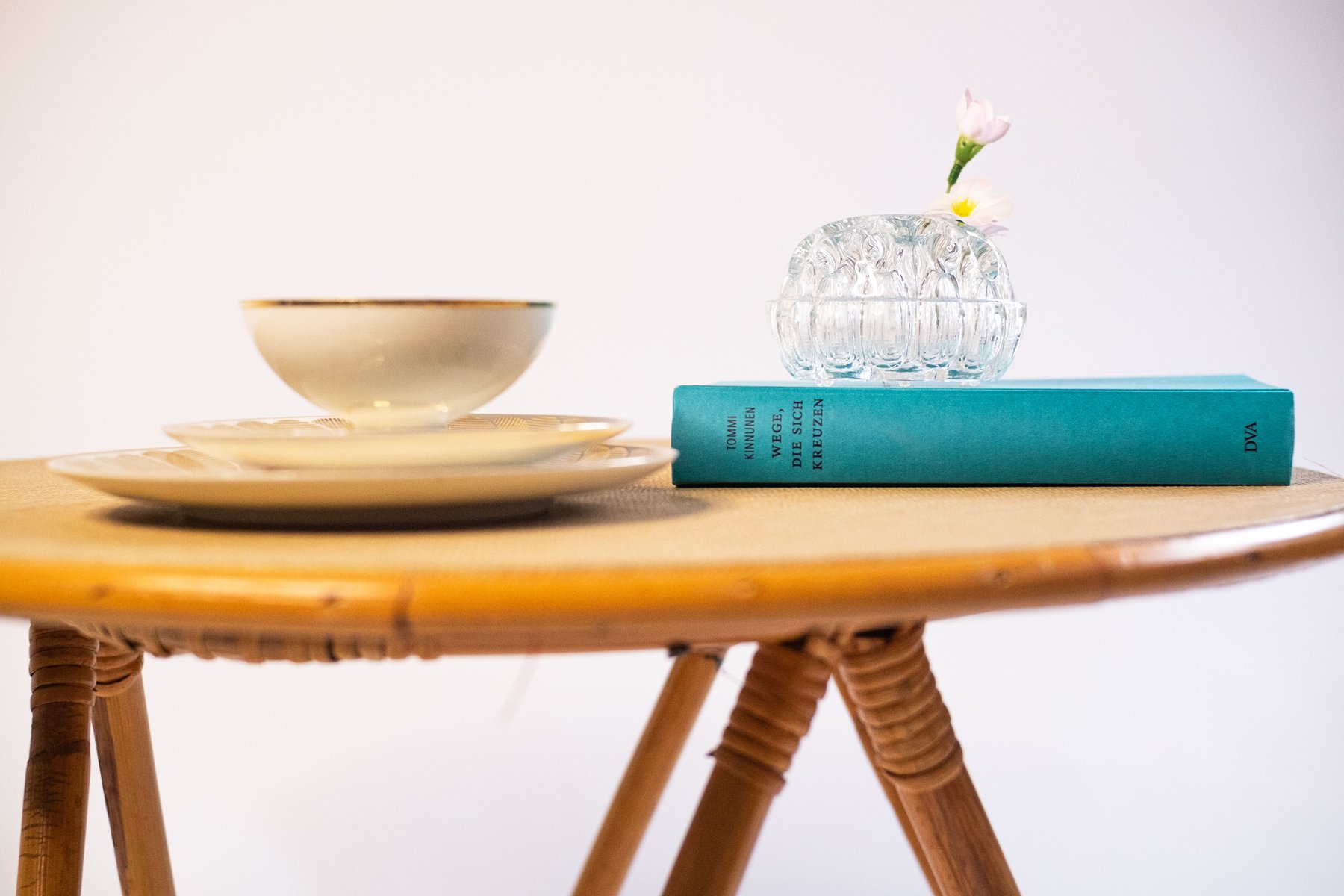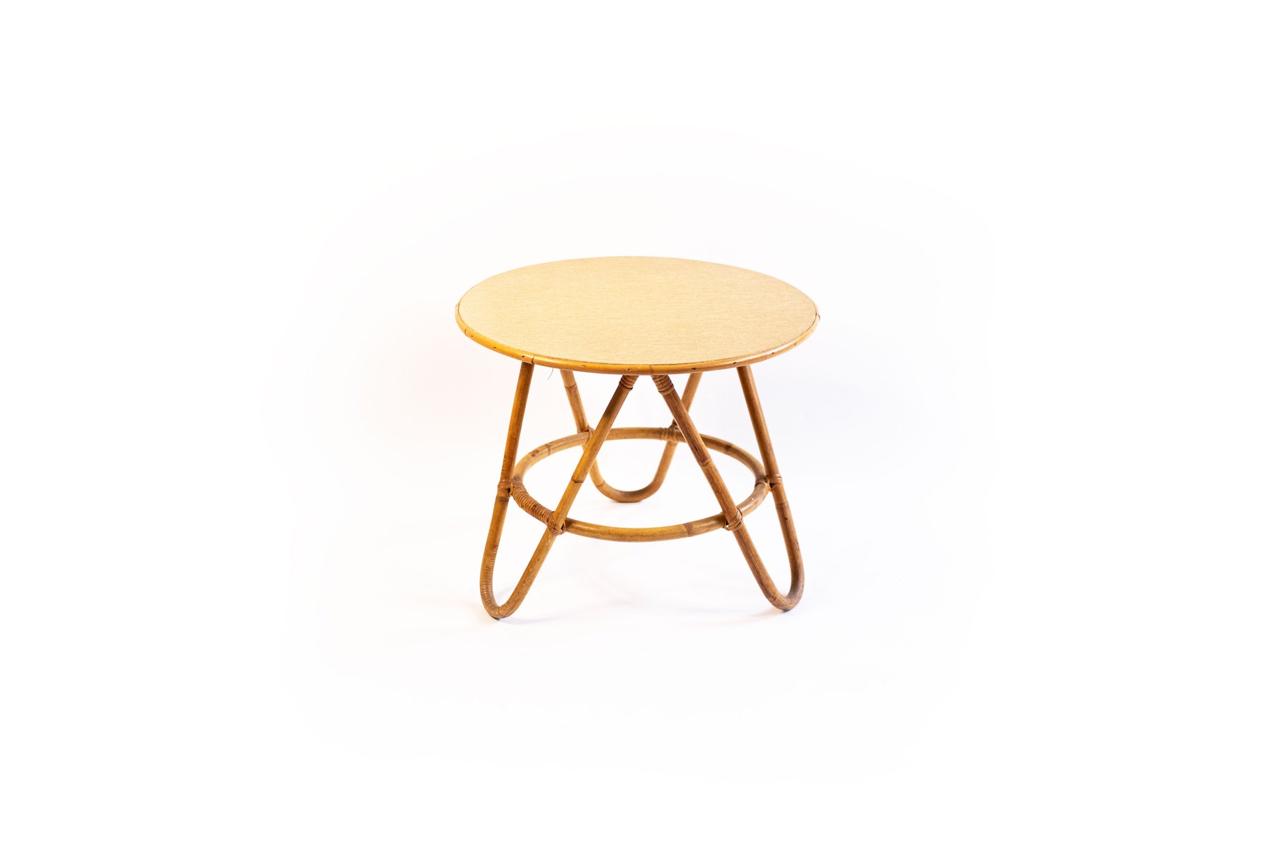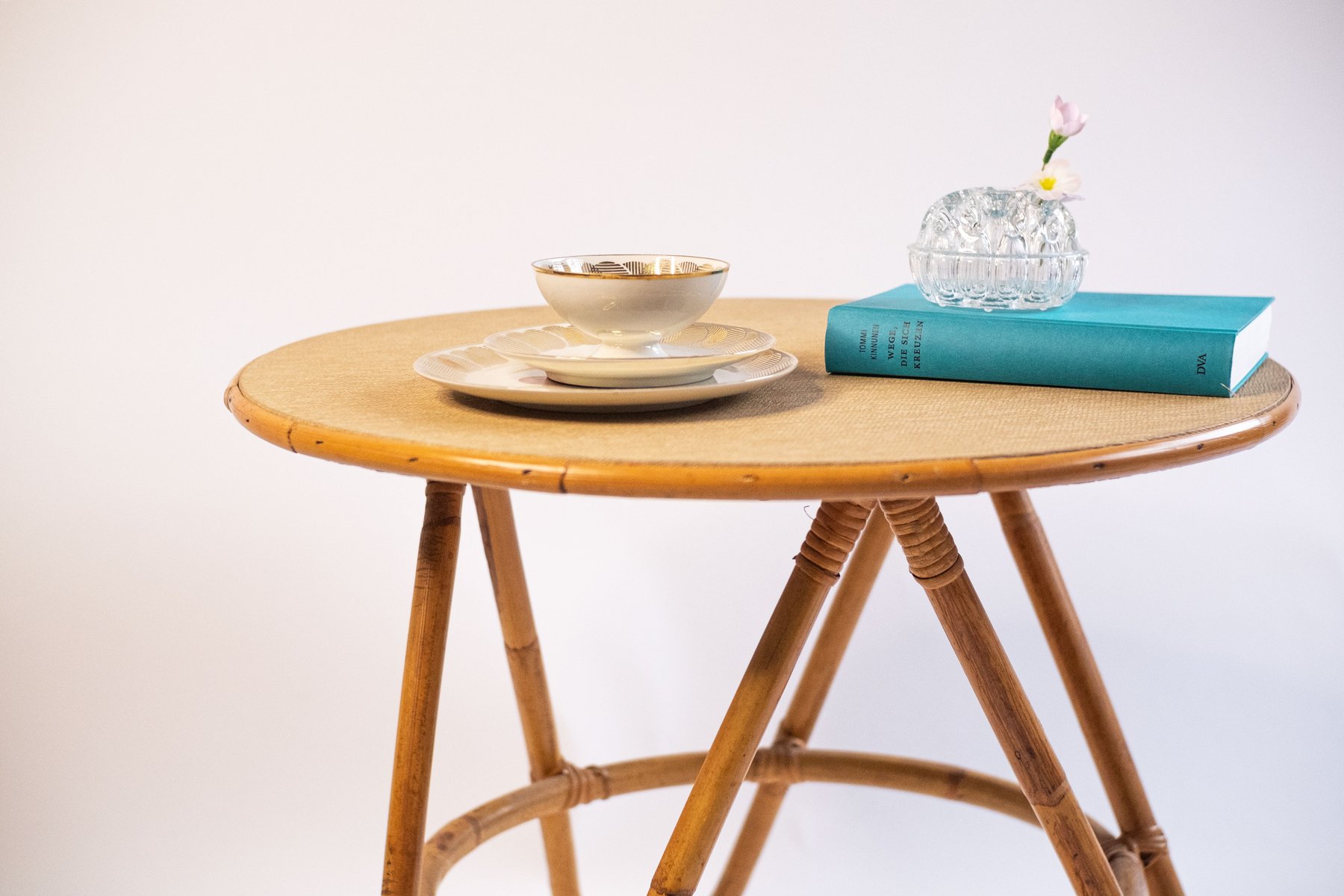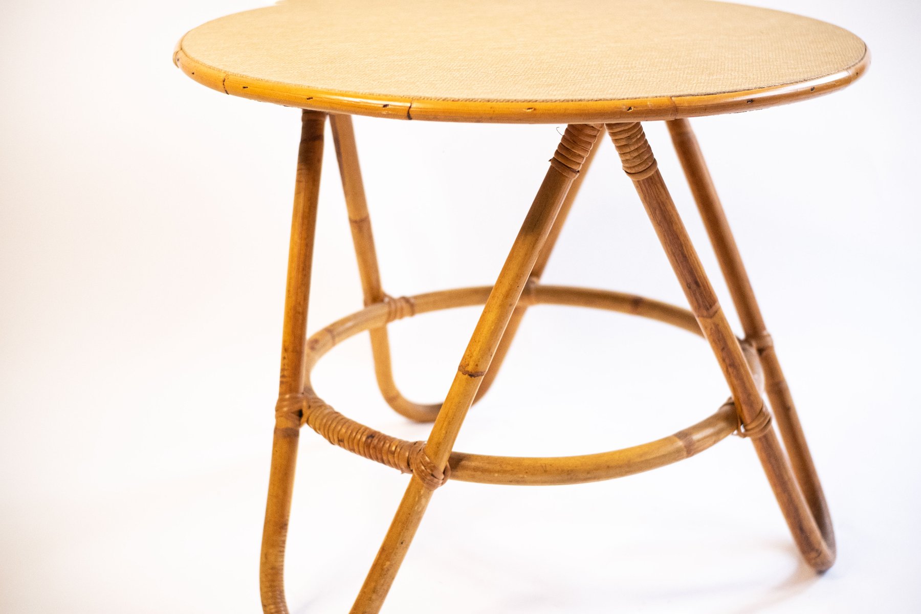 Mesa auxiliar vintage de bambú y ratán