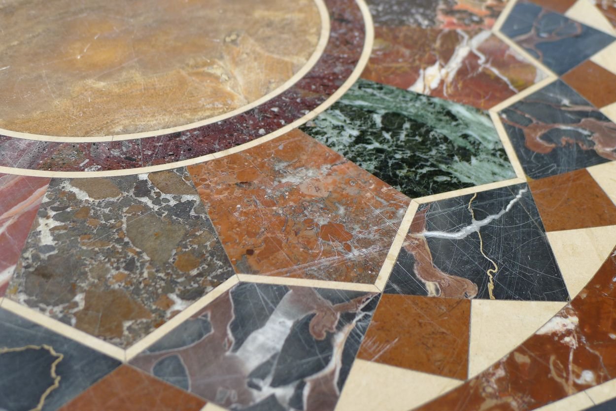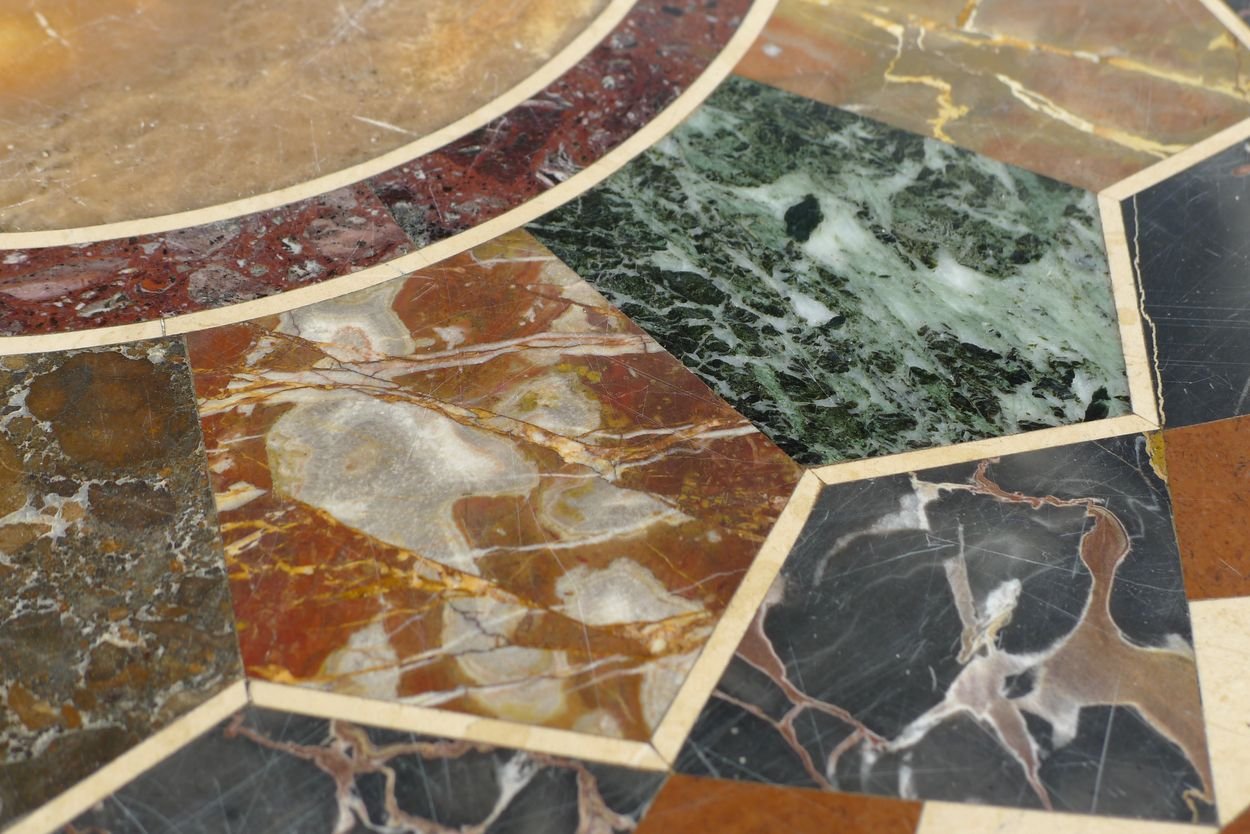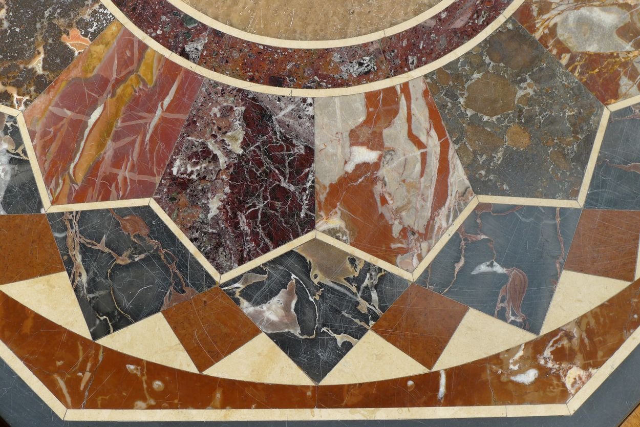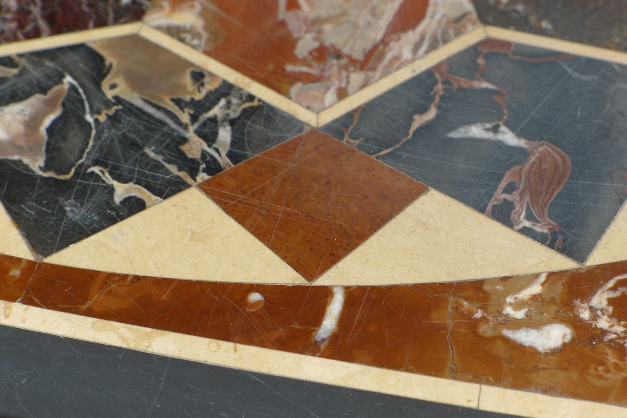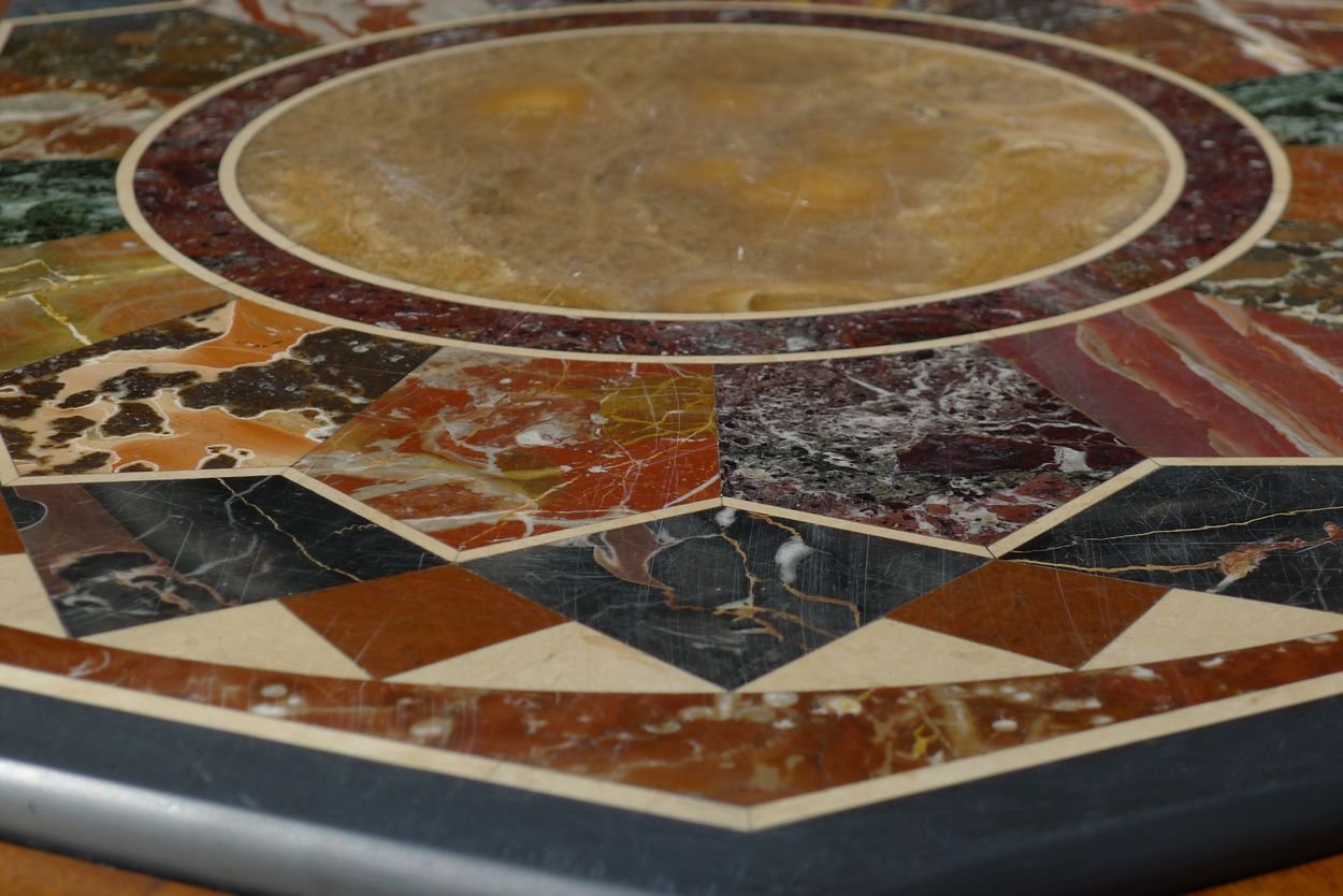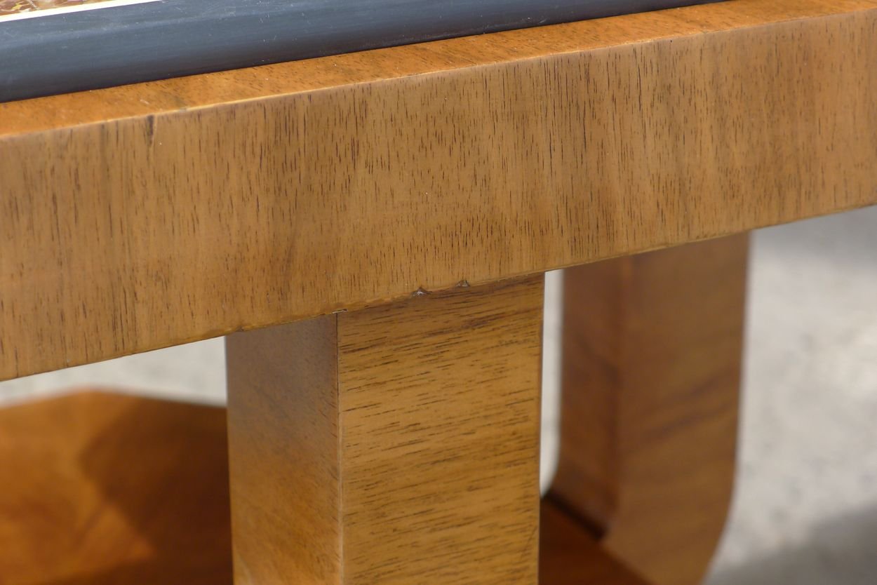 Mesa de centro Art Déco octogonal de nogal y mármol con incrustaciones geométricas, años 20