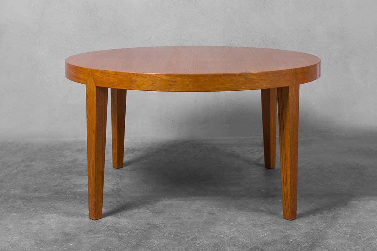 Mesa de centro danesa redonda de teca de Severin Hansen para Haslev Møbelsnedkeri, años 60