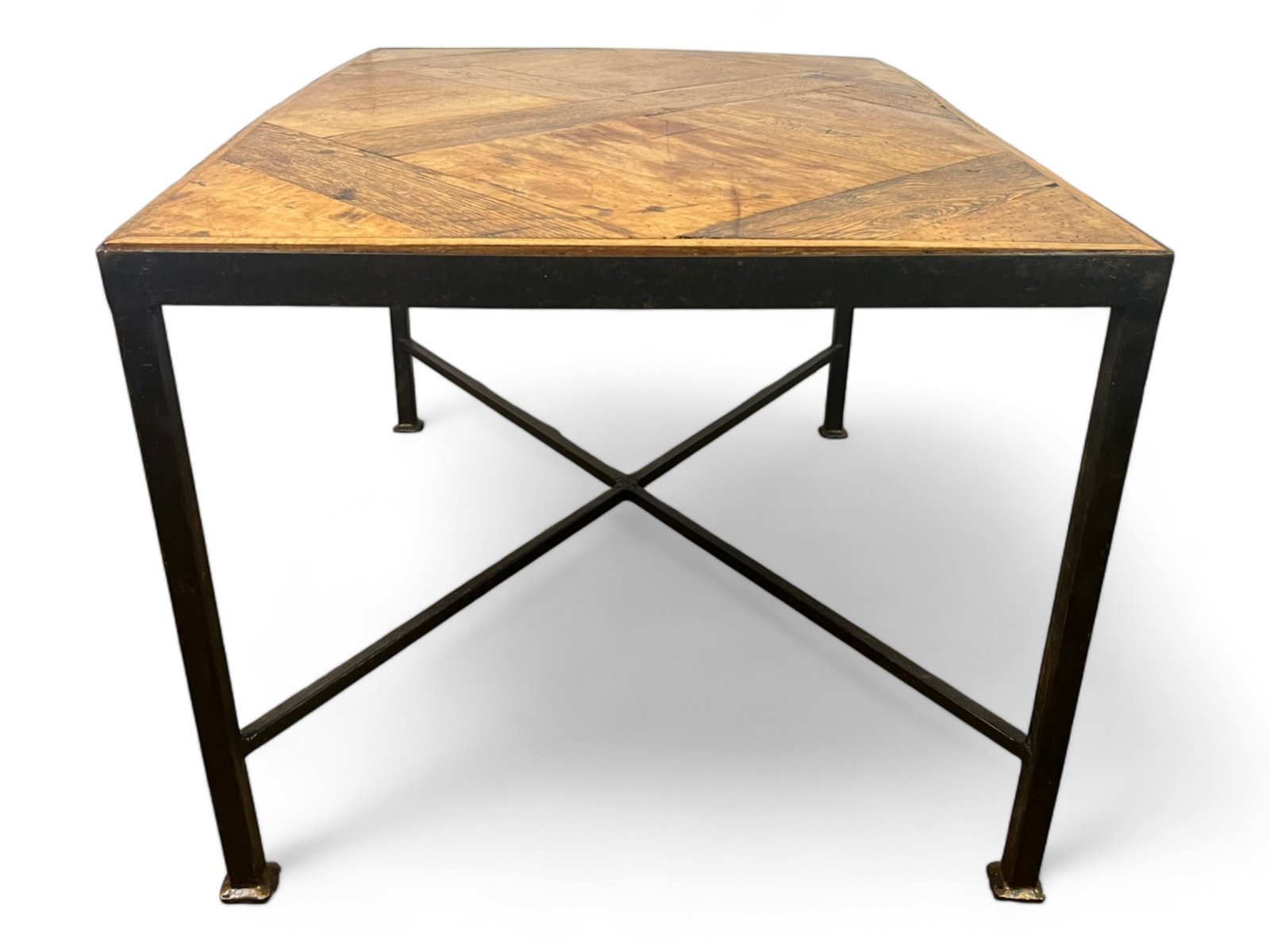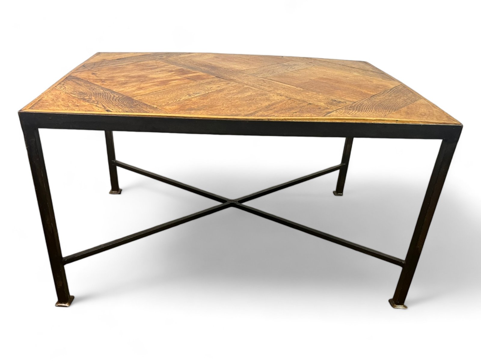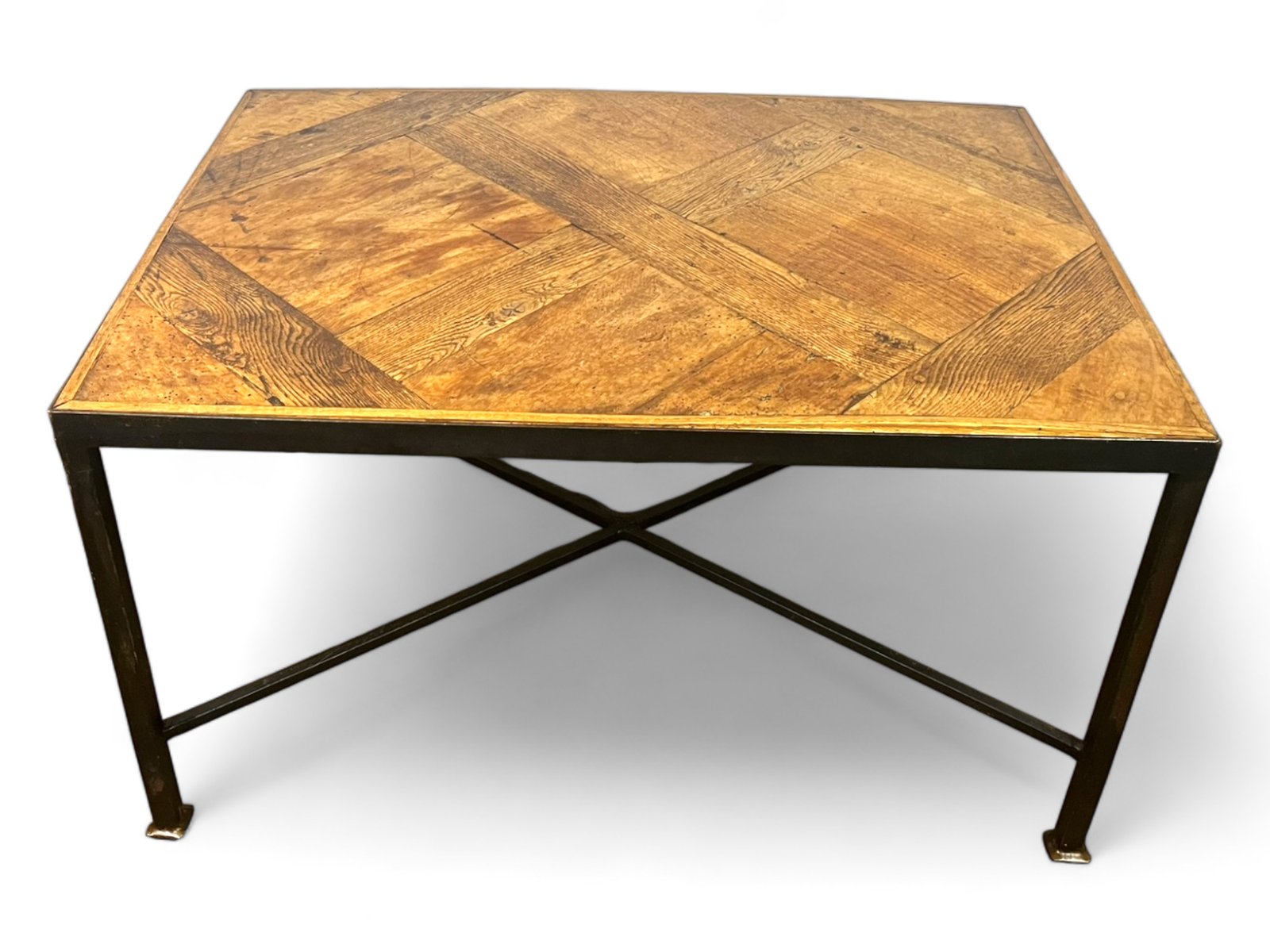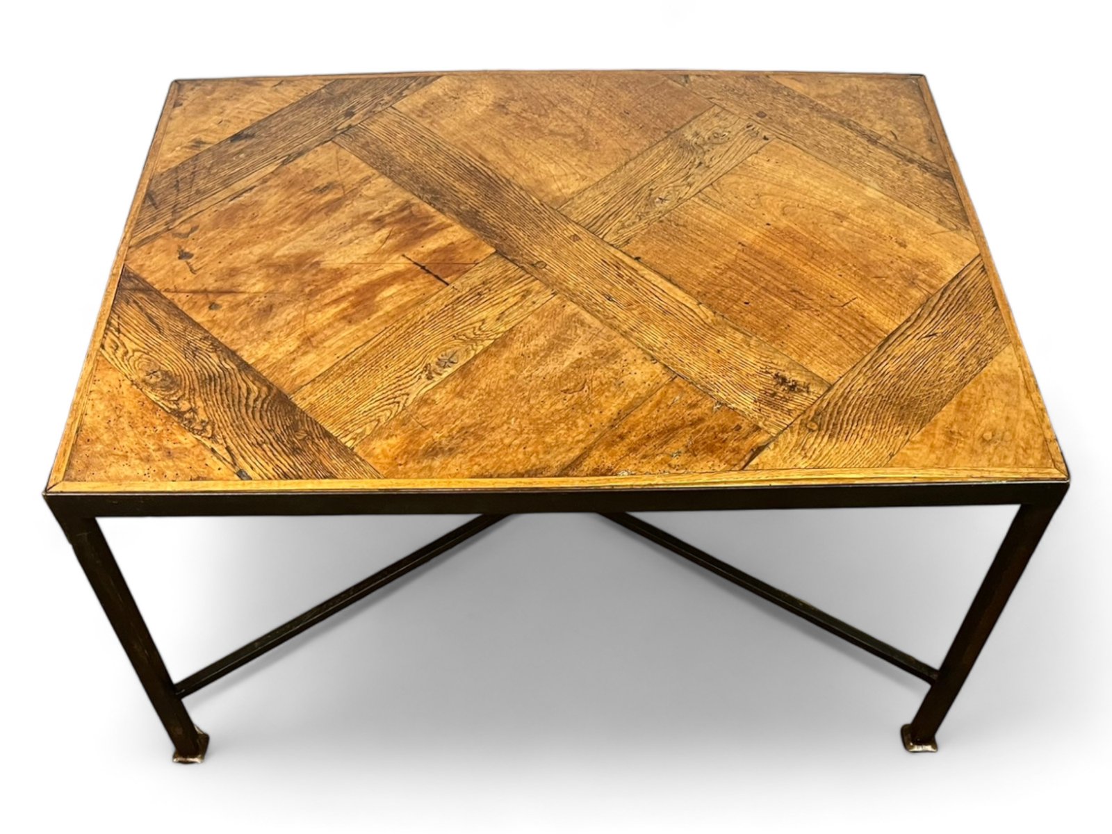 The parquet floor was mounted, in the 20th century, on a black metal wrought iron frame which brings a lot of modernity while leaving an important place and highlighting the elegance and antiquity of the Versailles parquet panel from the 17th century . The panel is made of oak.