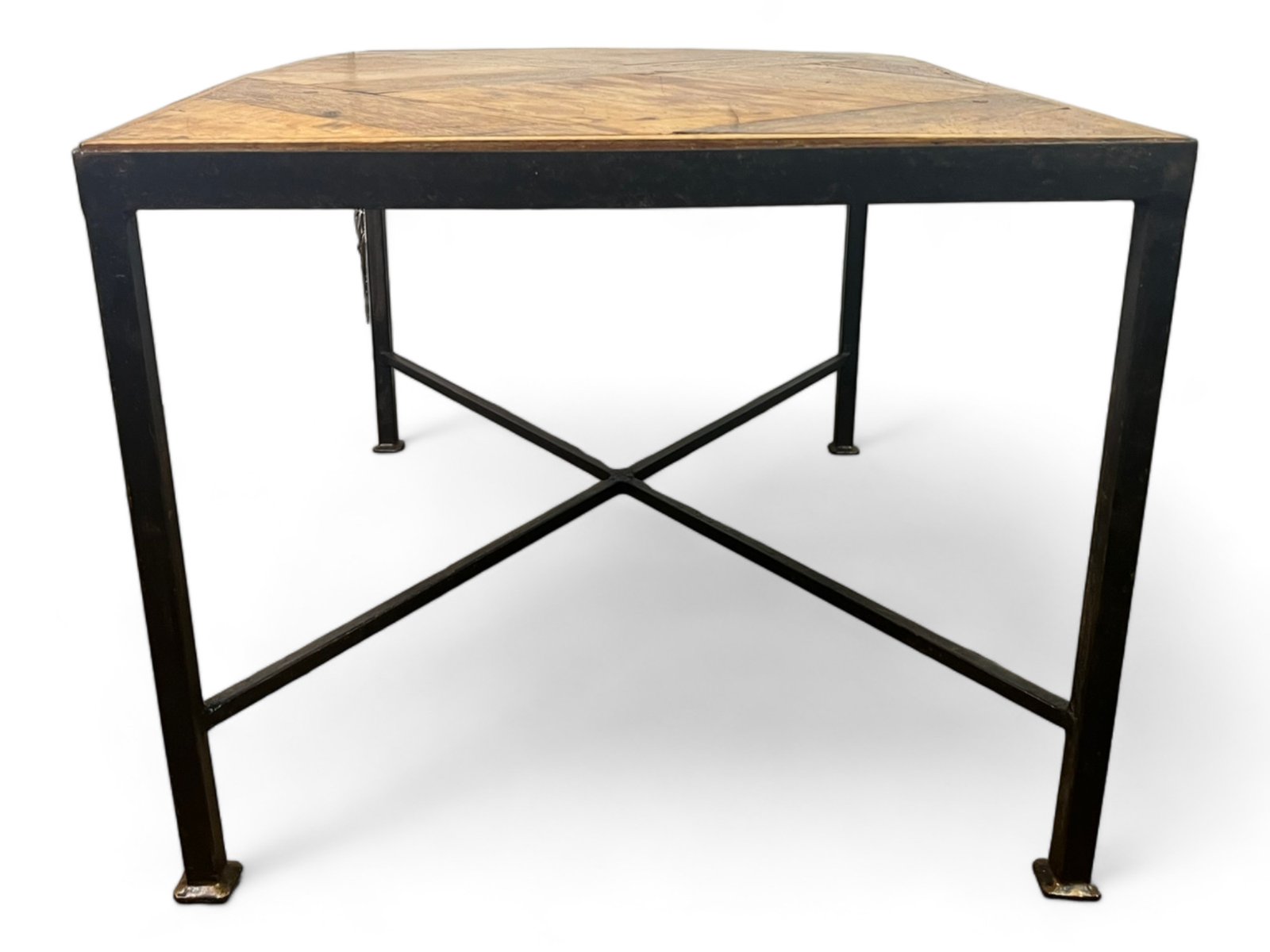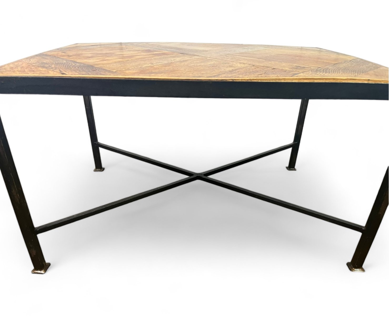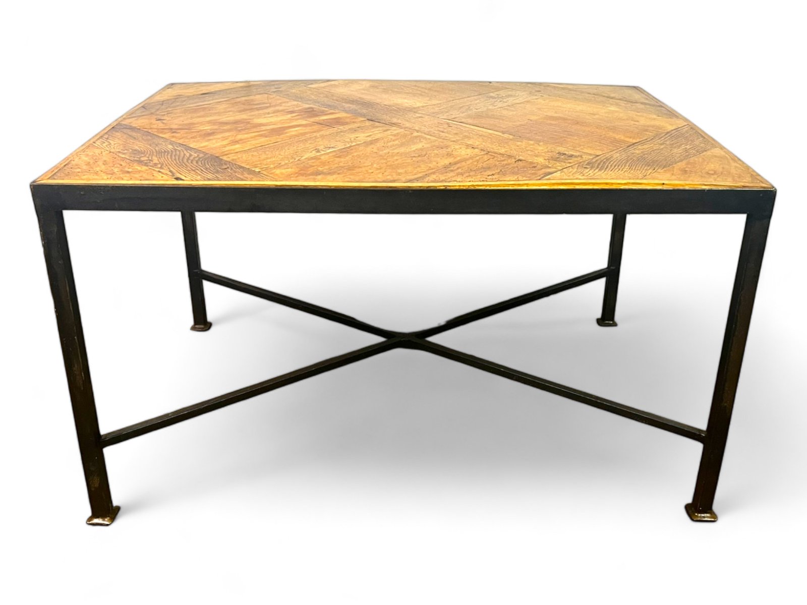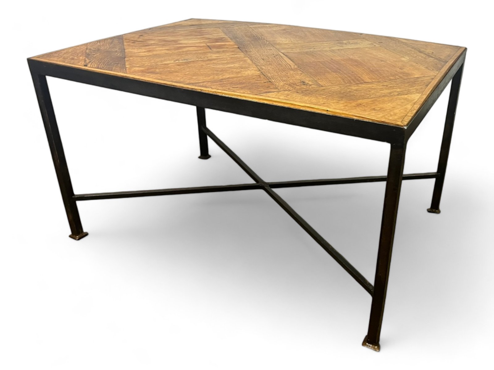 The parquet floor was mounted, in the 20th century, on a black metal wrought iron frame which brings a lot of modernity while leaving an important place and highlighting the elegance and antiquity of the Versailles parquet panel from the 17th century . The panel is made of oak.