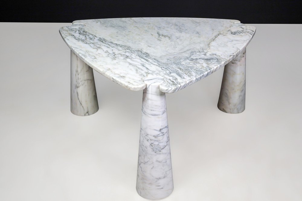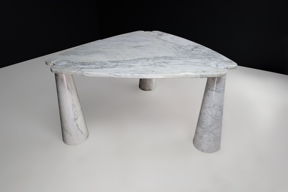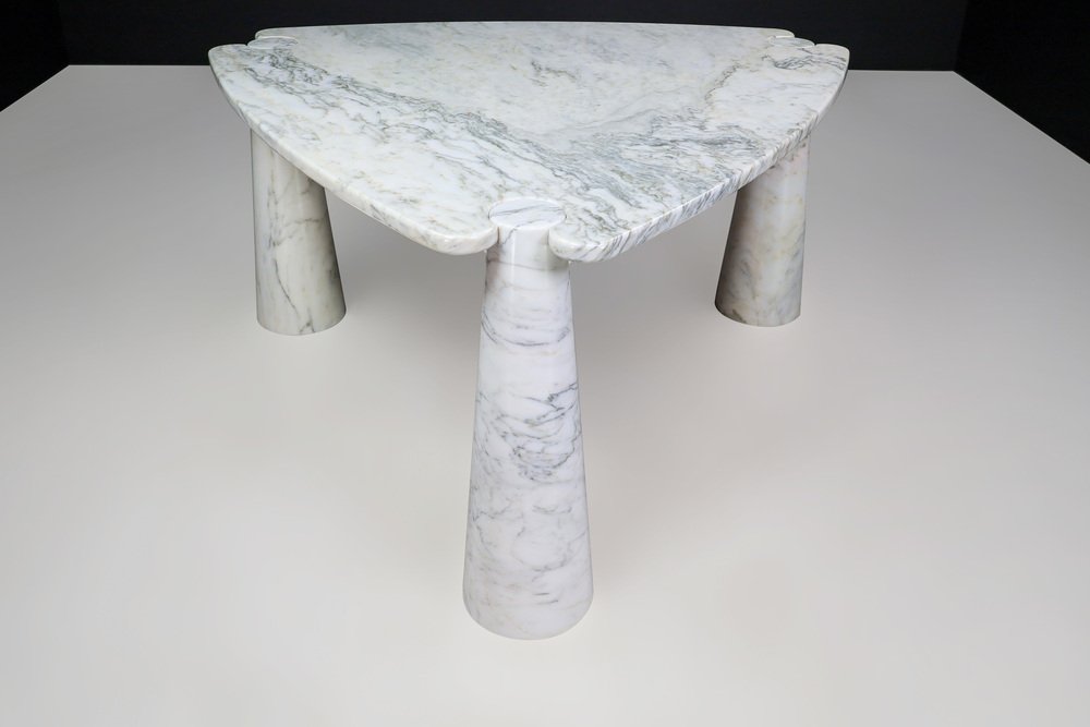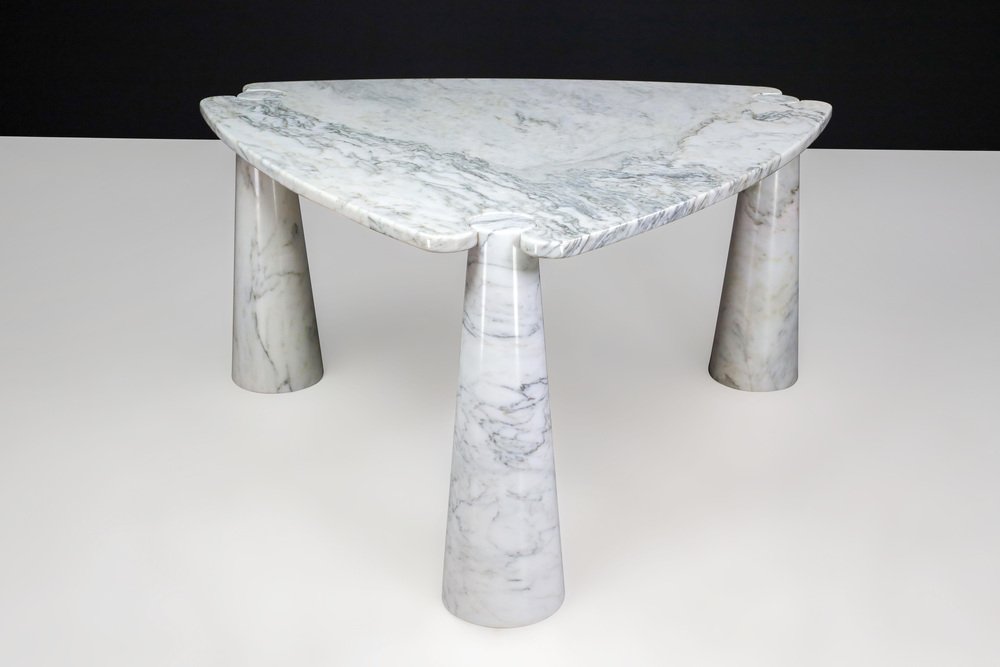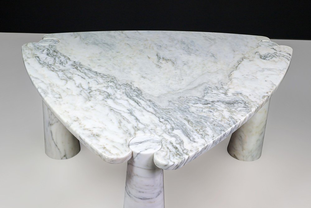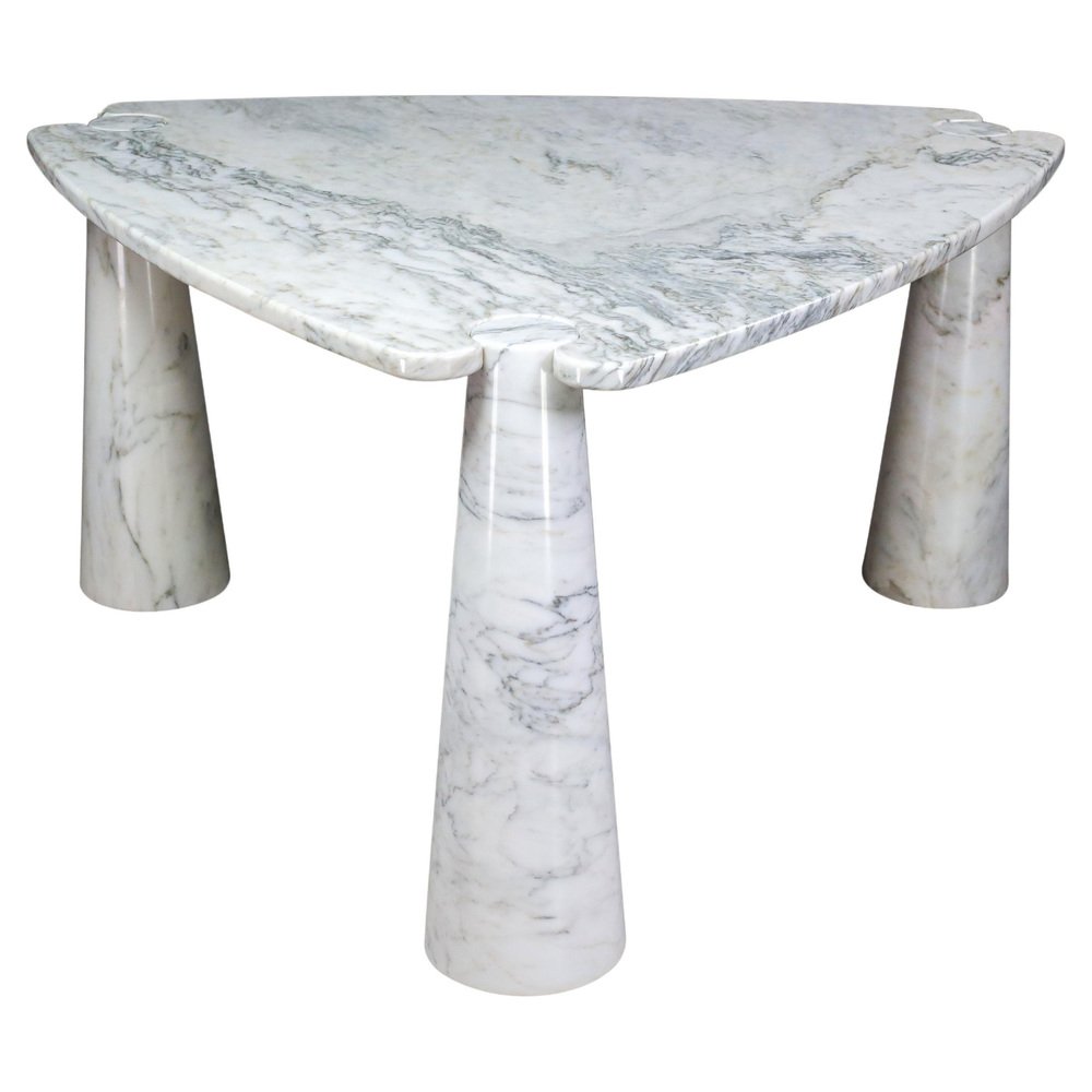 Mesa de centro Eros Triangle de mármol de Carrara blanco de Angelo Mangiarotti para Skipper, años 70