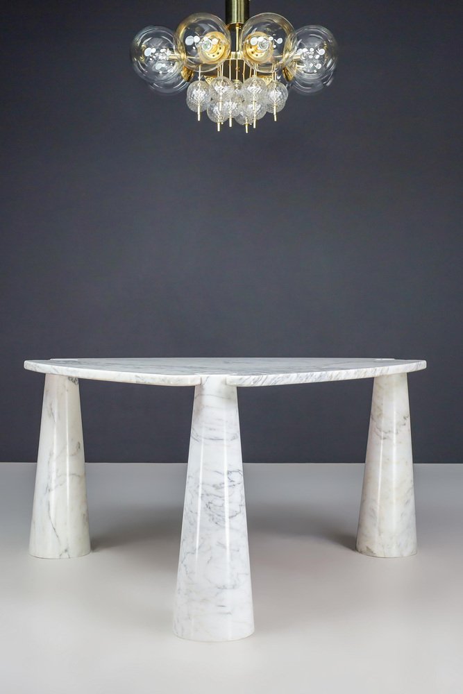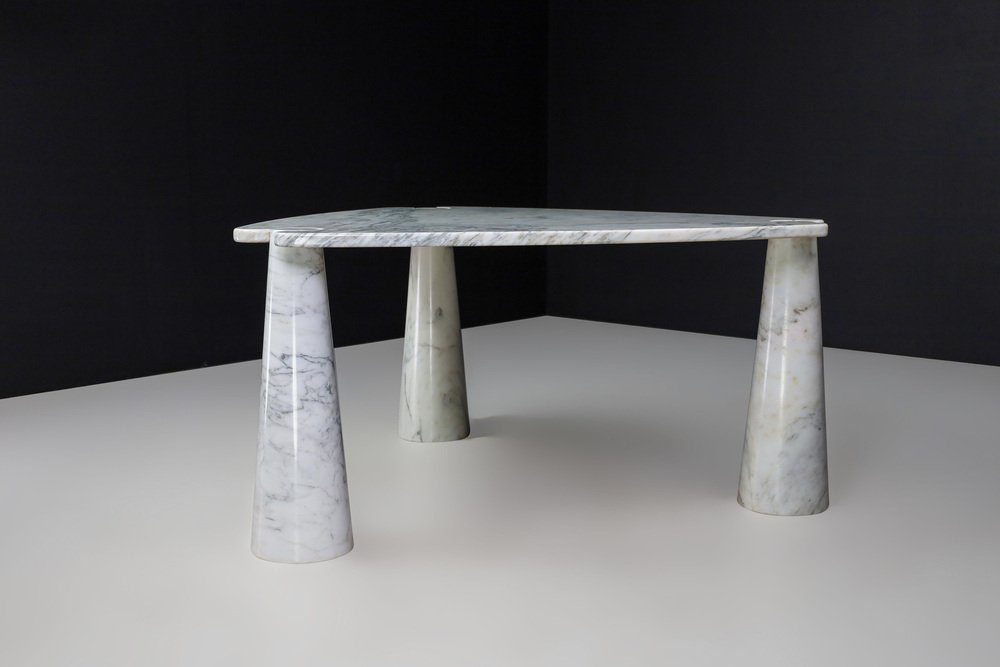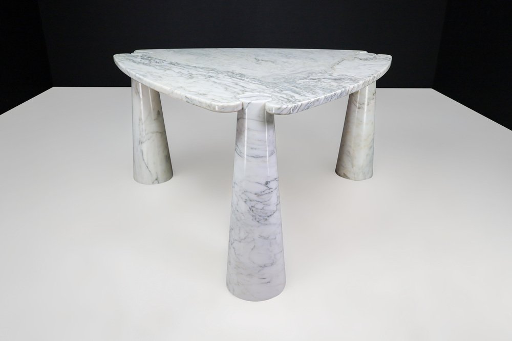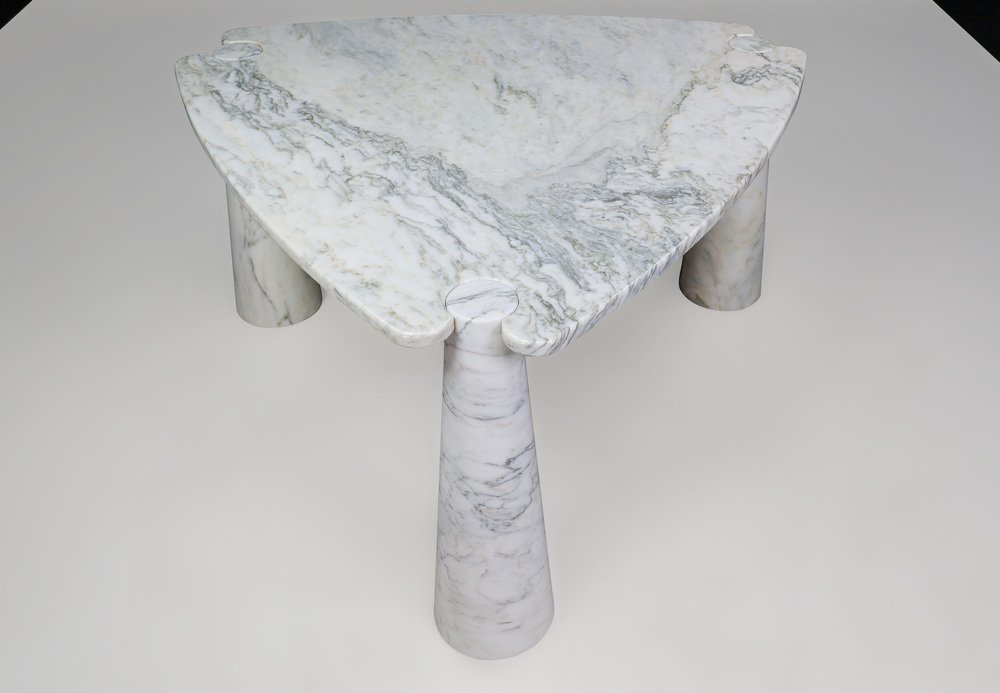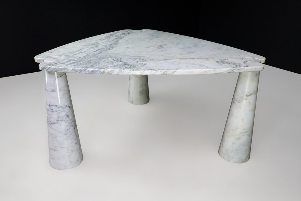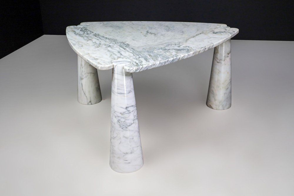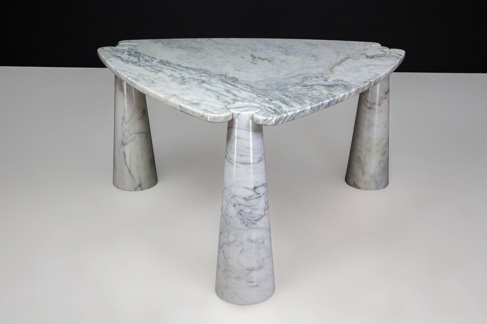 Mesa de centro Eros Triangle de mármol de Carrara blanco de Angelo Mangiarotti para Skipper, años 70