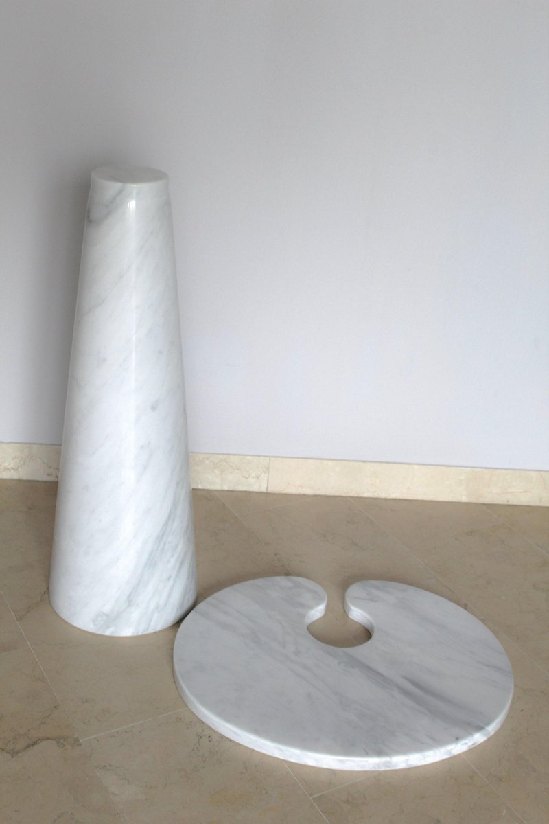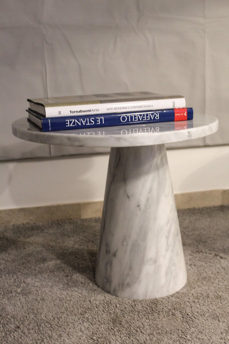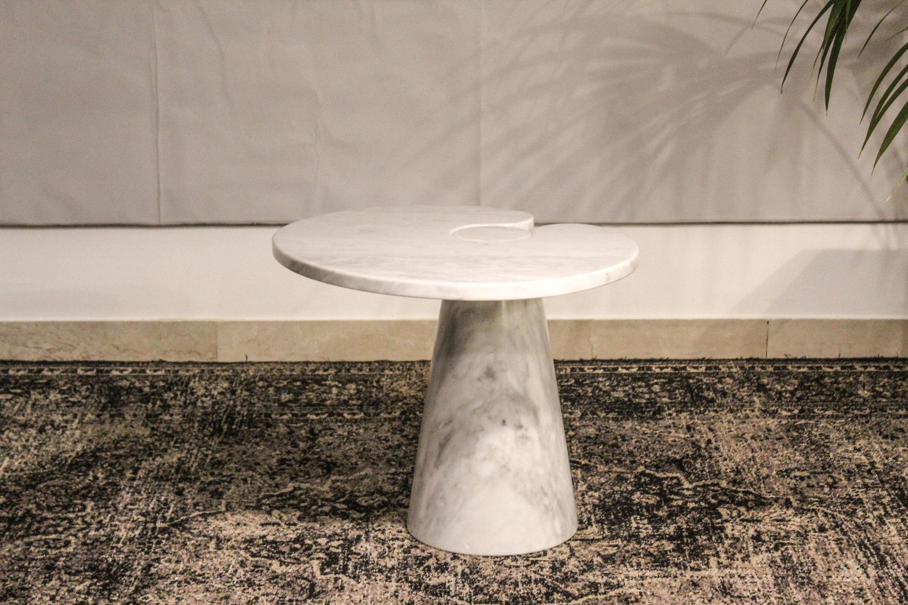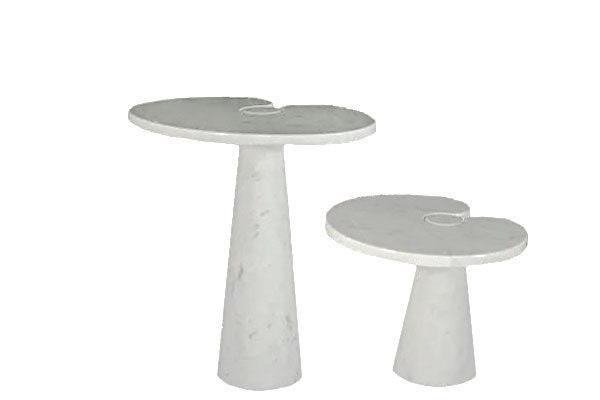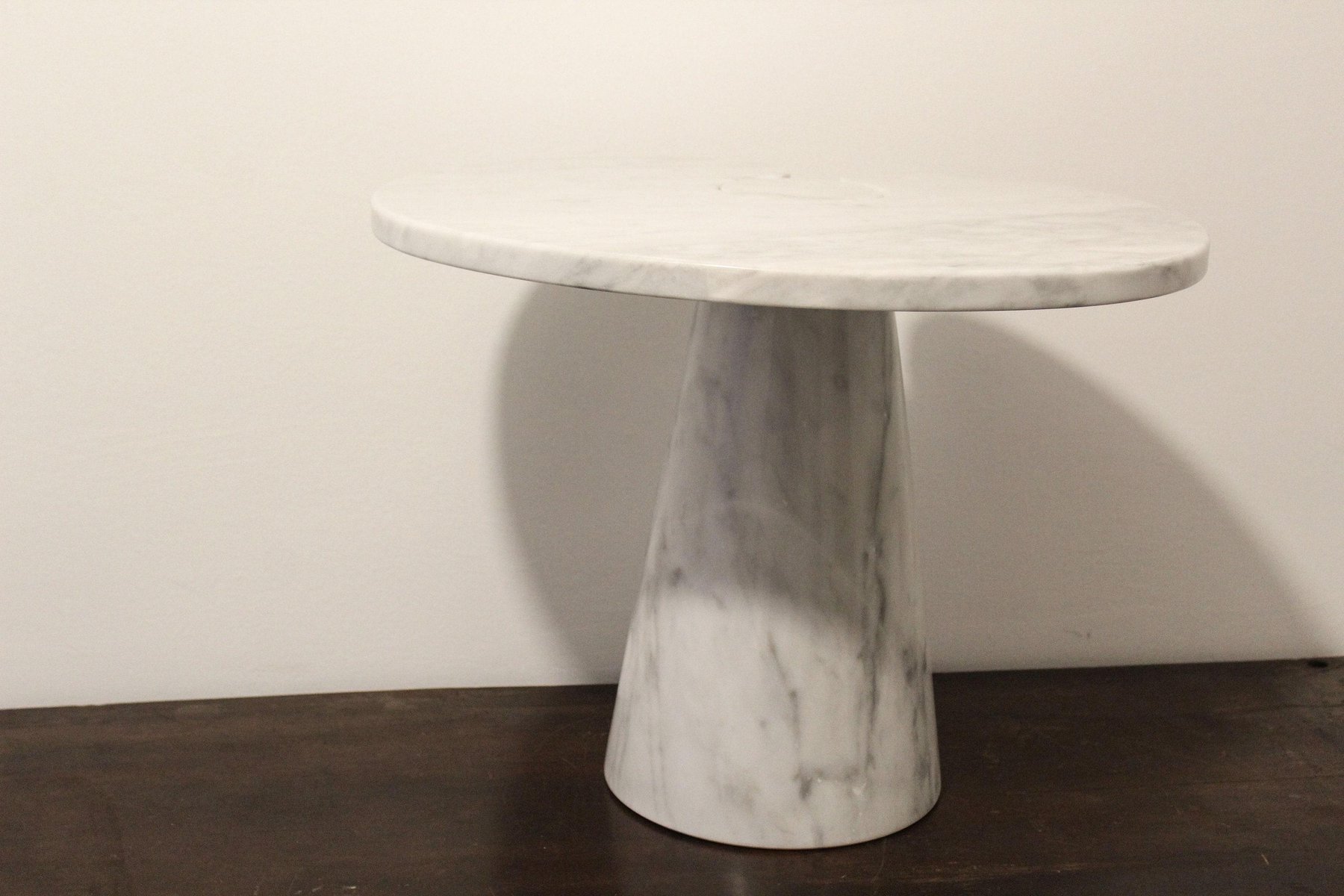 Mesa de centro serie Eros italiana de mármol de Carrara blanco de Angelo Mangiarotti, años 70. Juego de 2