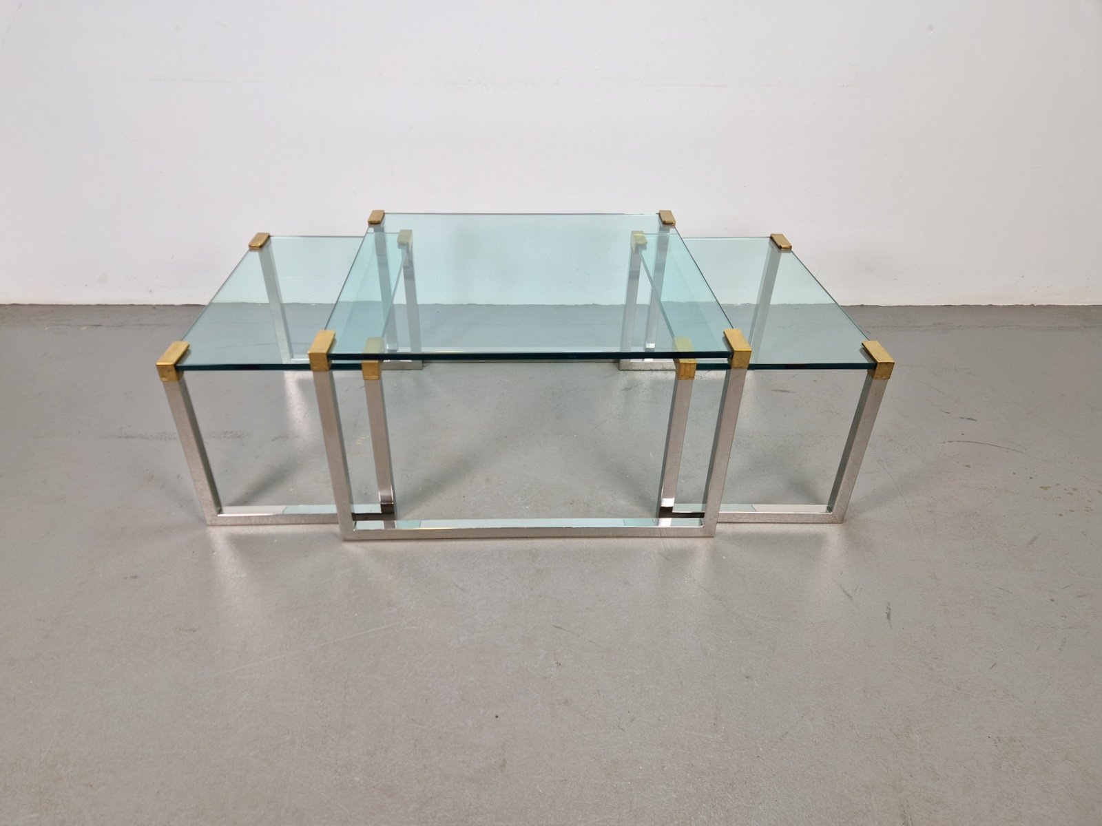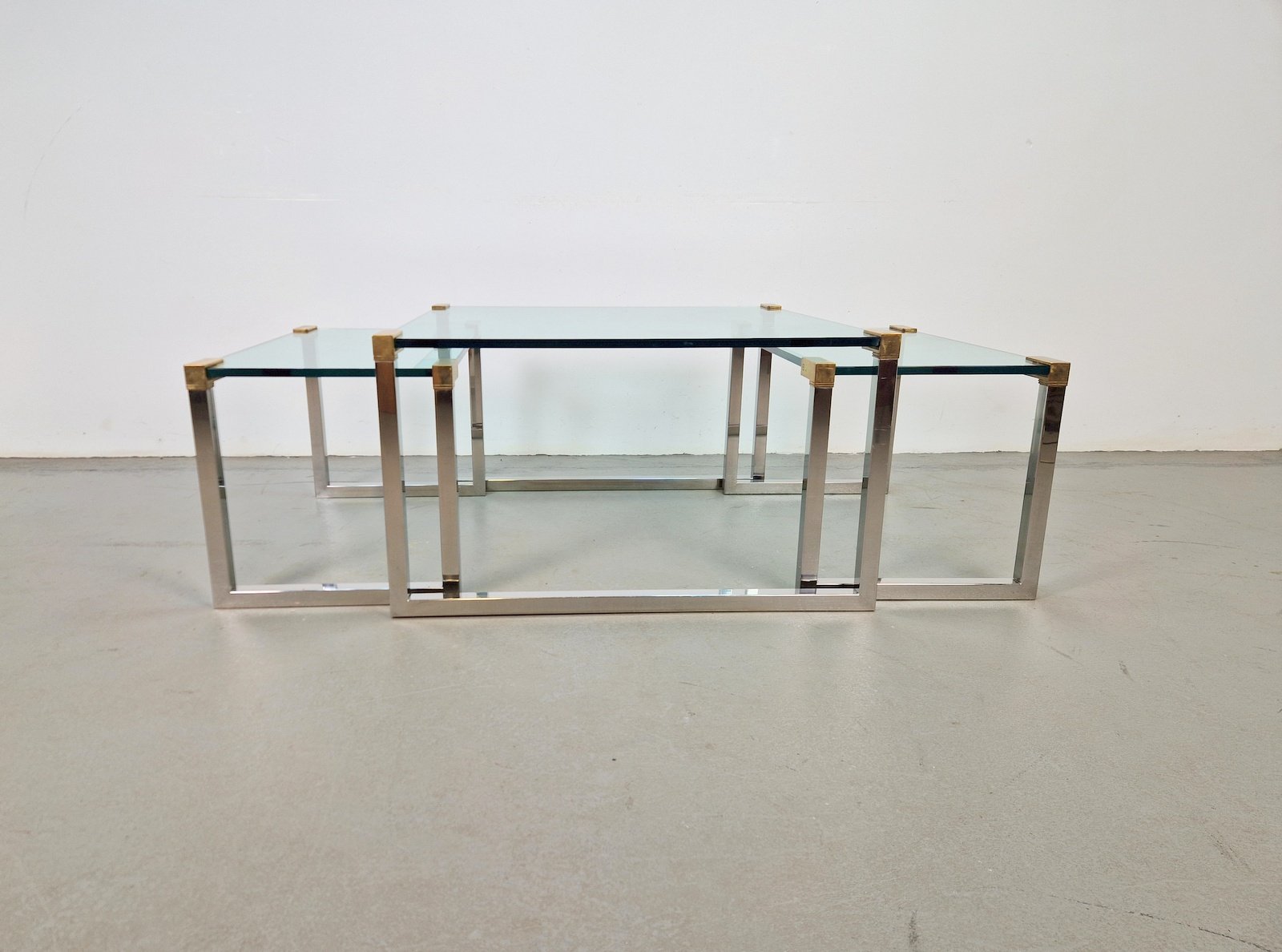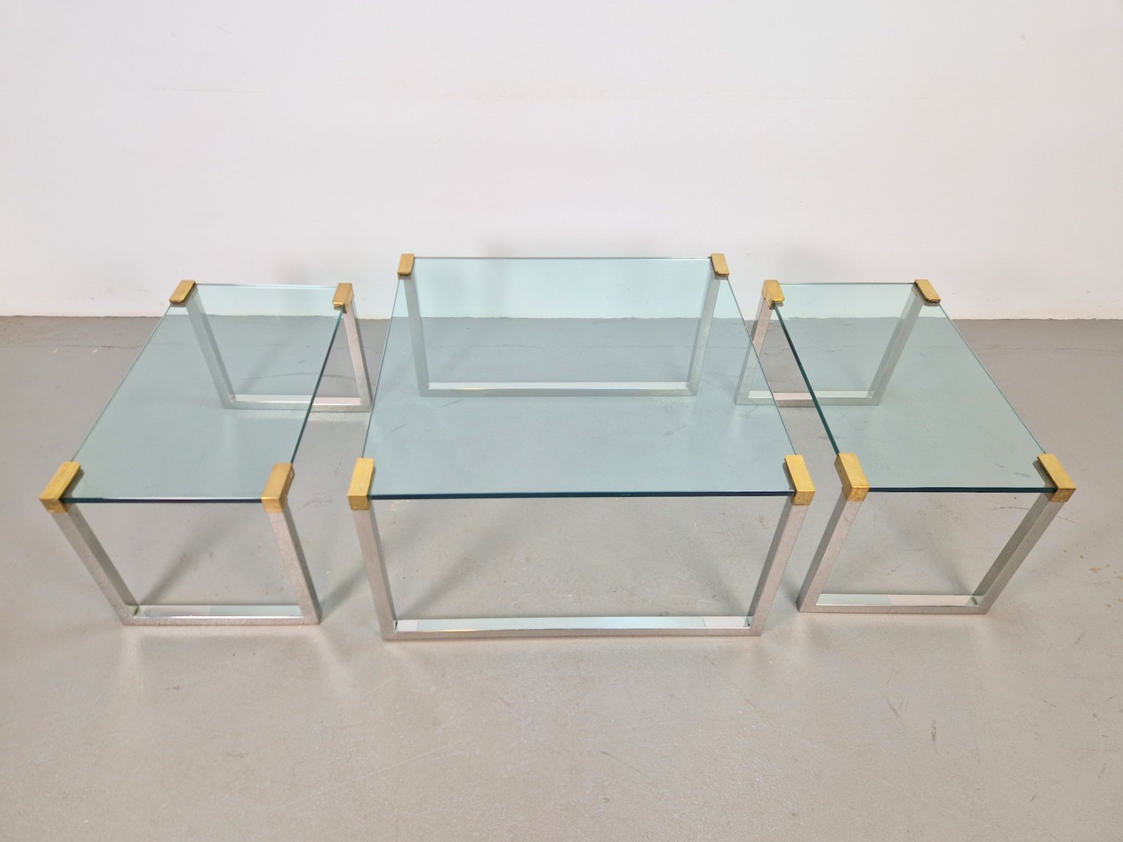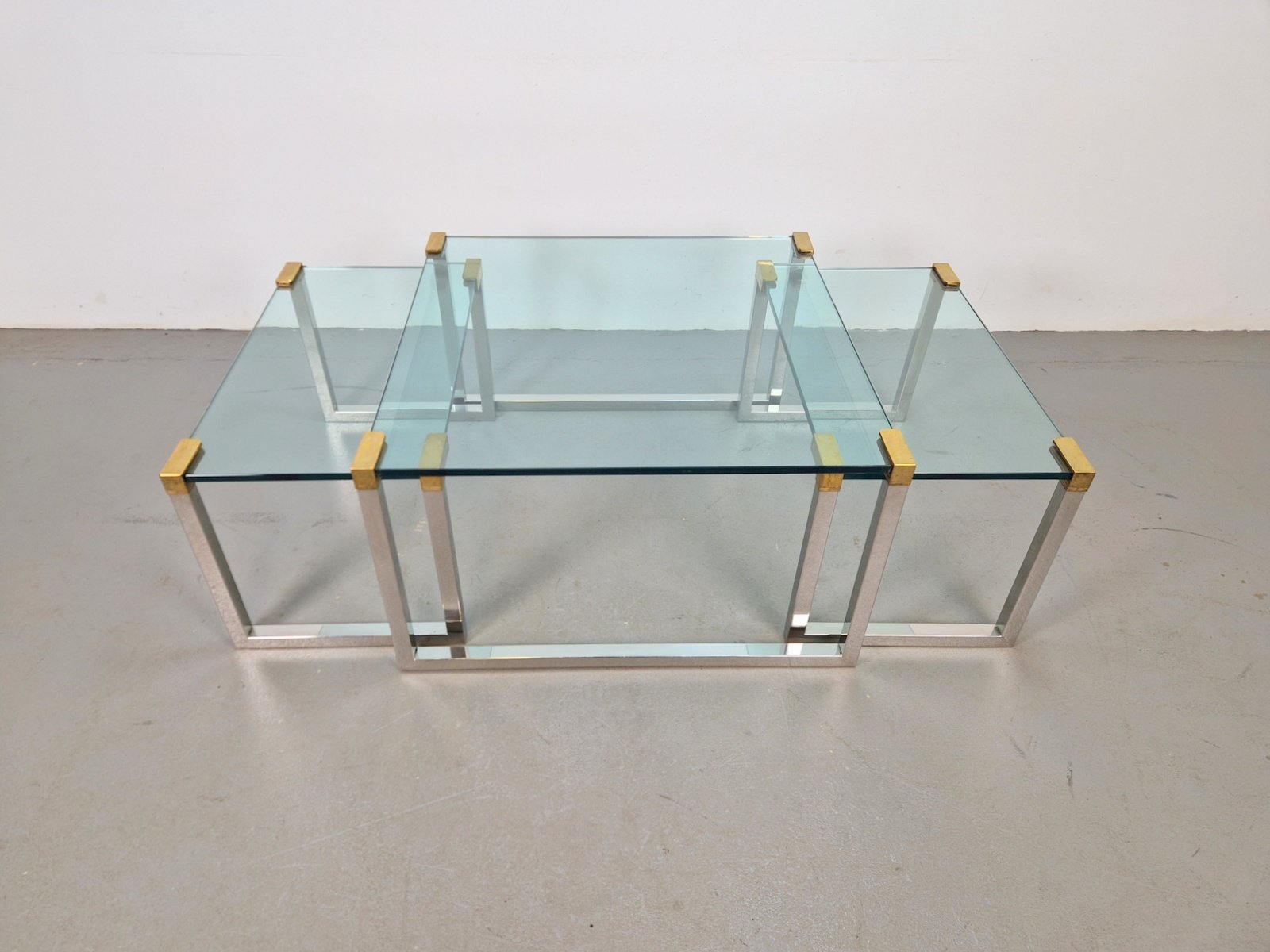 Sometime in the early 1970s, the designer moved to Swalmen in the Netherlands where he founded his own design studio. For his first furniture collection, Ghyczy developed a new way of fixing glass to metal, which resulted in a series of