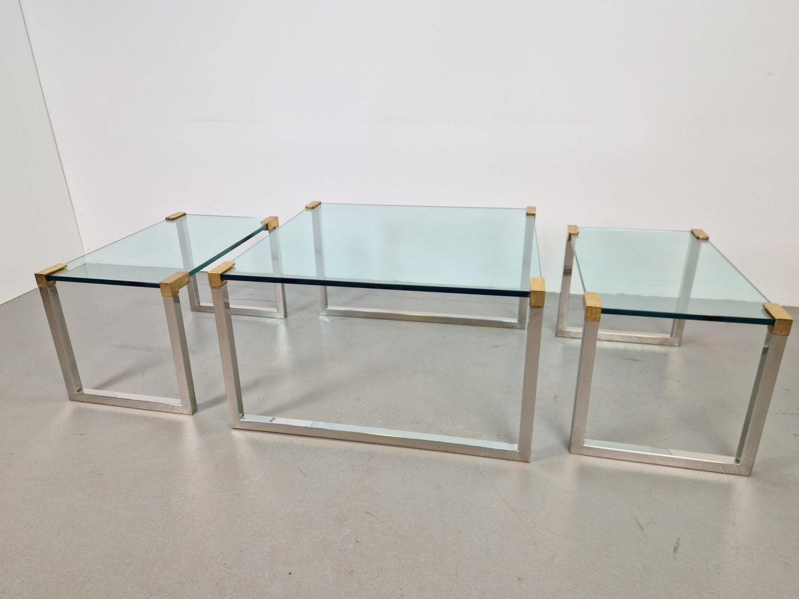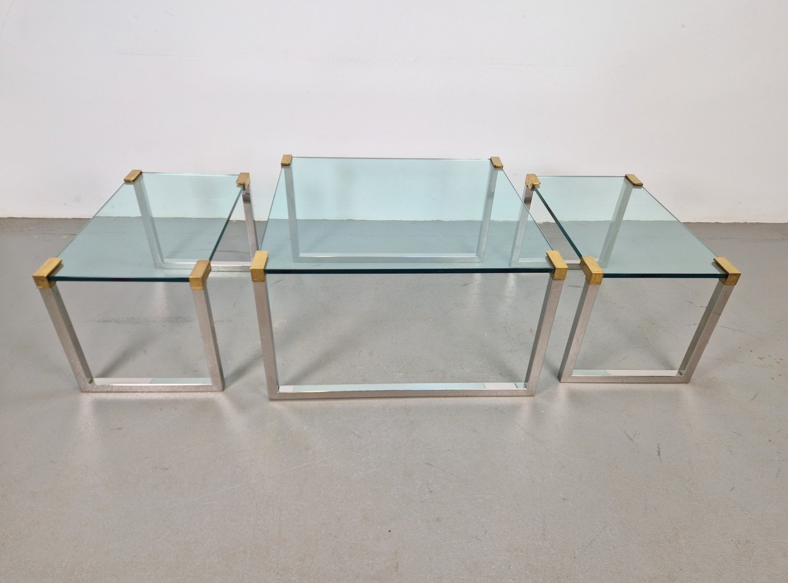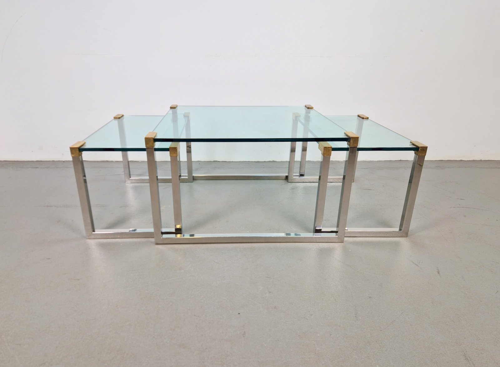 Sometime in the early 1970s, the designer moved to Swalmen in the Netherlands where he founded his own design studio. For his first furniture collection, Ghyczy developed a new way of fixing glass to metal, which resulted in a series of
