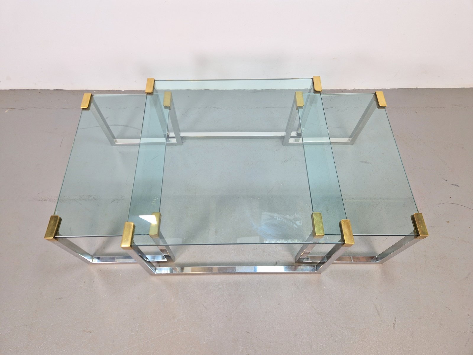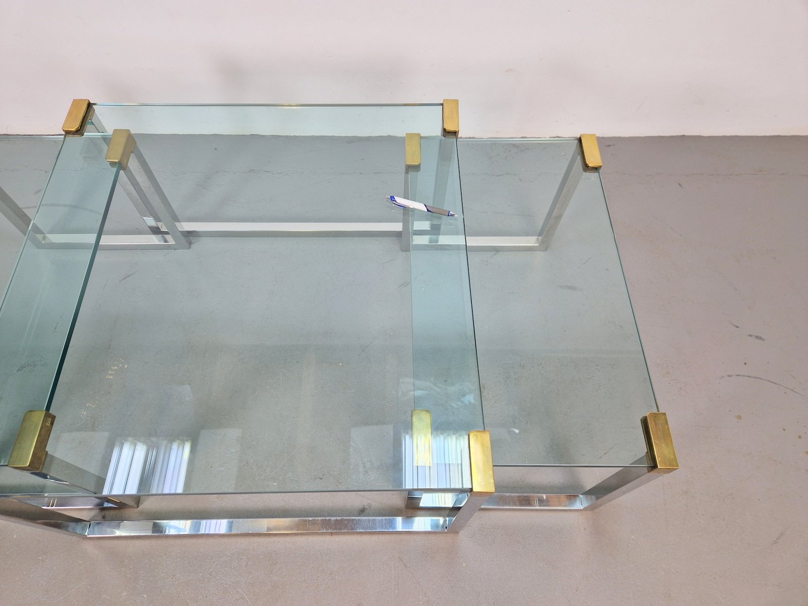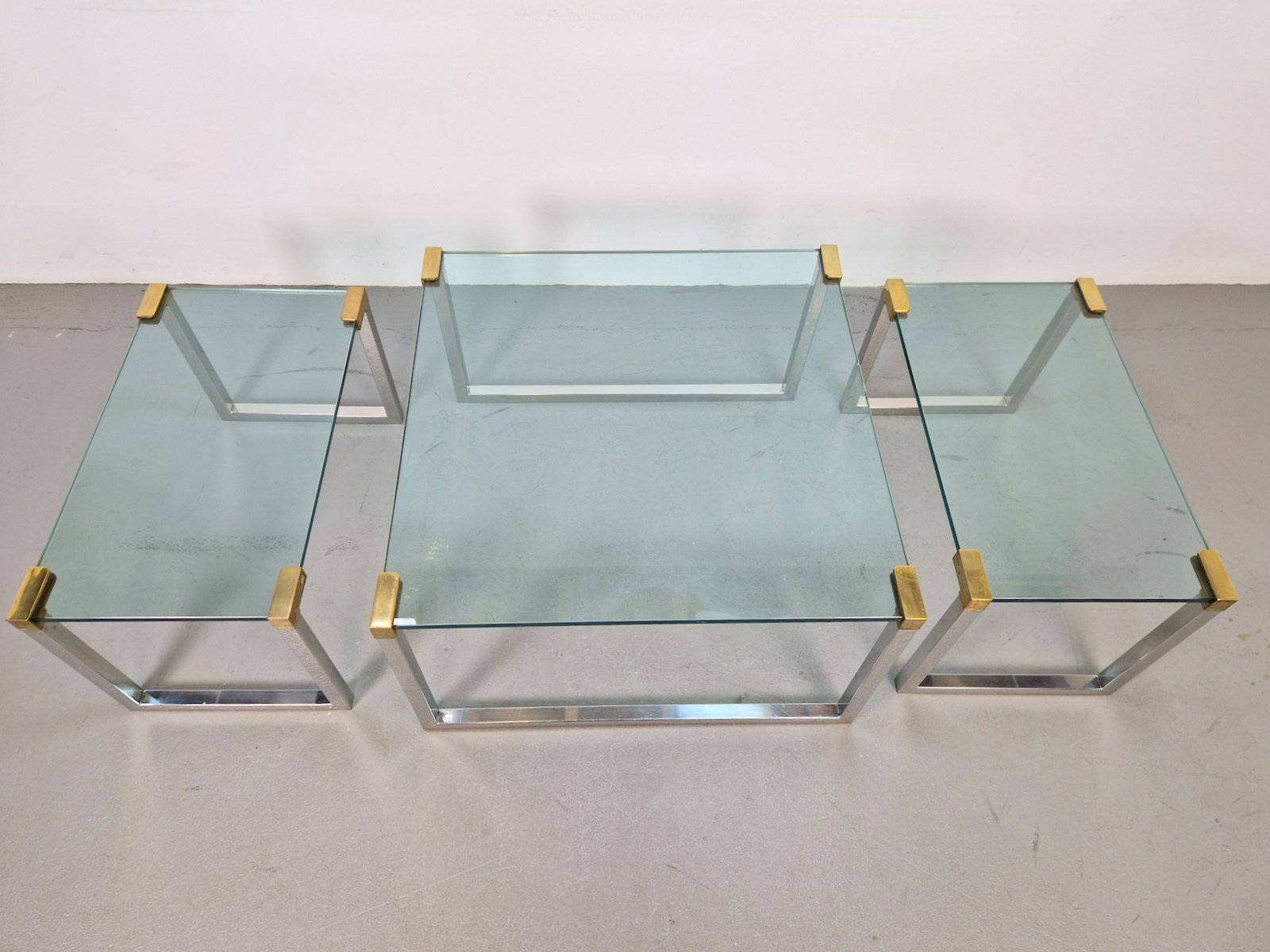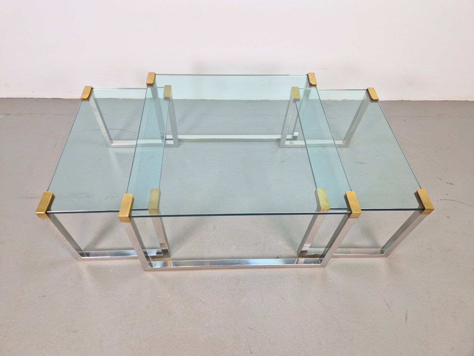 Sometime in the early 1970s, the designer moved to Swalmen in the Netherlands where he founded his own design studio. For his first furniture collection, Ghyczy developed a new way of fixing glass to metal, which resulted in a series of