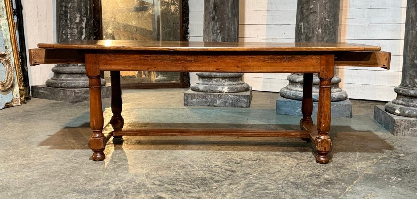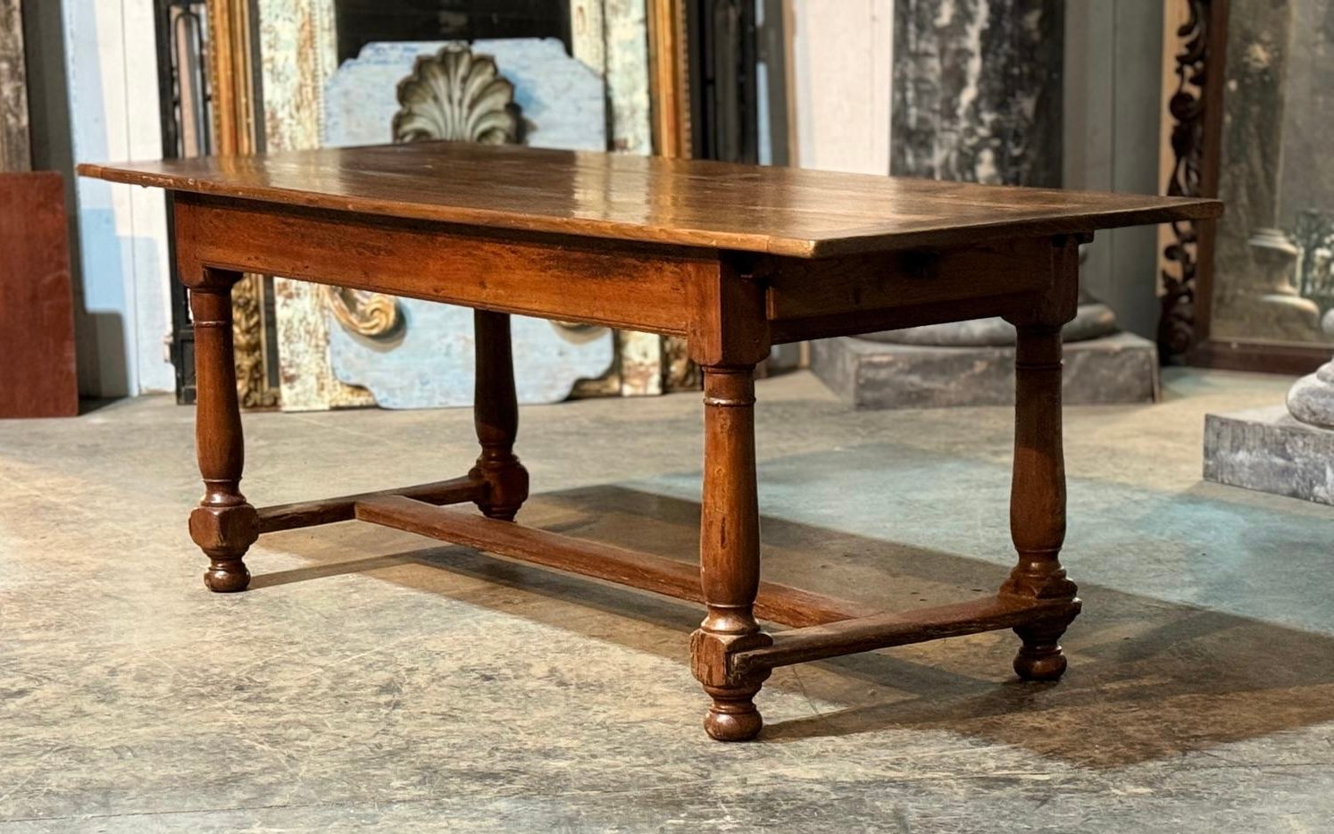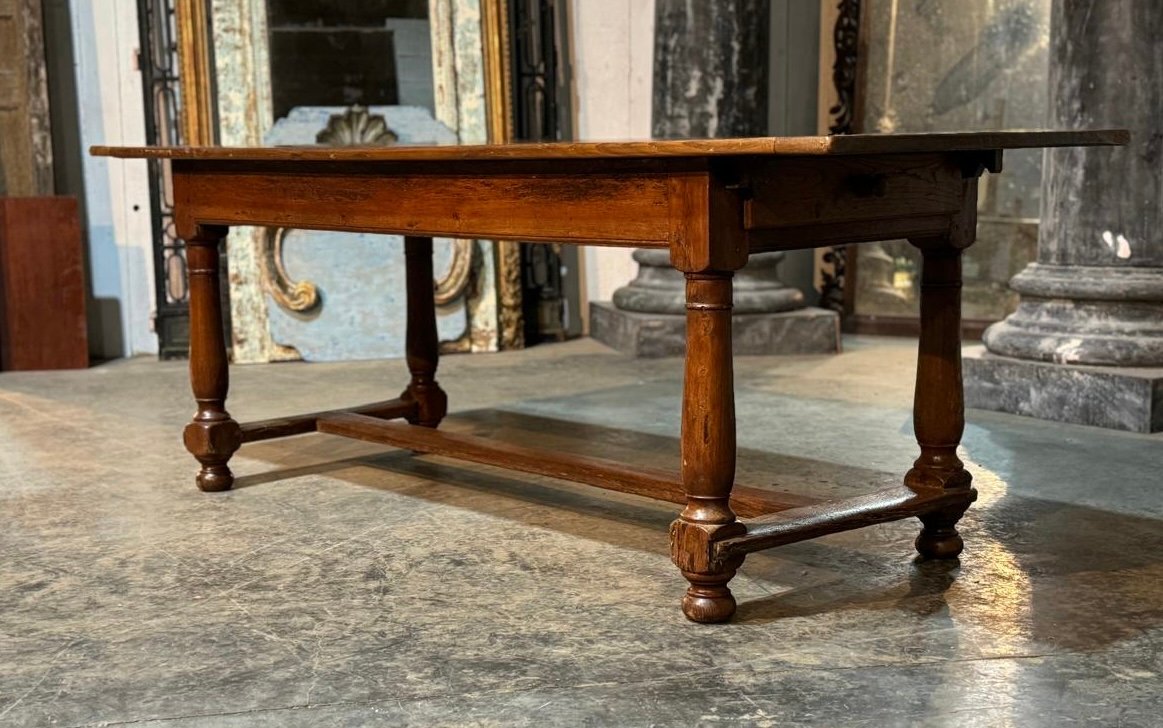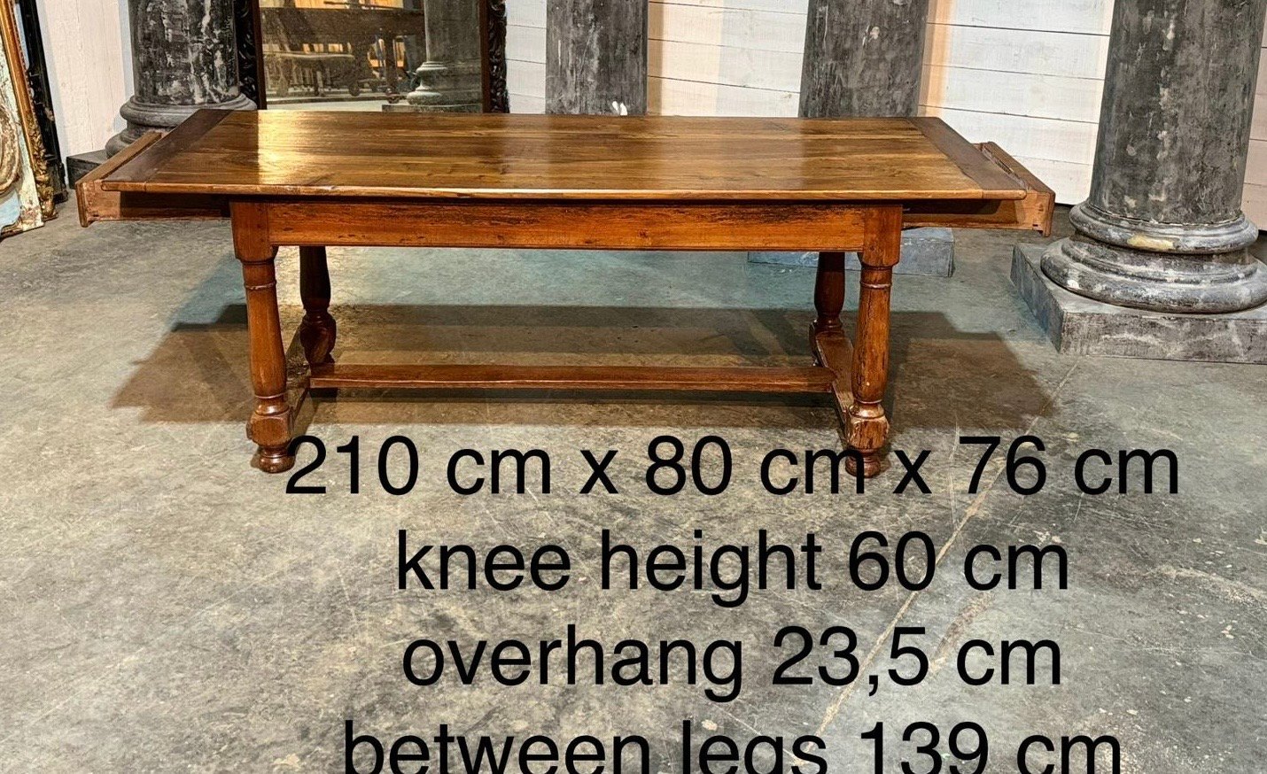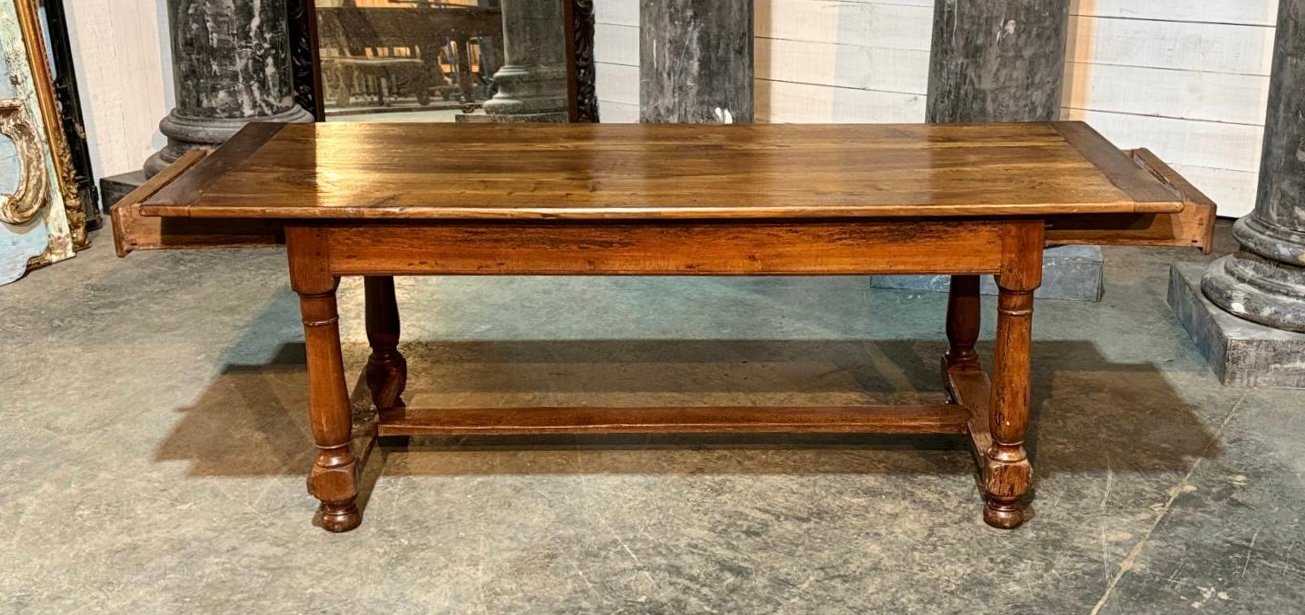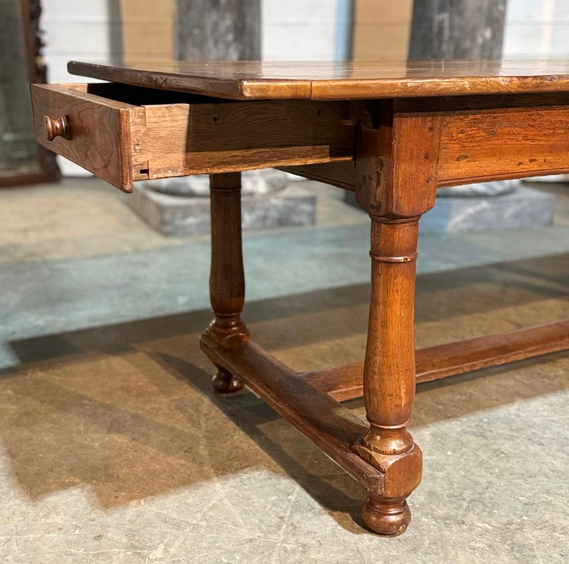 Mesa de comedor de cocina Farmhouse de roble con 2 cajones, años 20