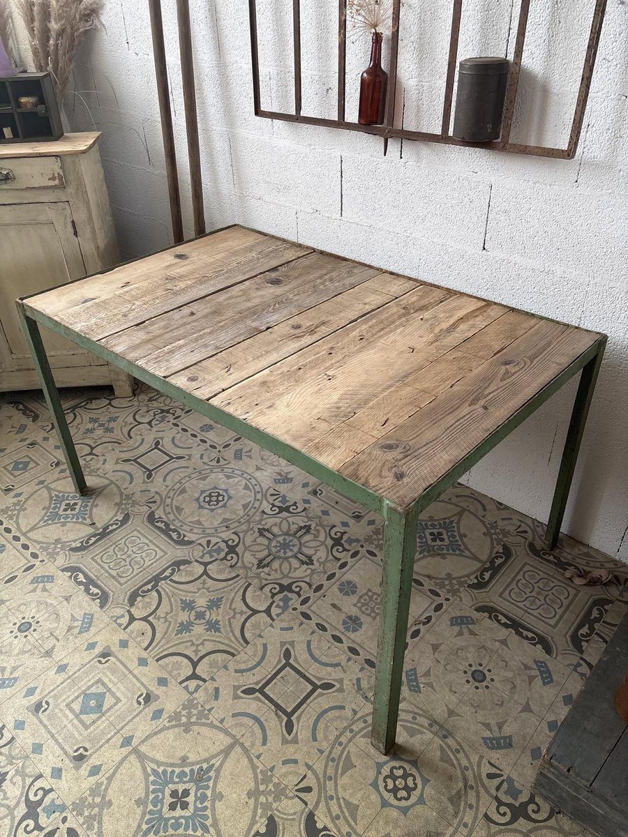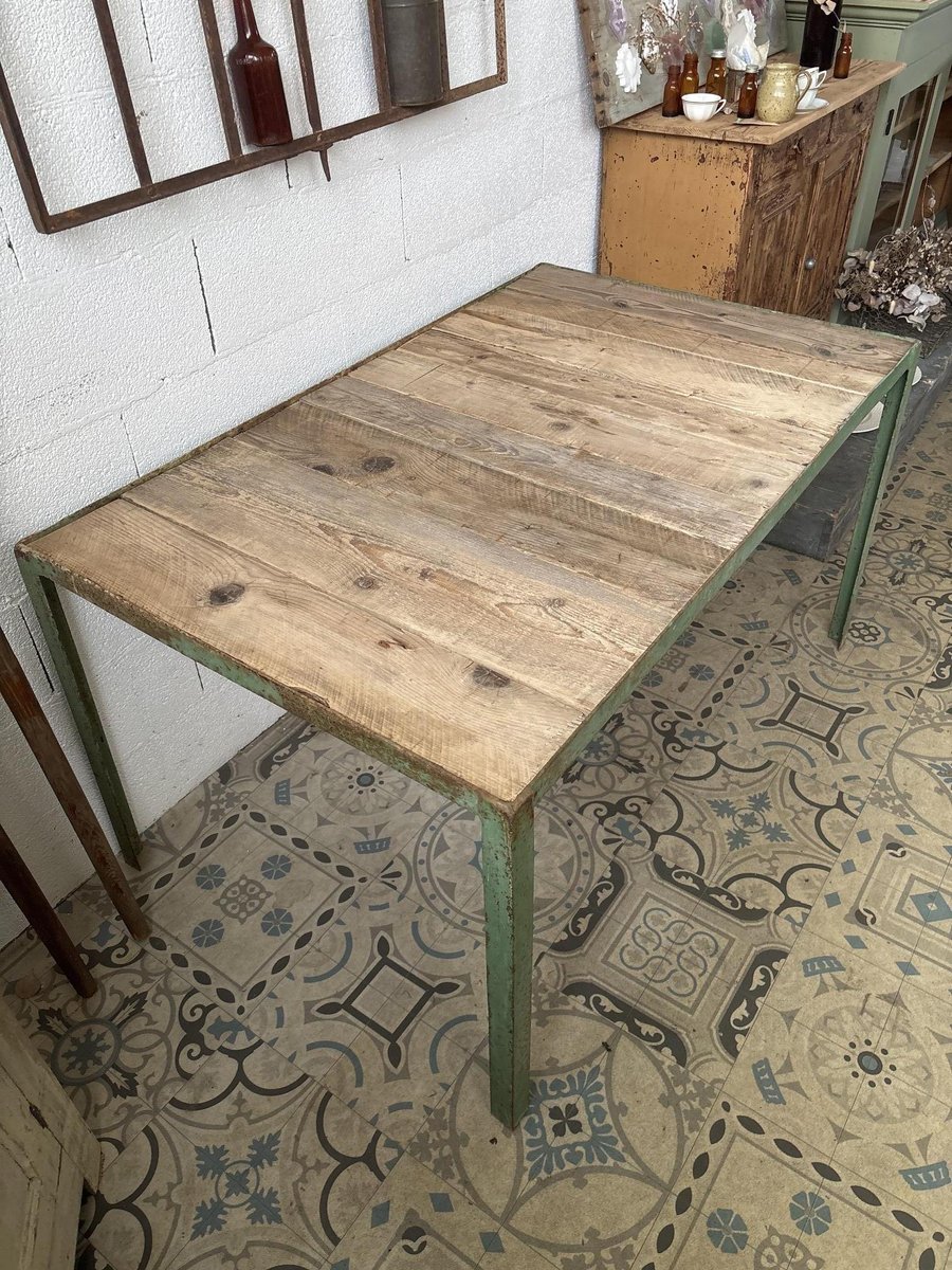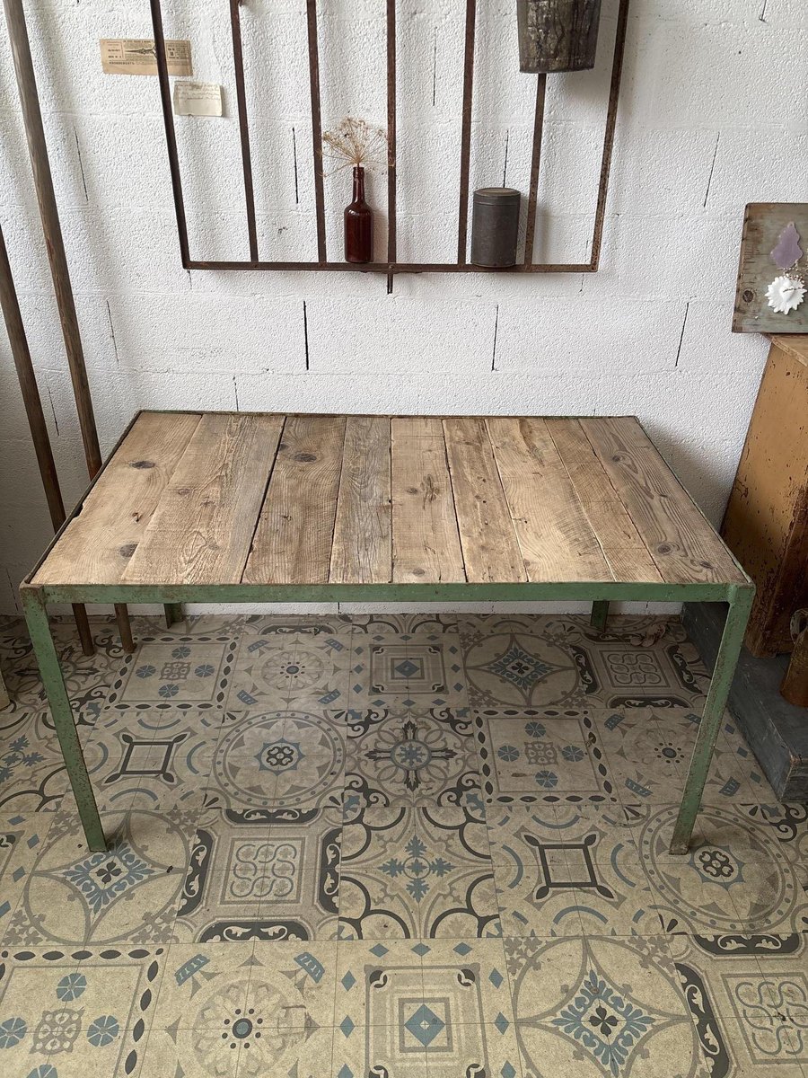 Mesa de comedor de metal y madera, años 50