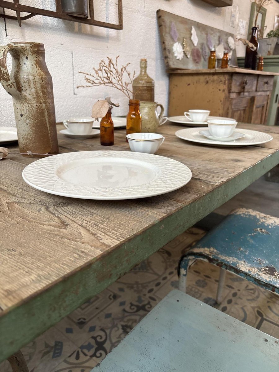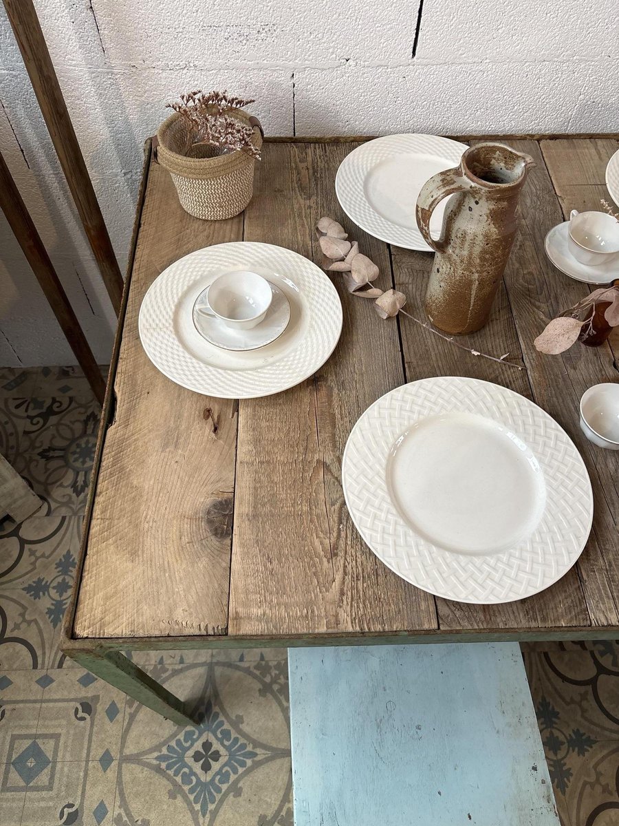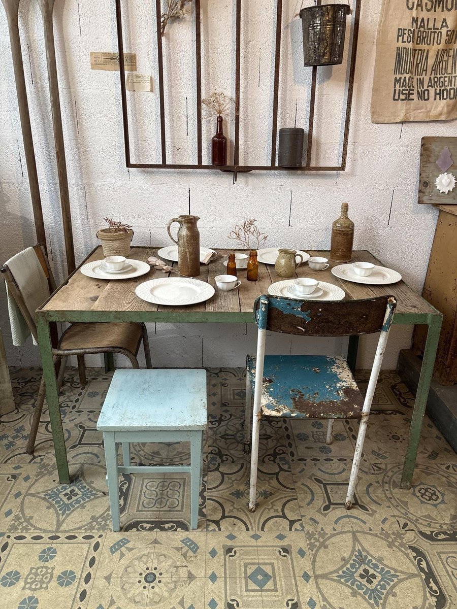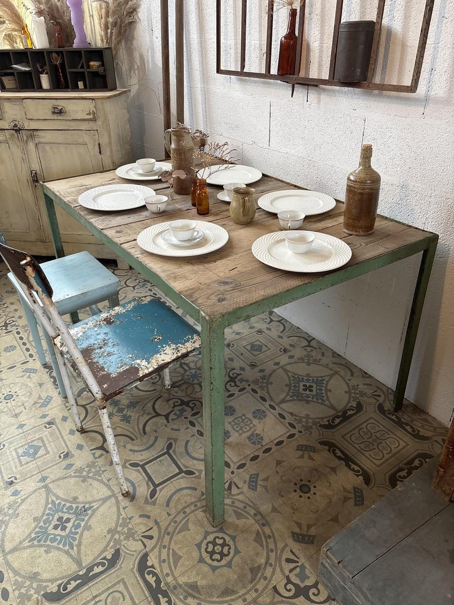 Mesa de comedor de metal y madera, años 50