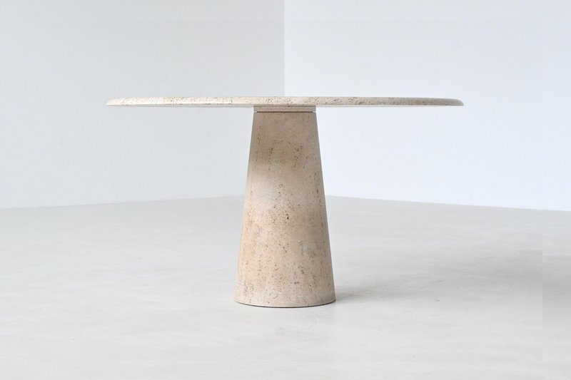 Mesa de comedor escultural grande de travertino, 1970