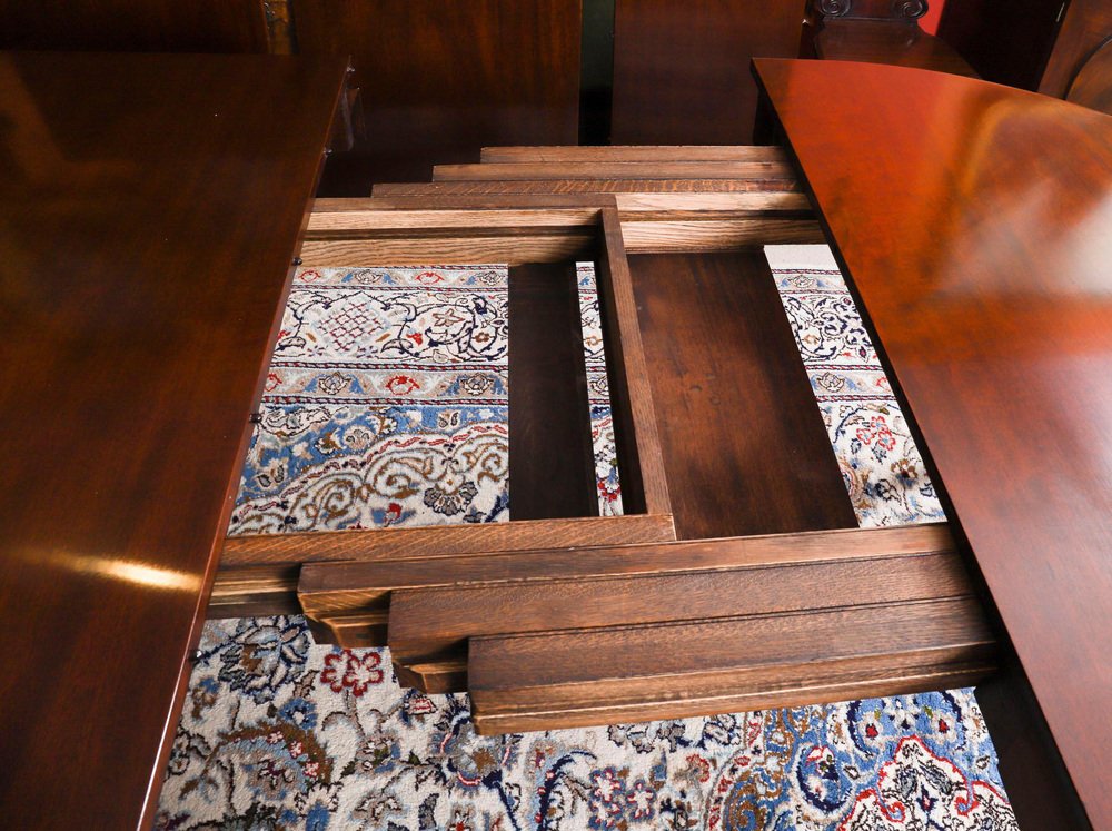 Mesa de comedor extensible de llama antigua de caoba, siglo XIX
