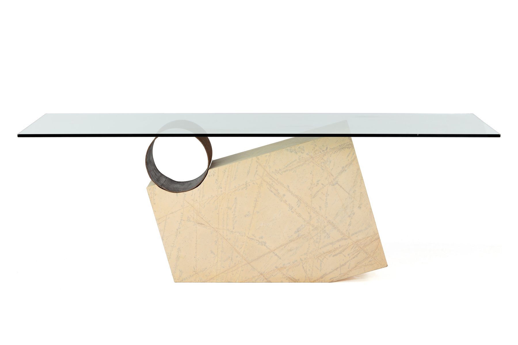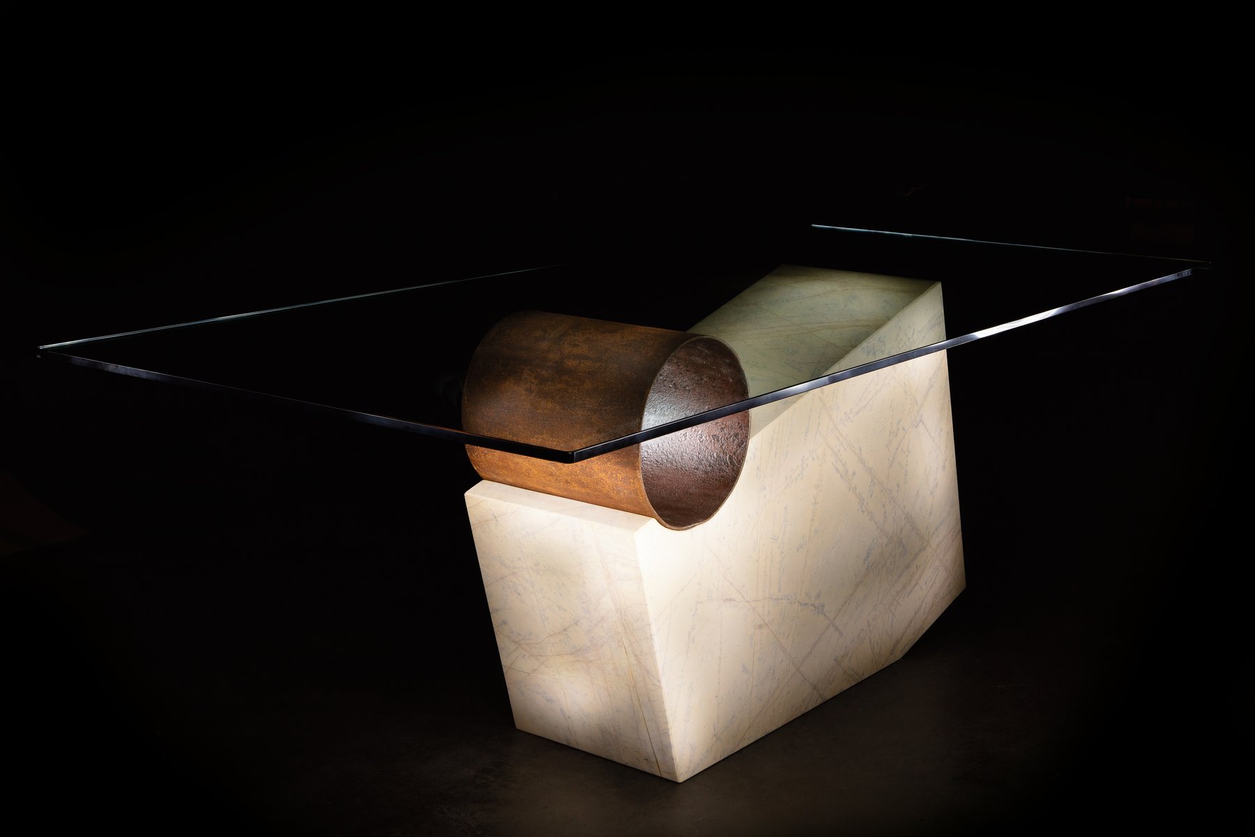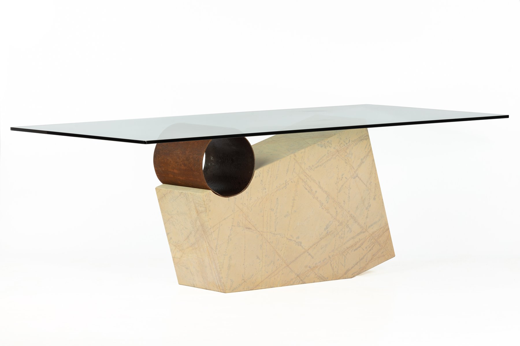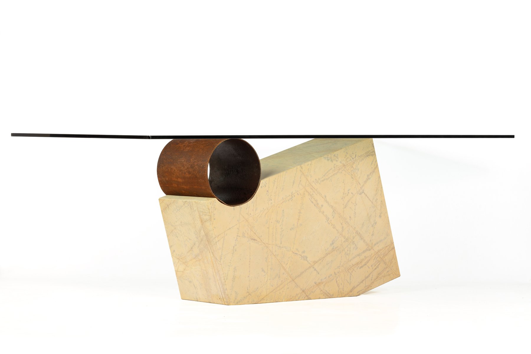 Mesa de comedor Medes de mármol amarillo de Triana de Joaquín Moll para Meddel