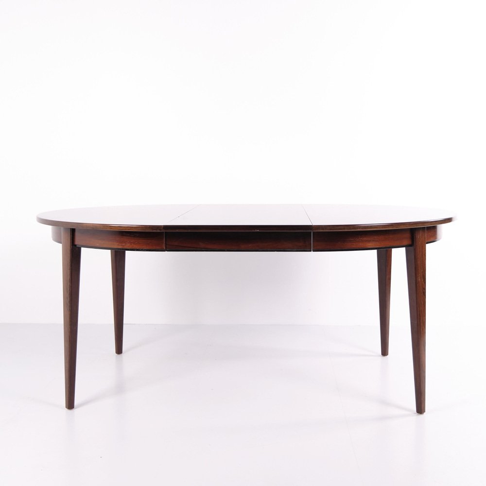 Mesa de comedor modelo 55 redonda de palisandro de Gunni Omann para Omann Jun Møbelfabrik, años 60