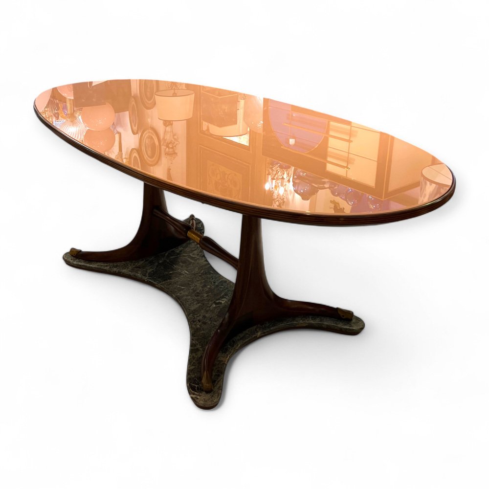 Mesa de comedor oval con superficie de vidrio rosa de Vittorio Dassi para Dassi Mobili Moderni, años 50