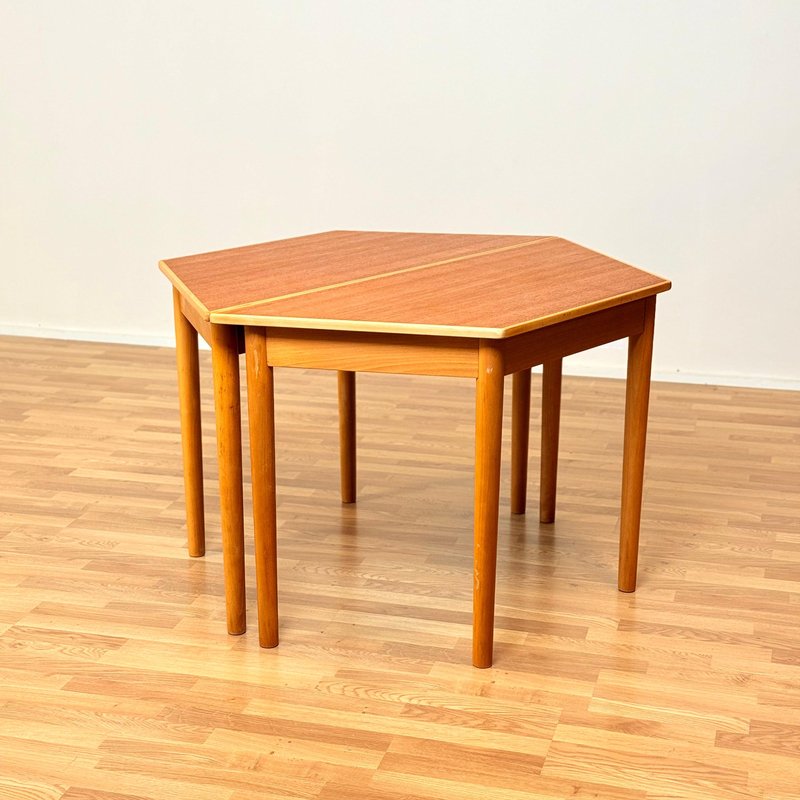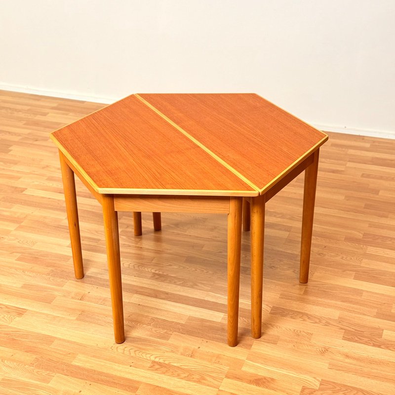 Mesa de comedor sueca octogonal de teca y haya de Bjärnum Furniture Factory, 1950