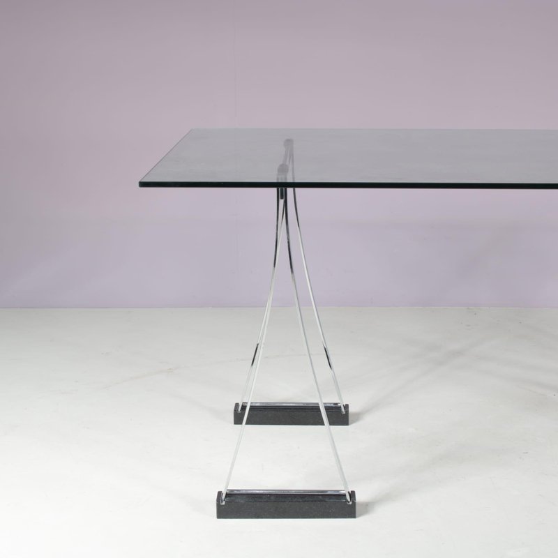 Sometime in the early 1970s, the designer moved to Swalmen in the Netherlands where he founded his own design studio. For his first furniture collection, Ghyczy developed a new way of fixing glass to metal, which resulted in a series of