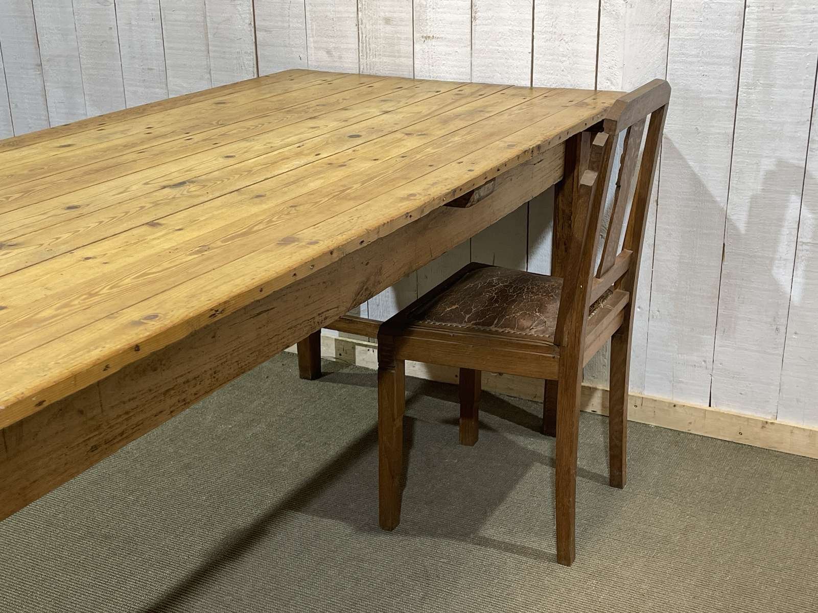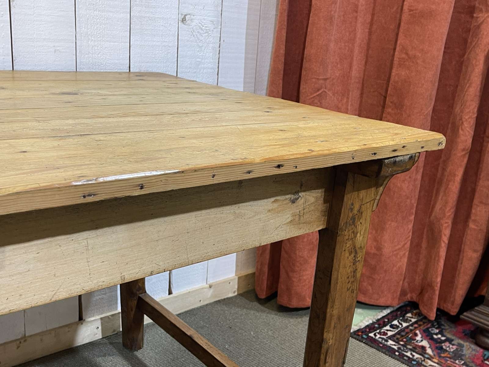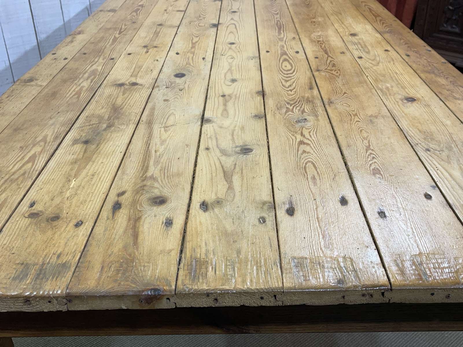 Mesa de granja de abeto, olmo y castaño, de principios del siglo XX