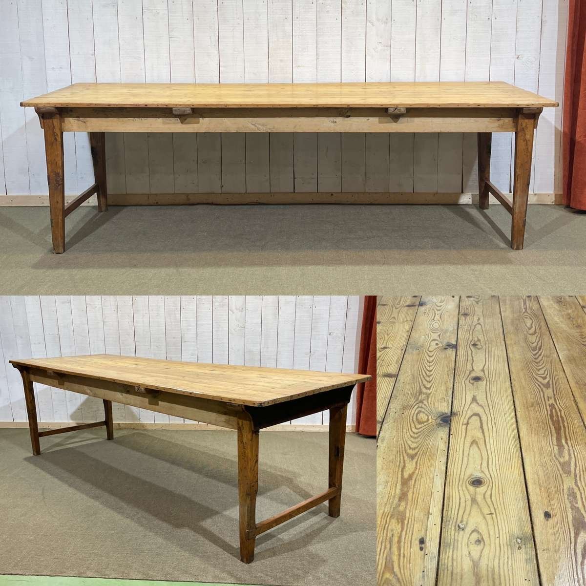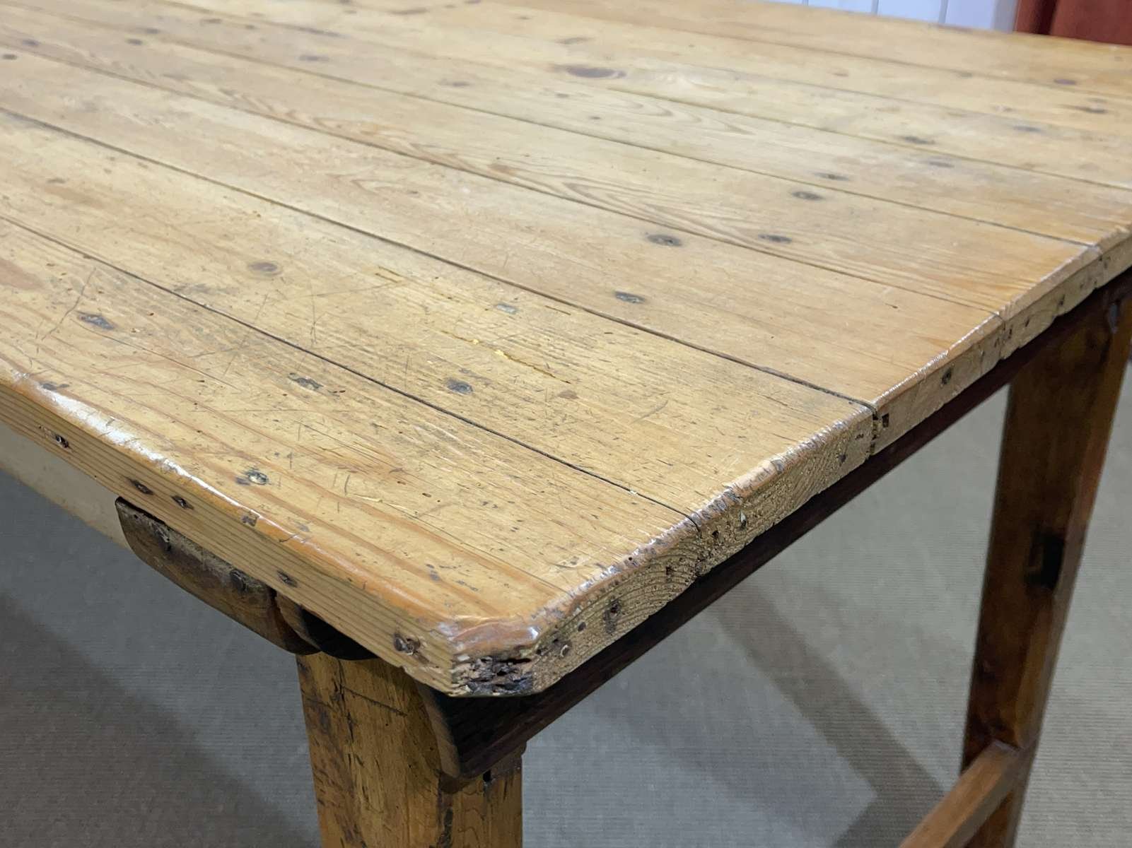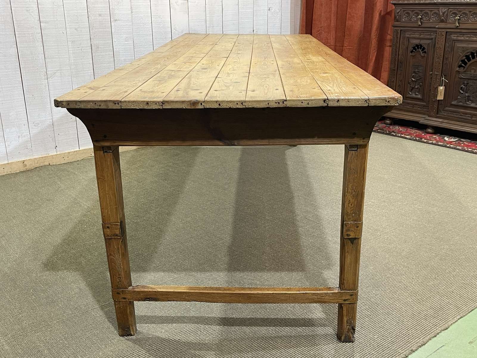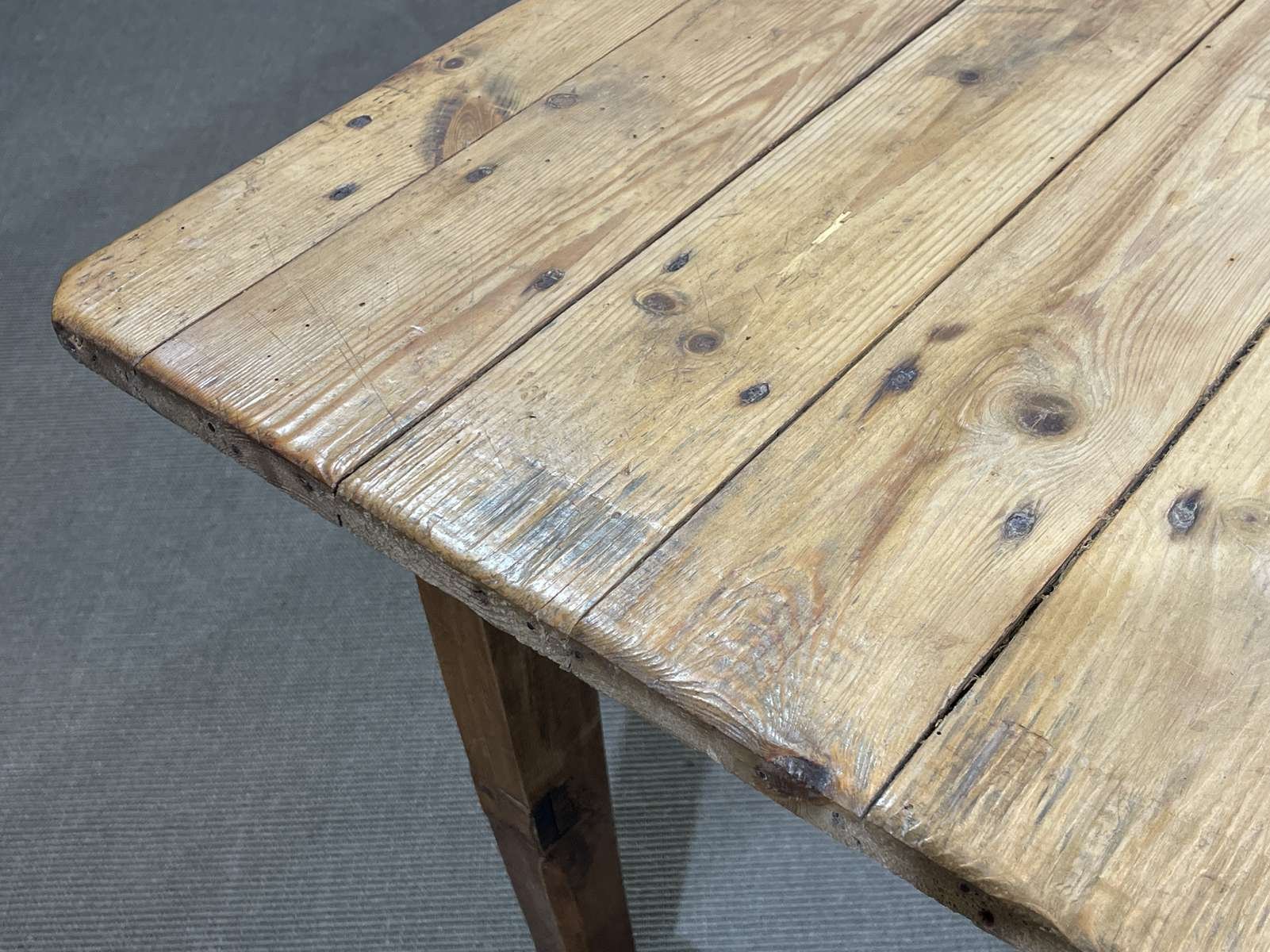 Mesa de granja de abeto, olmo y castaño, de principios del siglo XX
